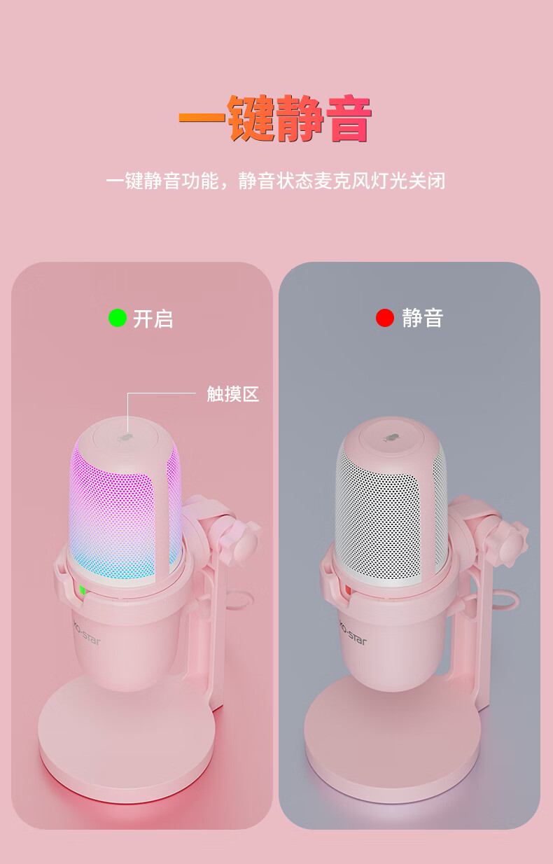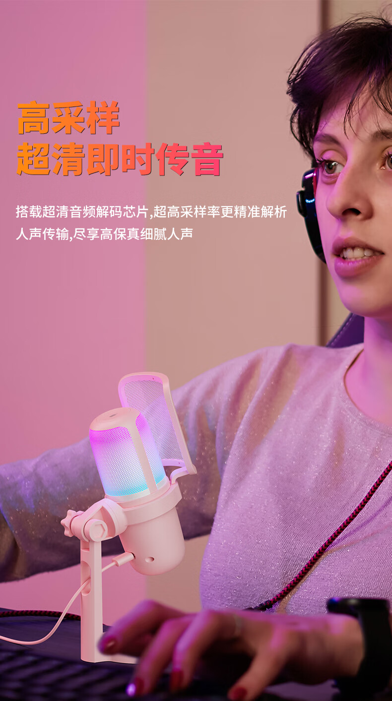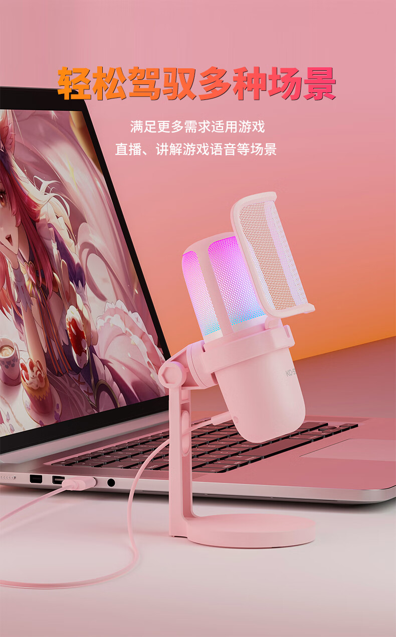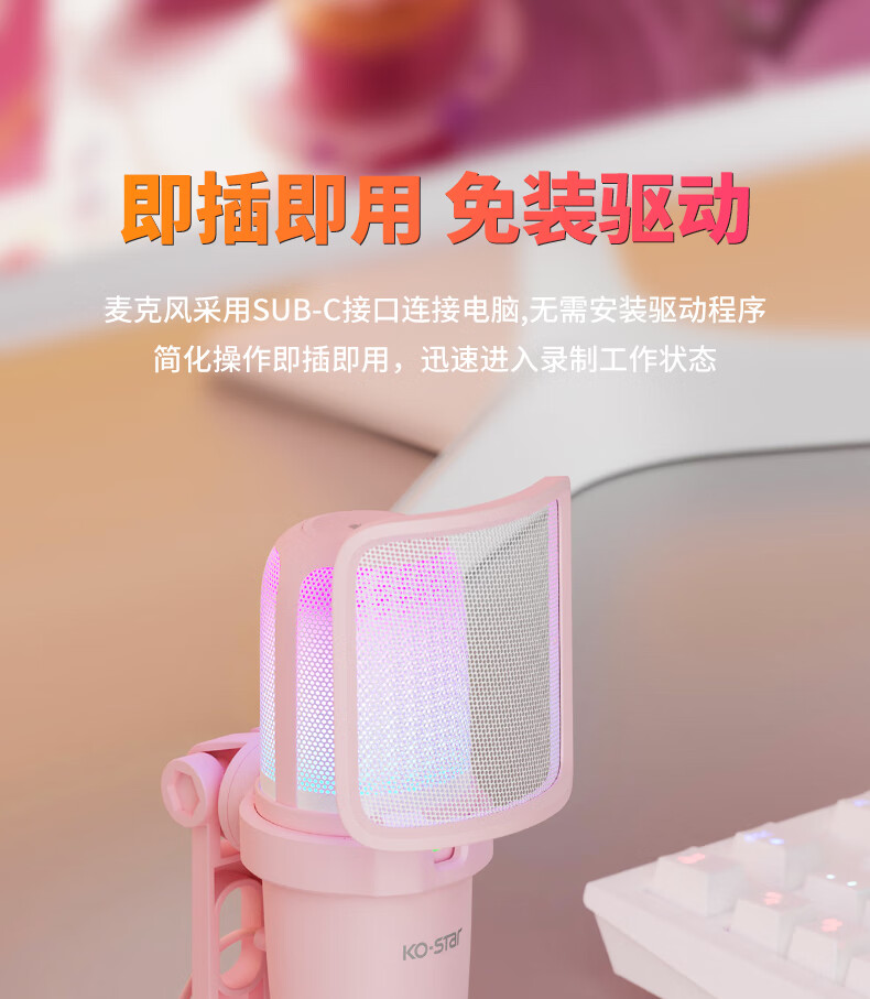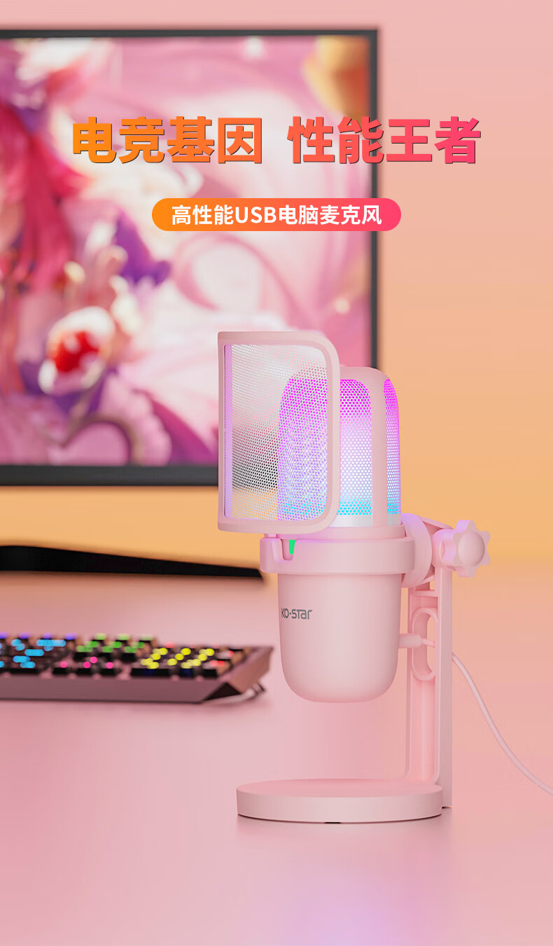 KO-STAR Professional Microphone Computer Laptop USB Recording Conference Online Class Anchor Equipment Microphone Wired Desktop Special Desktop Learning Game Voice Sound Card Upgraded Colorful Lighting + Monitoring Hole + Volume Adjustment + Radio Switch