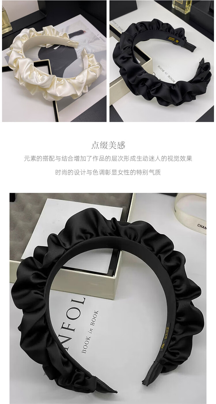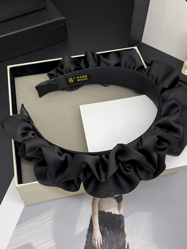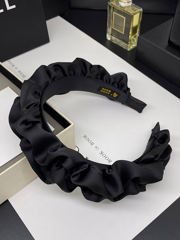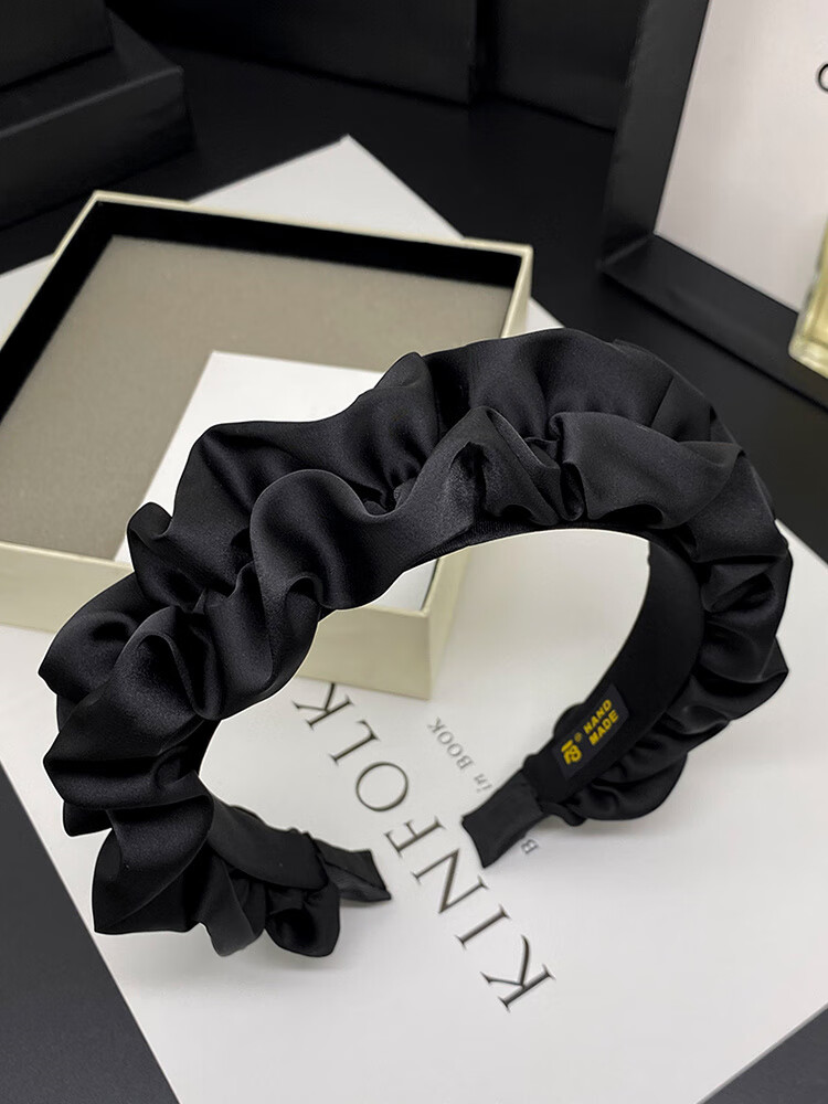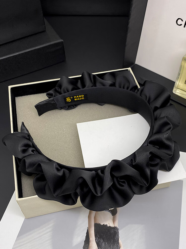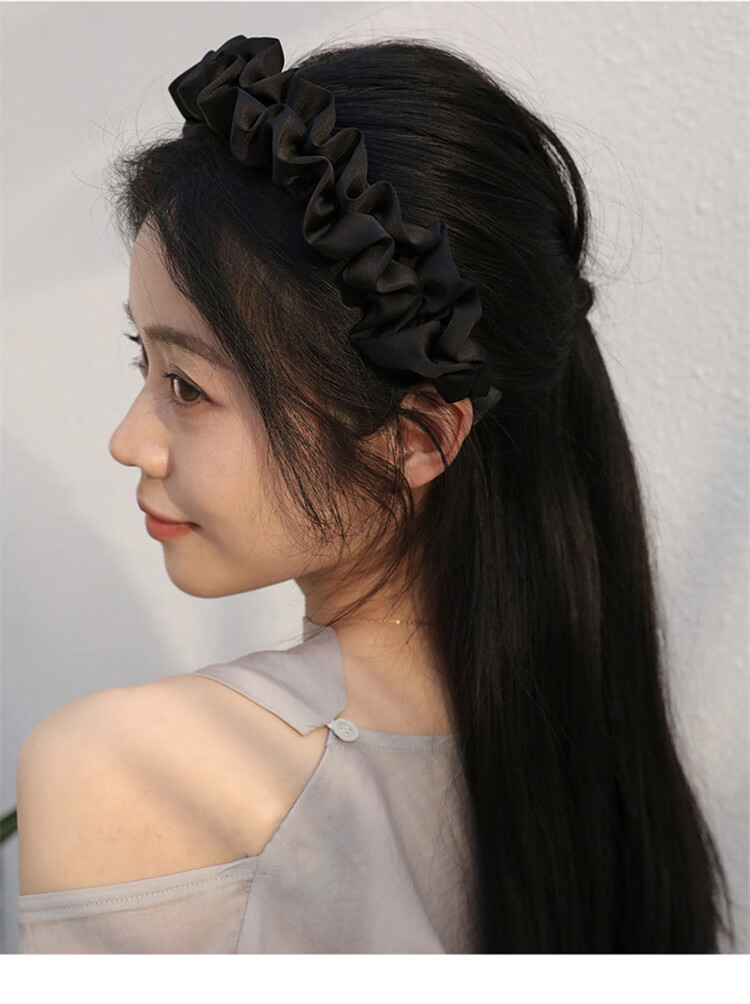 Zhuxi headband women's high-end fashionable high-ceiling Hong Kong style face wash headband hairpin 2025 new headwear pressed hair pleated headband black