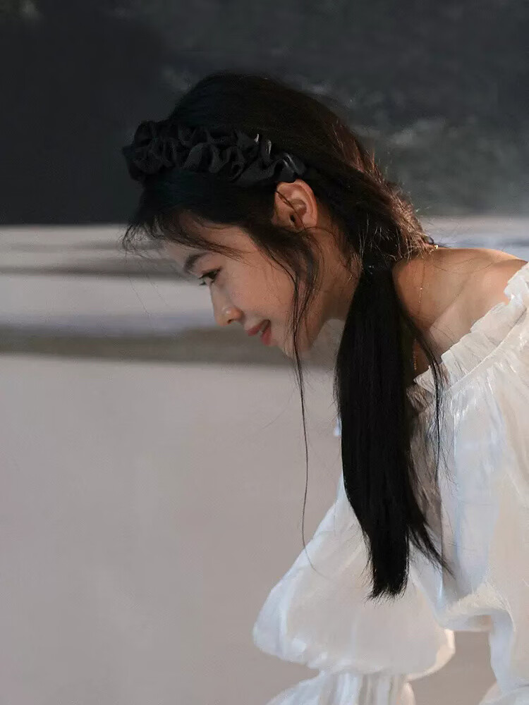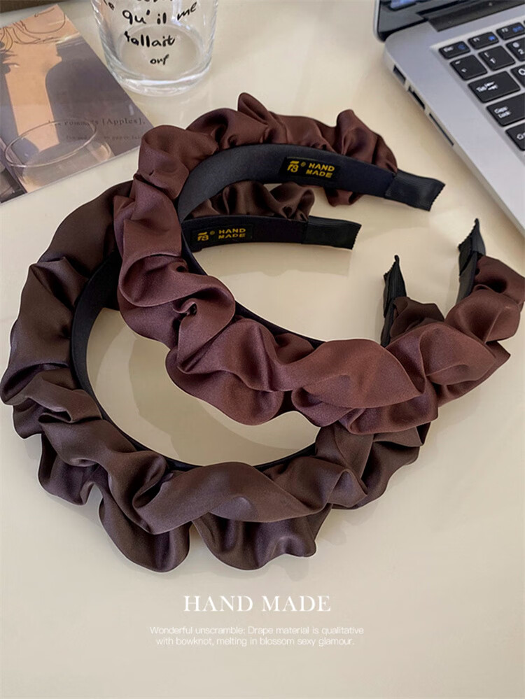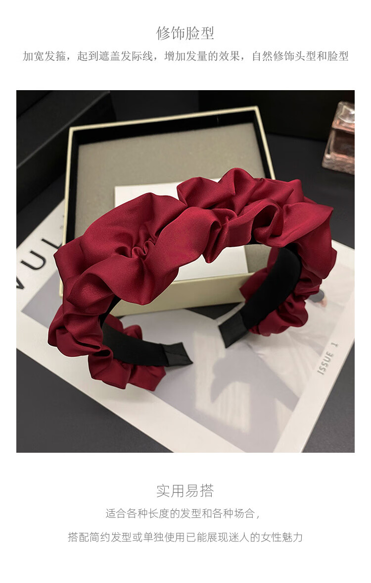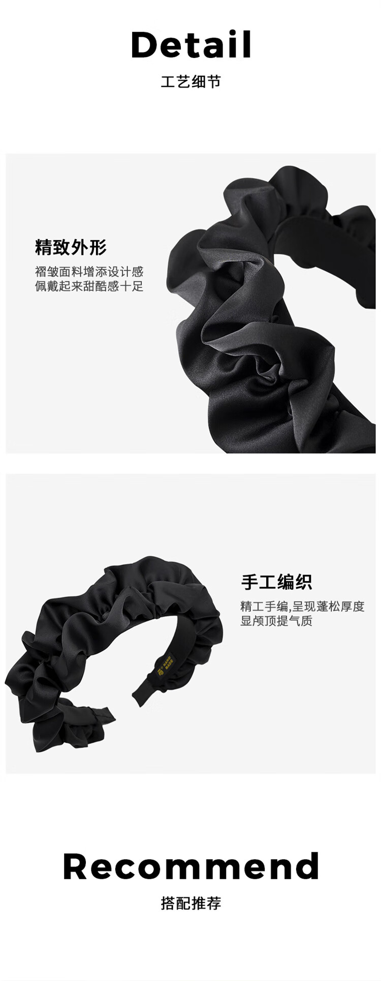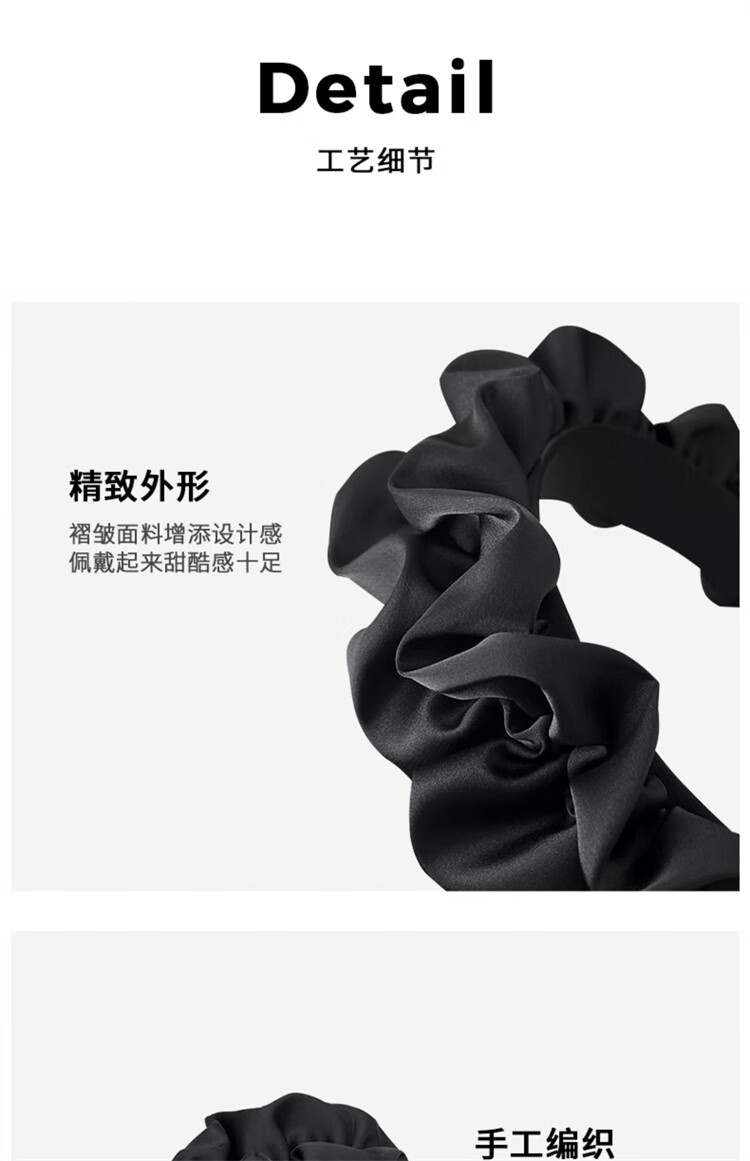 Zhuxi headband women's high-end fashionable high-ceiling Hong Kong style face wash headband hairpin 2025 new headwear pressed hair pleated headband black