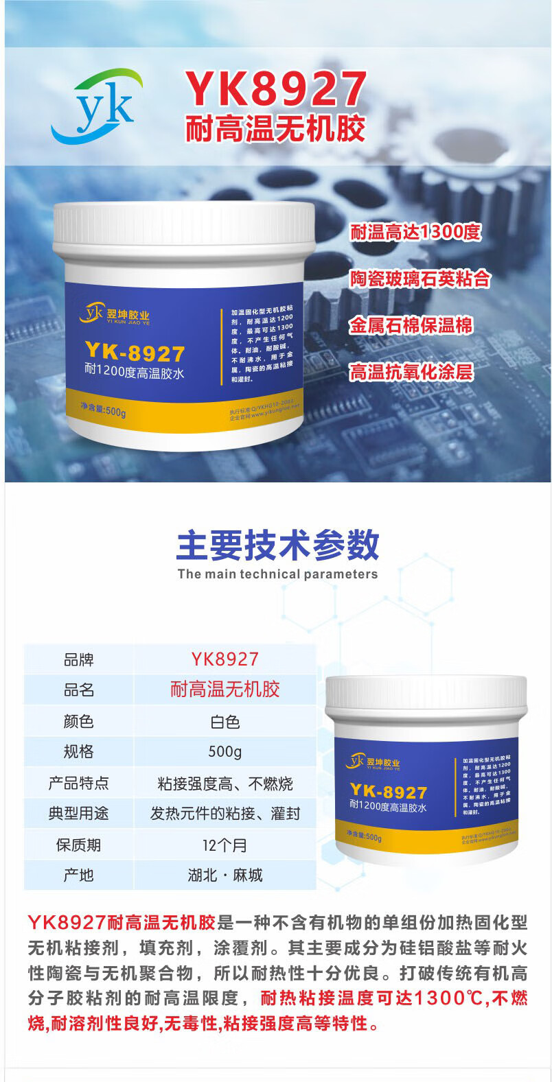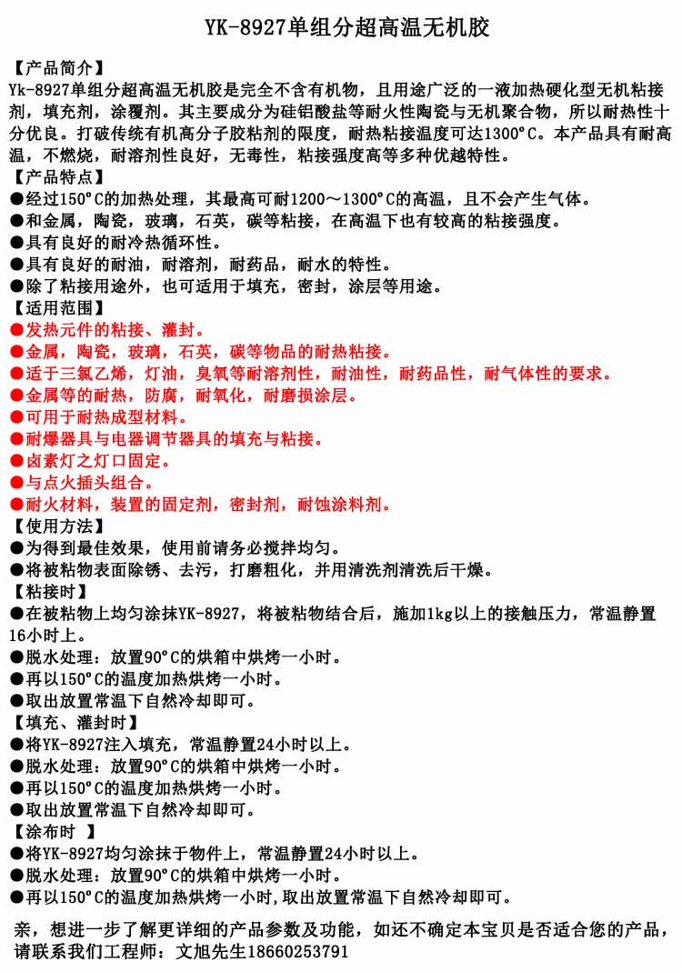 YK-8927 1300 degree high temperature resistant metal ceramic quartz glue high temperature resistant coating high temperature resistant sealant