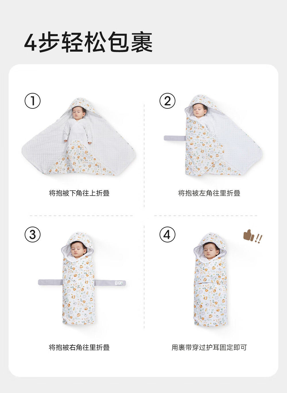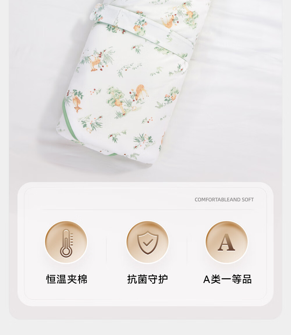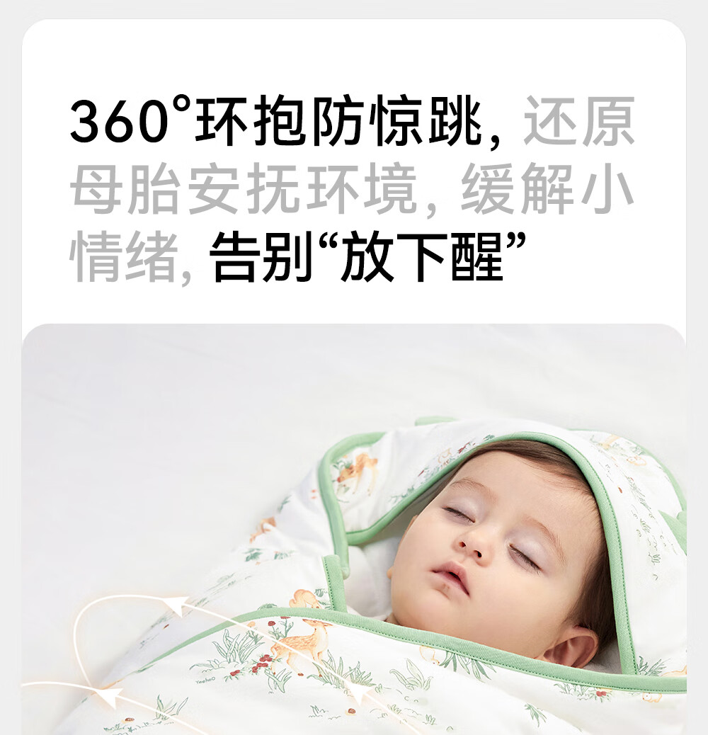 YEEHOO baby swaddle, four-season pure cotton delivery room swaddle, newborn baby anti-shock swaddle, Chunxun Shanye, recommended room temperature 18-22 90x90cm