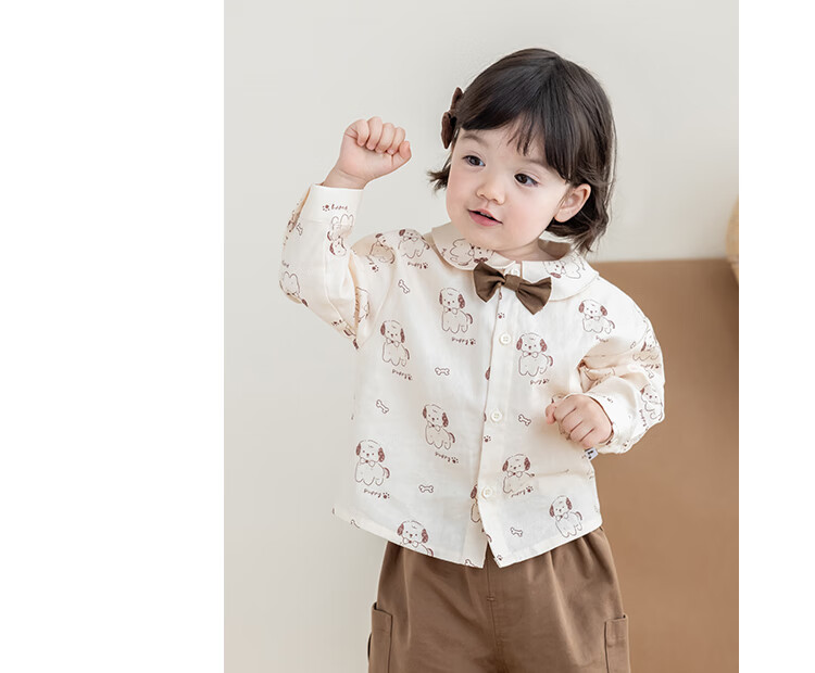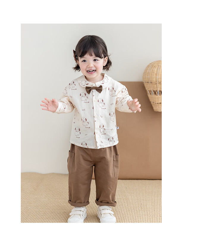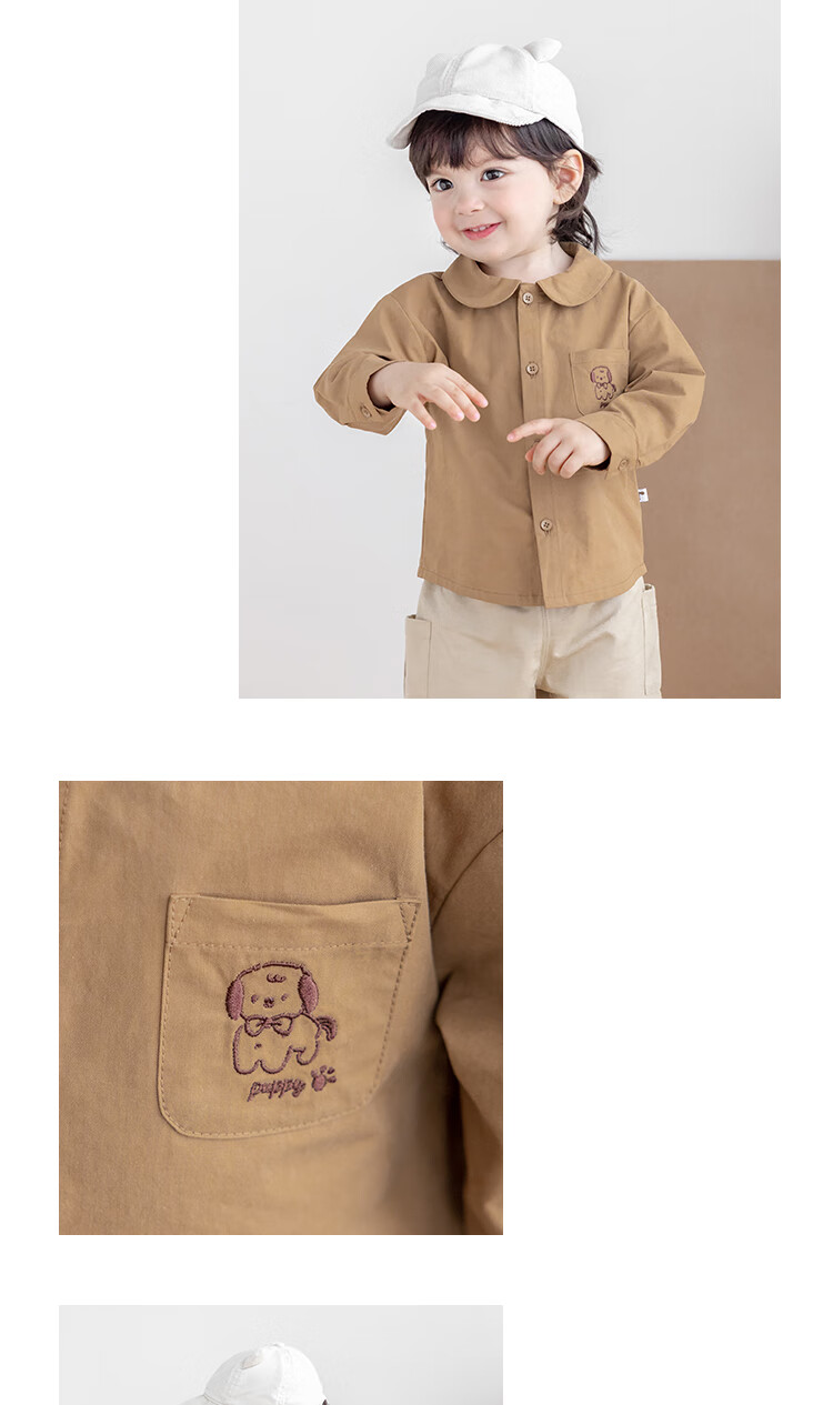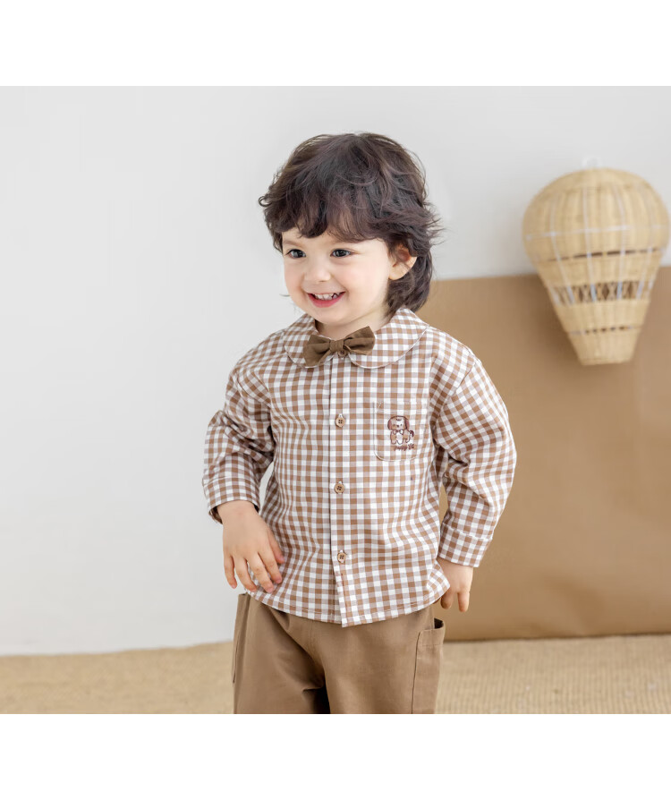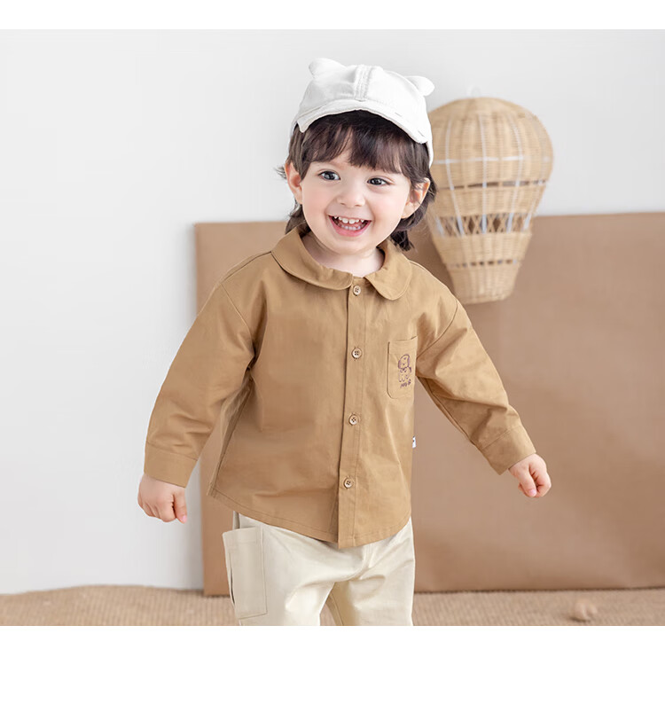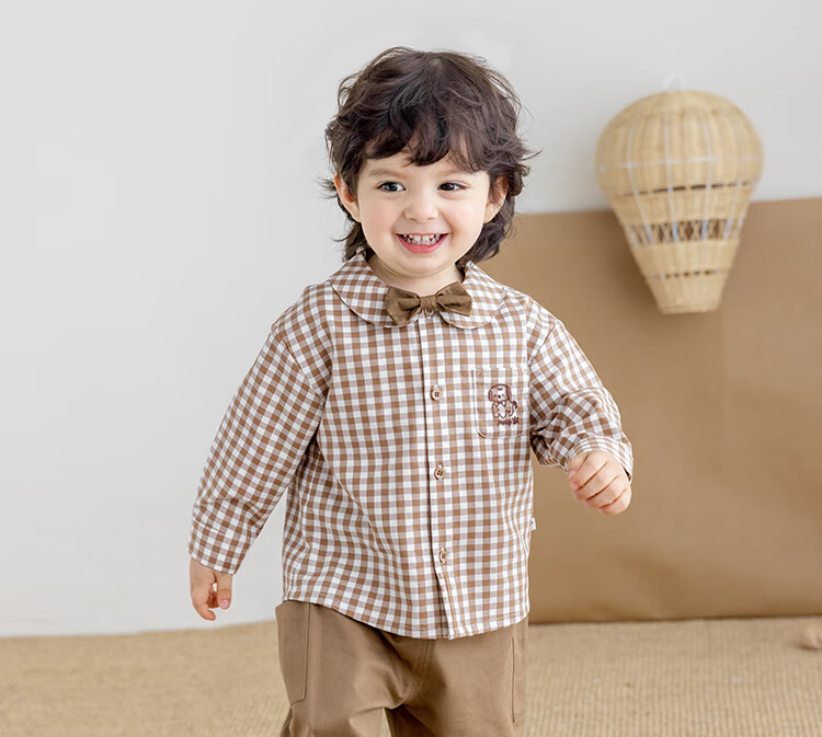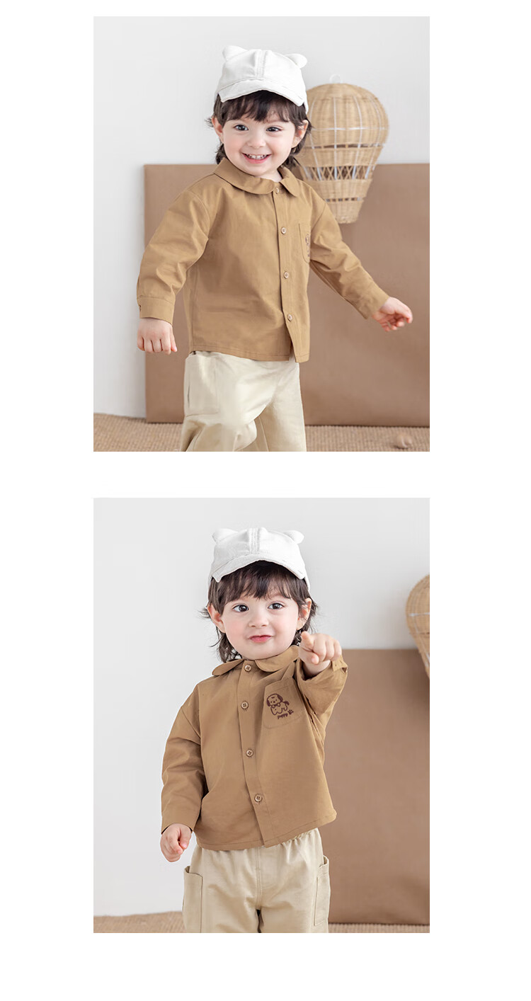 YOUGE infant and toddler autumn new retro British lapel puppy shirt skin-friendly long-sleeved children's top warm coffee color 80 cm