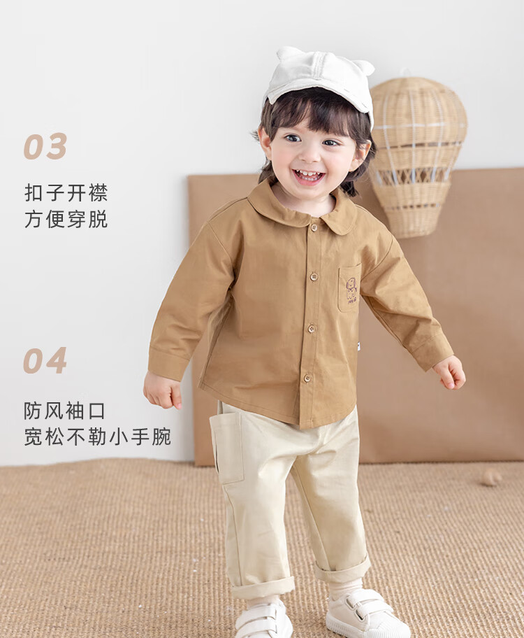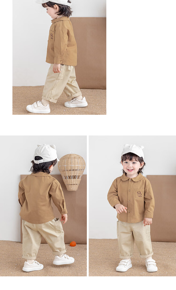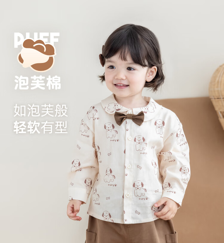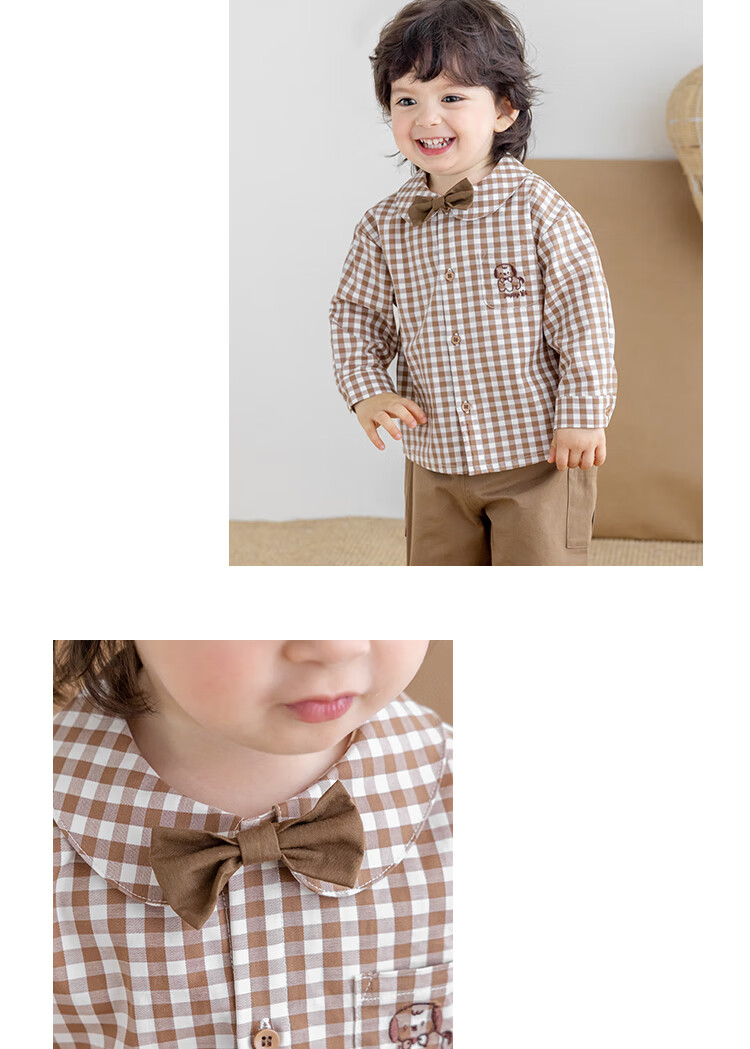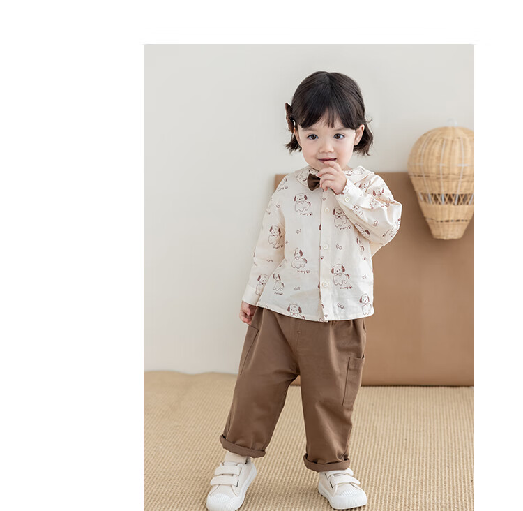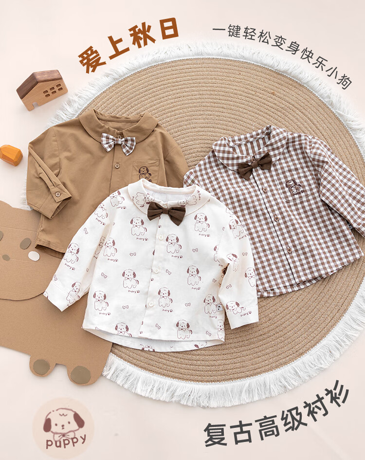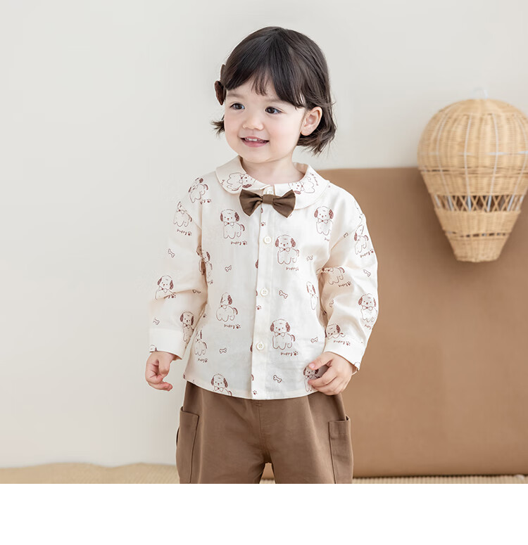 YOUGE infant and toddler autumn new retro British lapel puppy shirt skin-friendly long-sleeved children's top warm coffee color 80 cm