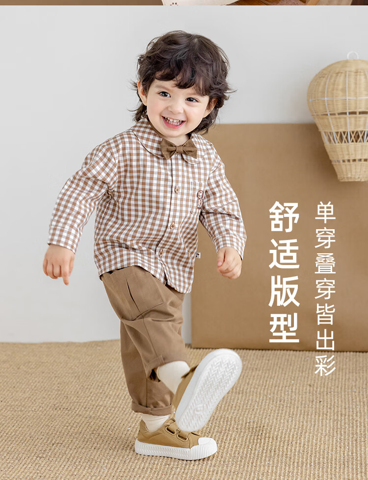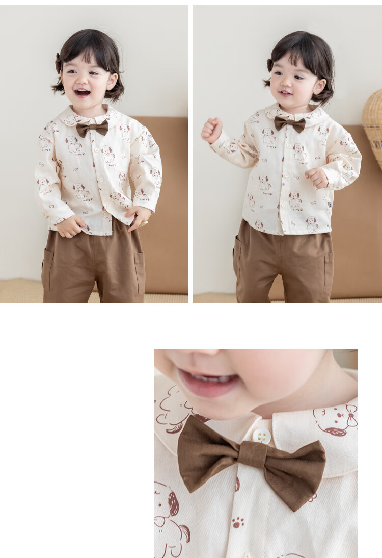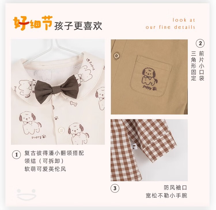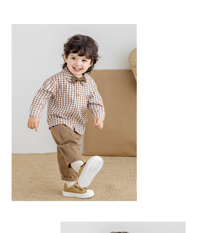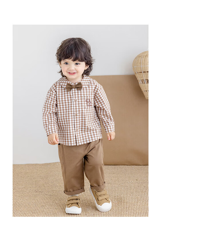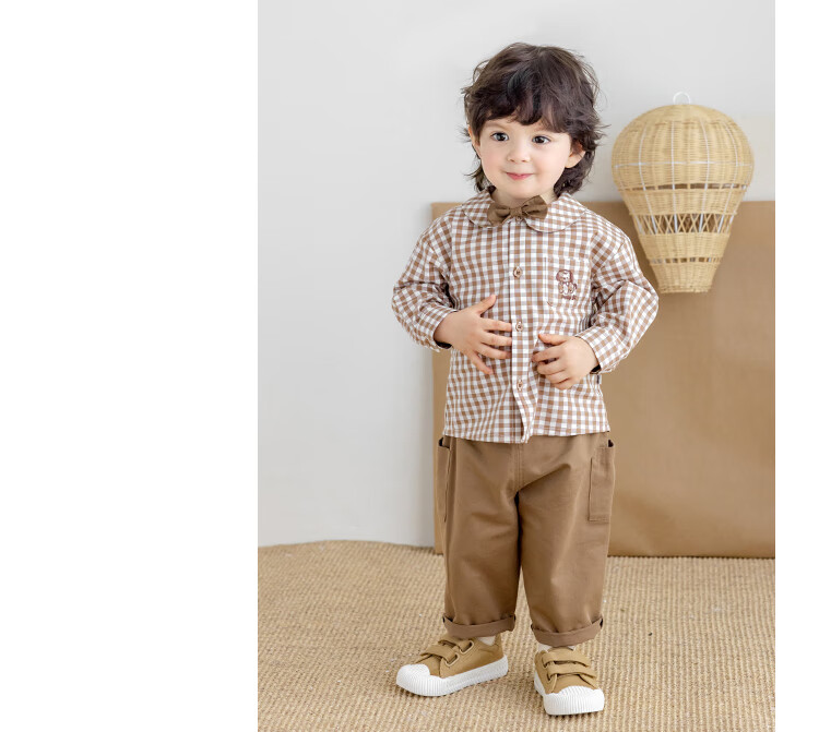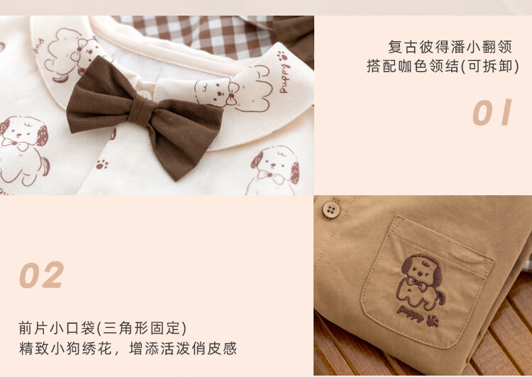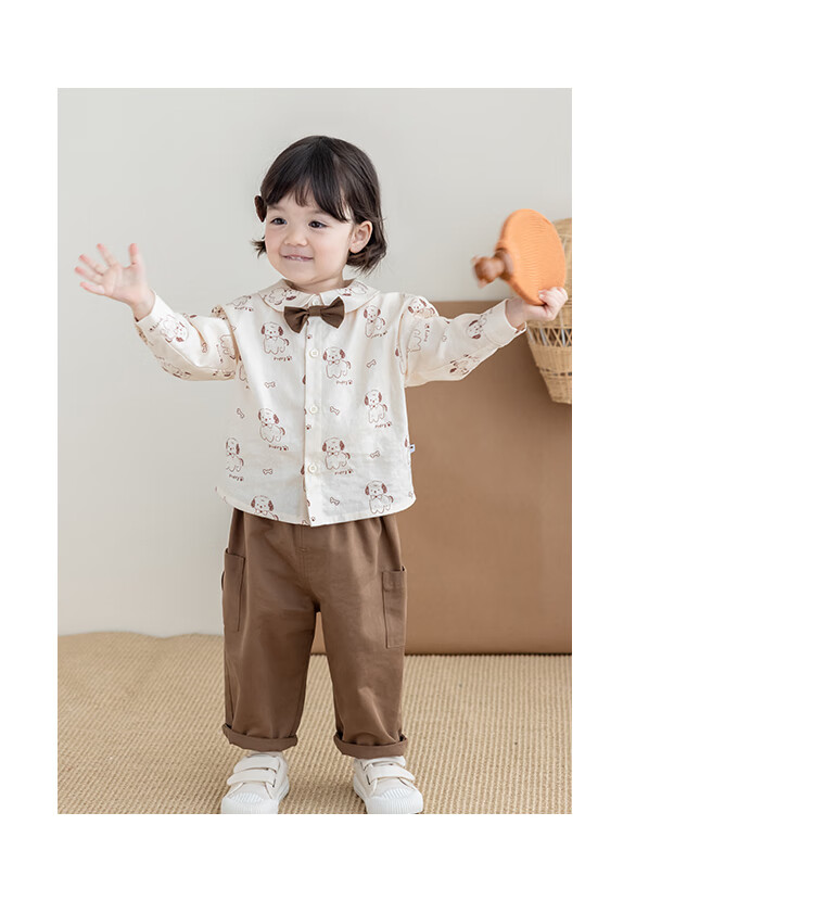 YOUGE infant and toddler autumn new retro British lapel puppy shirt skin-friendly long-sleeved children's top warm coffee color 80 cm