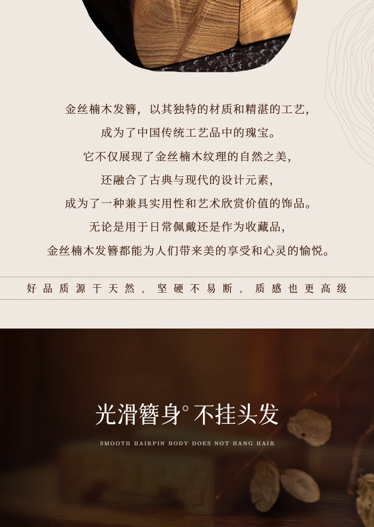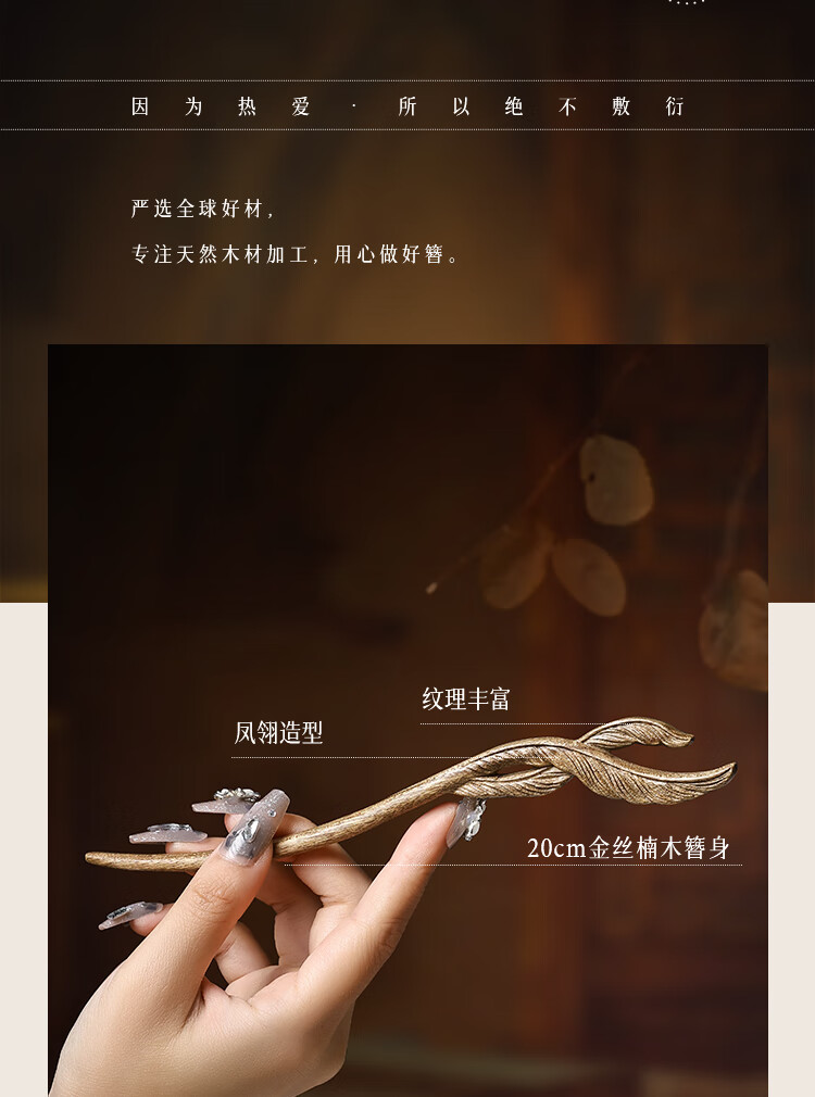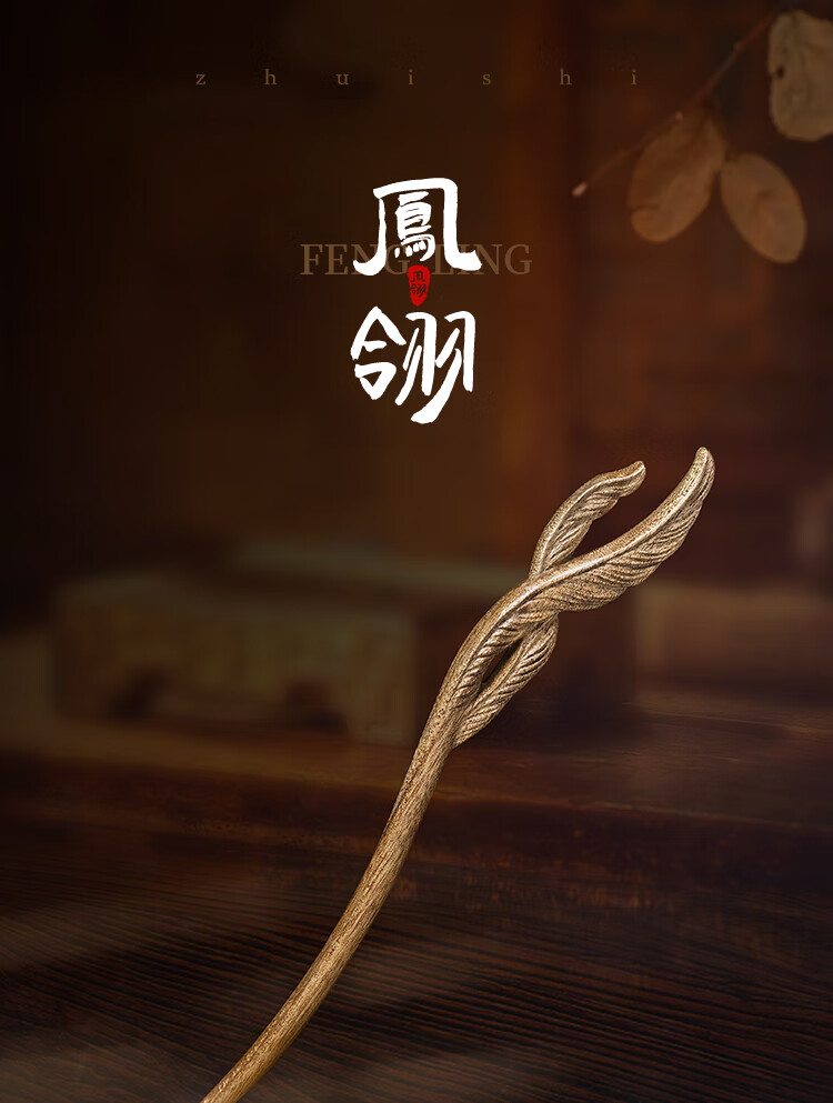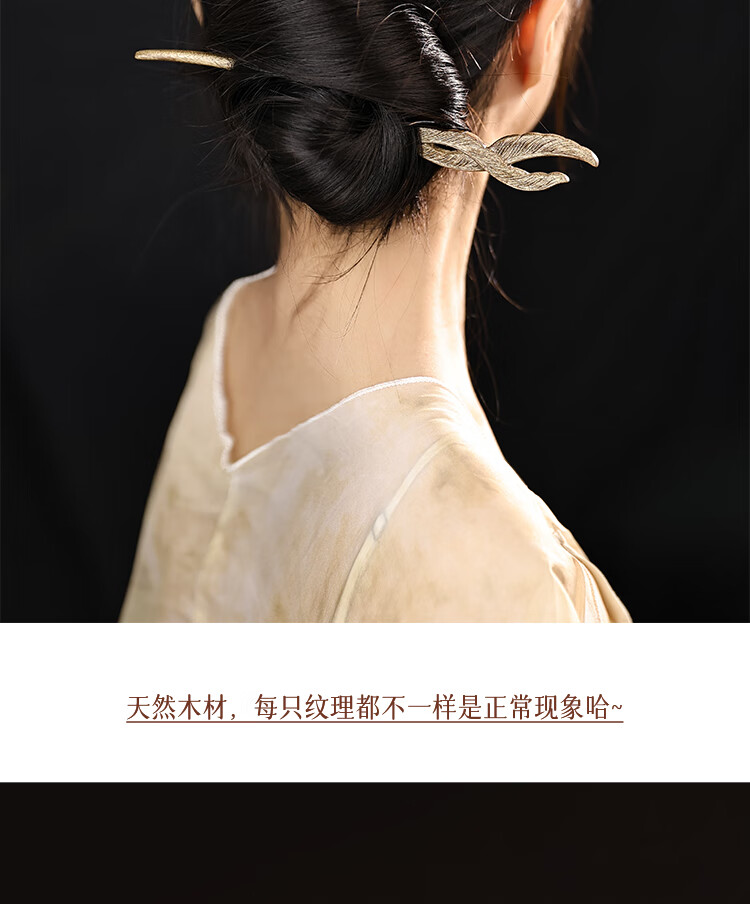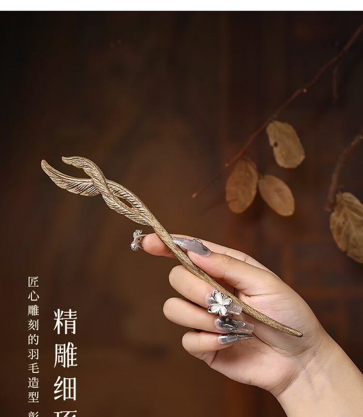 Zhuishi Zhuishi Golden Nanmu Wooden Original Ancient Style Hairpin New Chinese Hanfu Hairpin Carved Mid-Autumn Festival Gift Golden Nanmu-Feng Ling