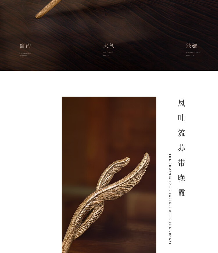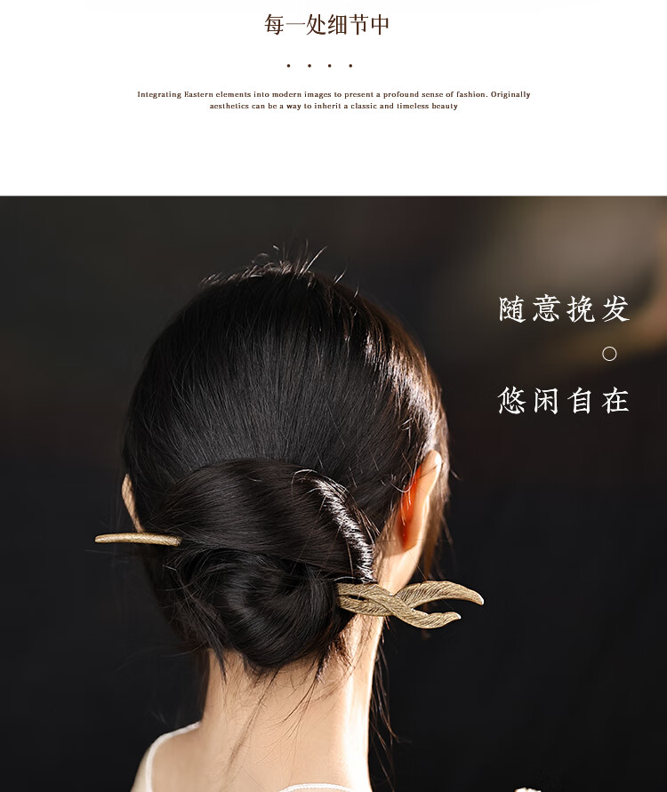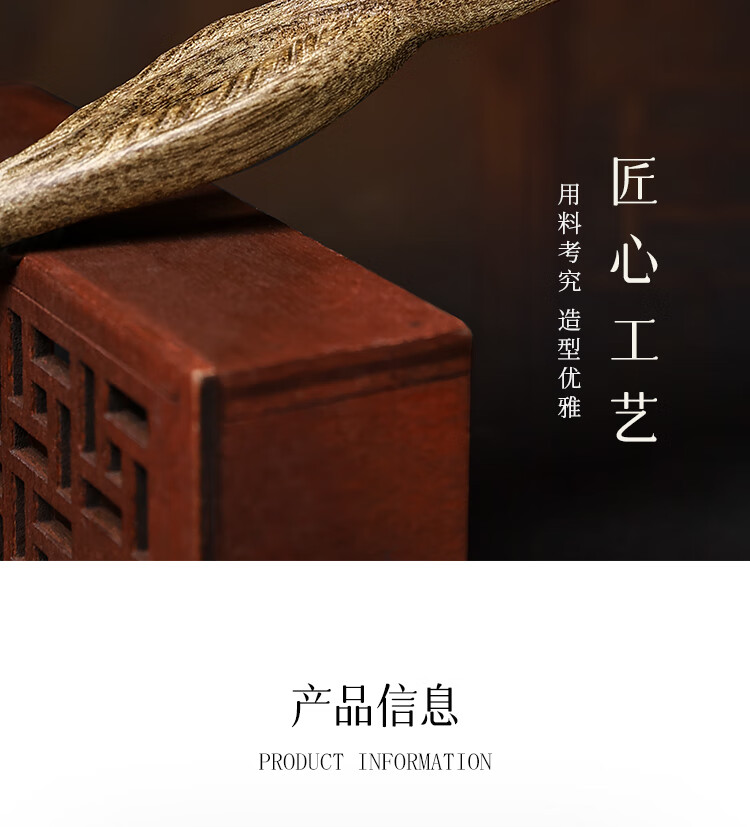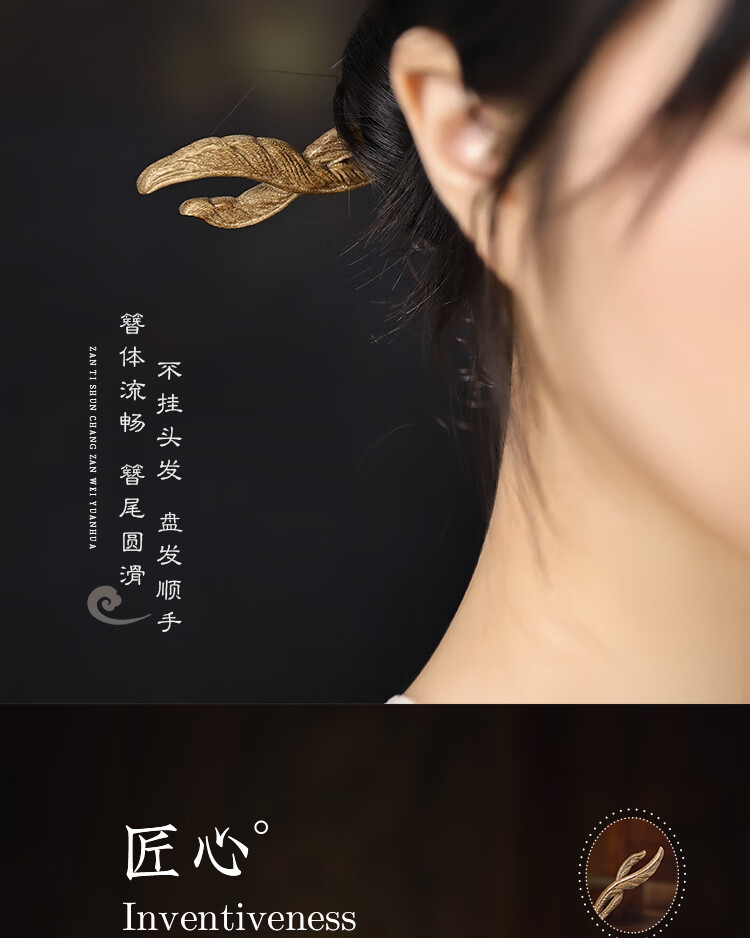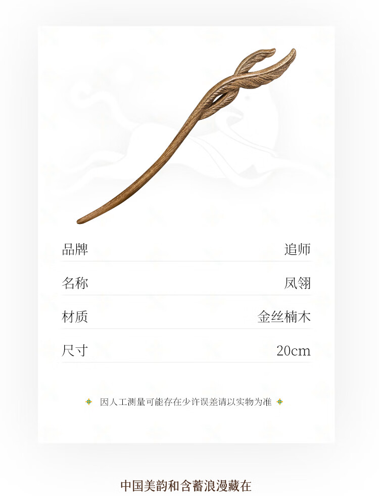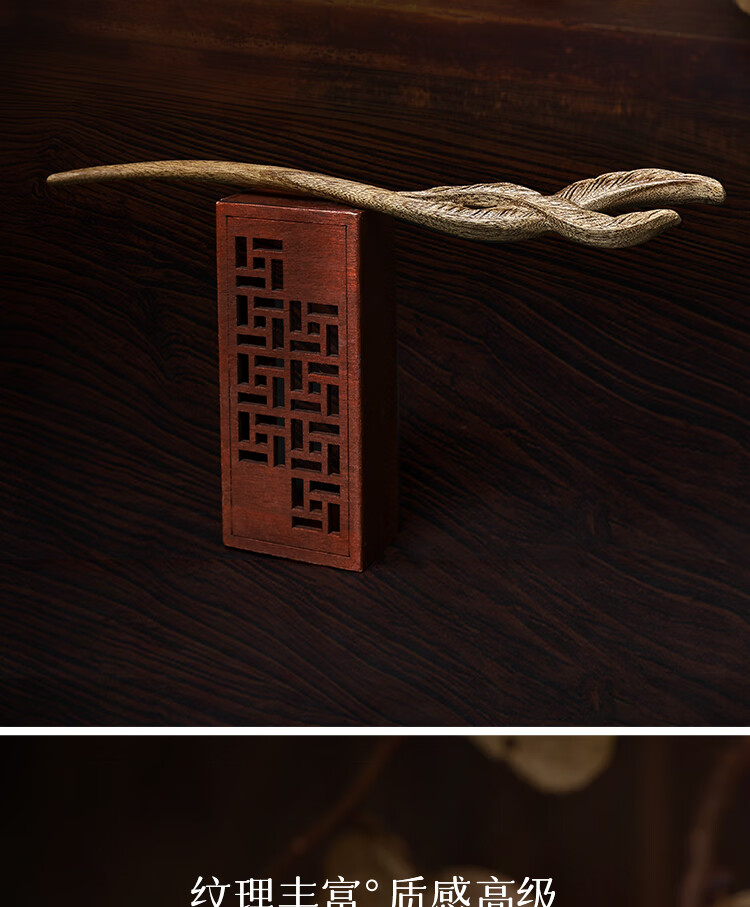 Zhuishi Zhuishi Golden Nanmu Wooden Original Ancient Style Hairpin New Chinese Hanfu Hairpin Carved Mid-Autumn Festival Gift Golden Nanmu-Feng Ling