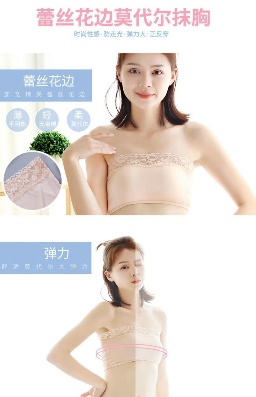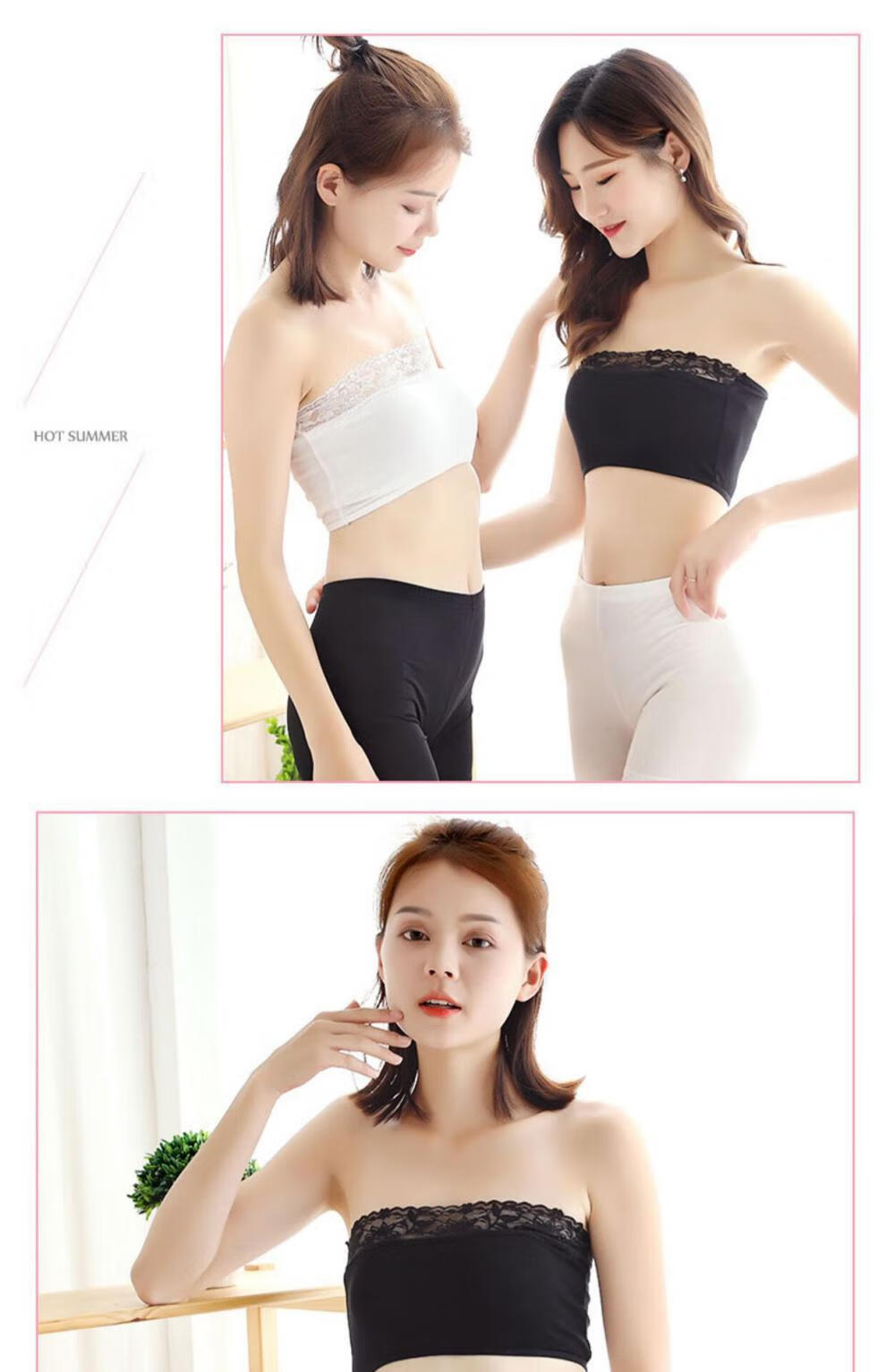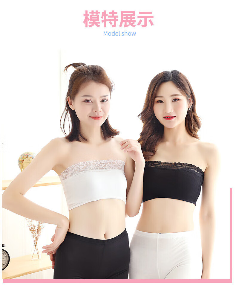 Doqianzi women's tube top bra lace sports shoulderless suspender wrap chest anti-exposure lace No. 54 white lace one size fits 80-120 Jin Jin equals 0.5 kg