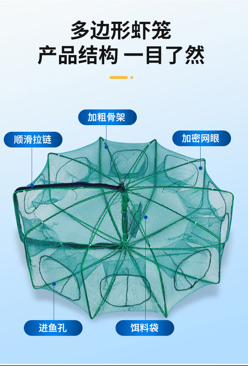 Ground net, lobster net, fish and shrimp net, fish net, can not come out, only enters the fishing net to fish eel cage, loach ground net, 6 holes, thickened and bold + 5 packs of bait