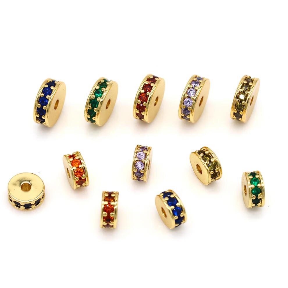 Yuman 18k gold-filled inlaid with colored diamonds straight-cut spacer spacer loose beads star and moon play bracelet bracelet beaded diy jewelry accessories 6mm yellow gold white diamond