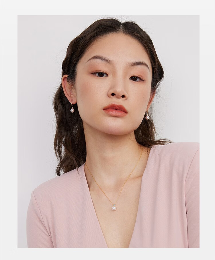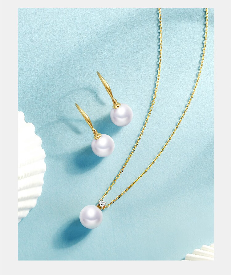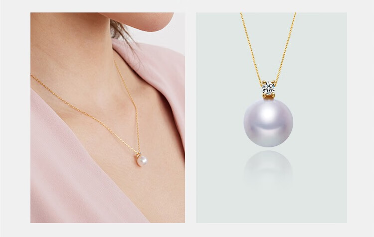 Ruan S (Ruan S) 18k gold seawater akoya pearl pendant classic princess style pearl necklace clavicle chain female birthday gift jewelry 18K gold-gold/8-8.5mm (high quality)