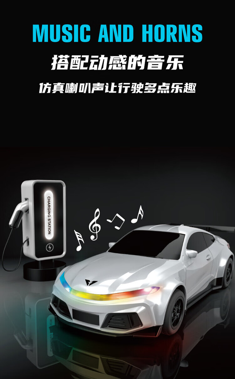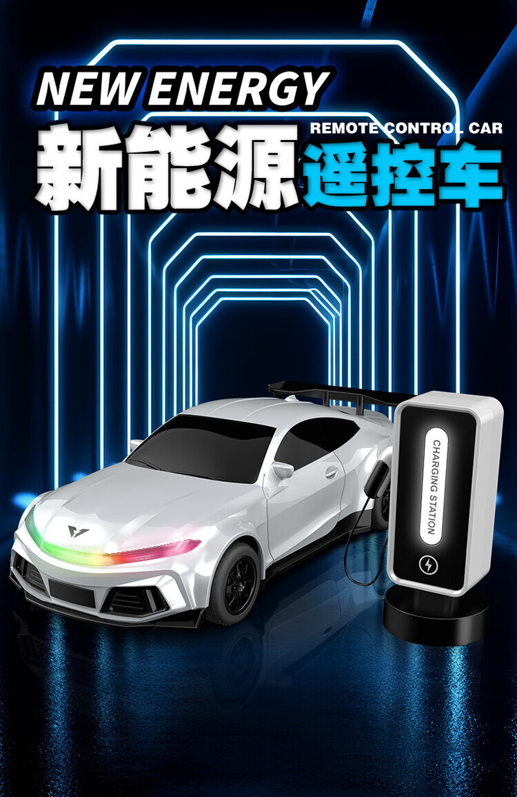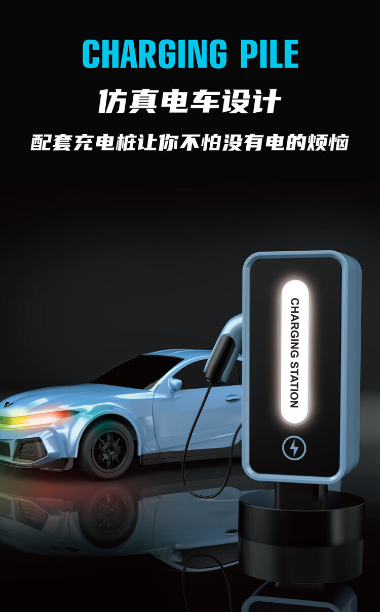New children's remote control car with charging pile simulation new energy tram 1 16 sports car model electric toy blue