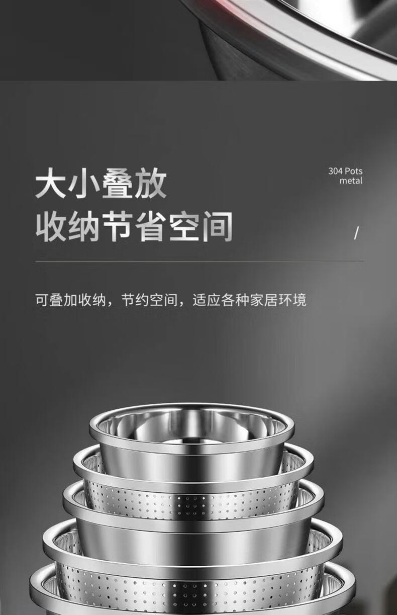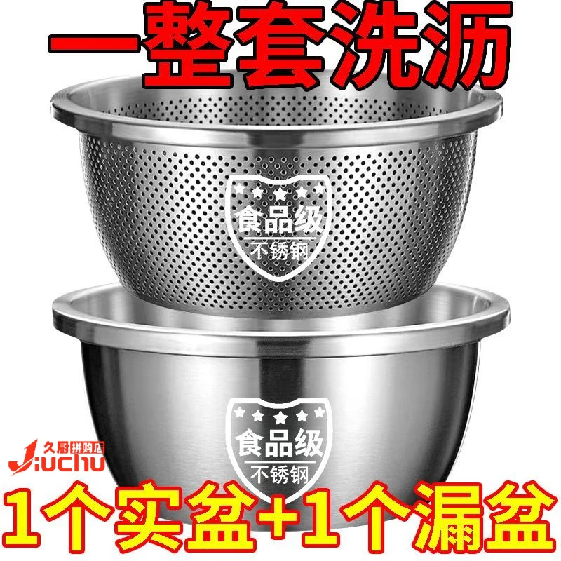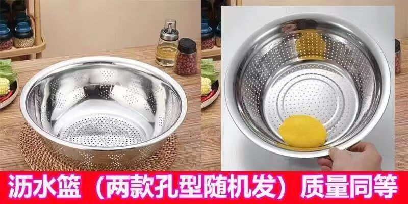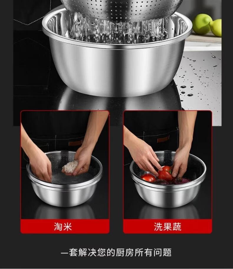 Half price 316 stainless steel food grade commercial drain basin drain basin fruit basket vegetable washing basin two-piece set 28CM basin + drain basin hot selling 2-piece set