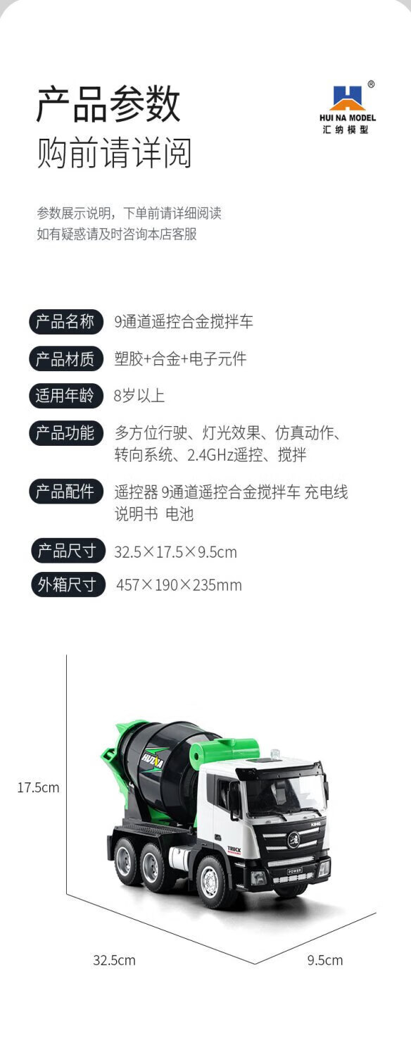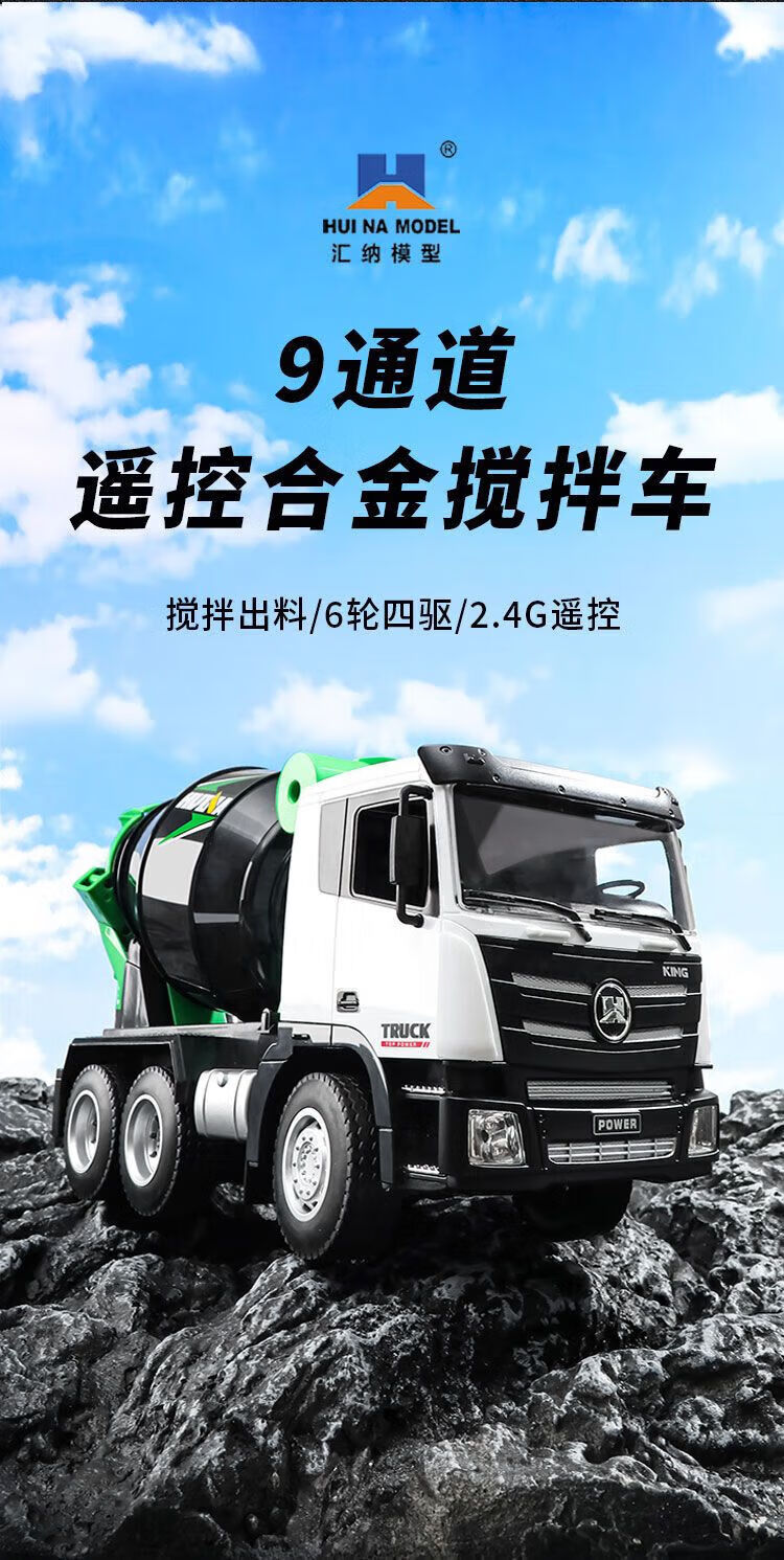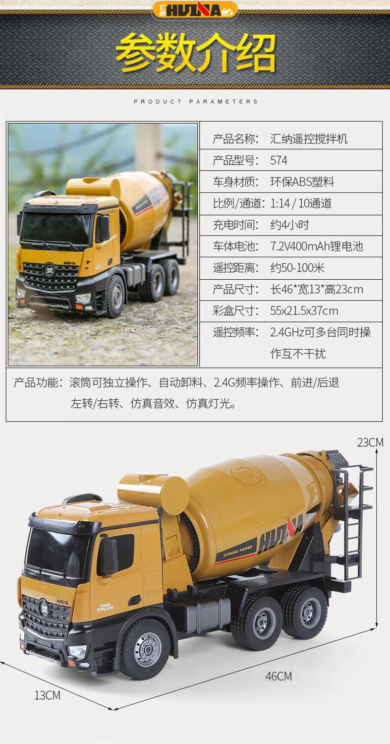 Huina Engineering Vehicle Extra Large Remote Control Mixer Truck Rechargeable Model Cement Concrete Children's Toy Car Boy Small Huina 557 Guaranteed Top Matching Three Batteries and One Charge