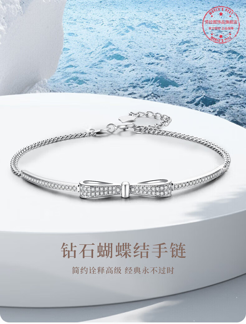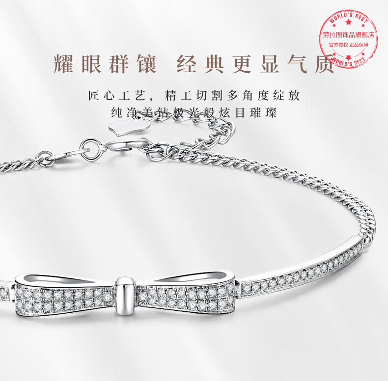 LAOLATU pt950 platinum diamond bracelet for women platinum diamond bow Chinese Valentine's Day gift for wife and girlfriend Pt950 platinum diamond bow bracelet