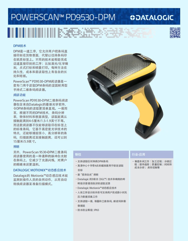 Datalogic PD953X series PD9530/PD9531 two-dimensional handheld industrial barcode scanner screen reading