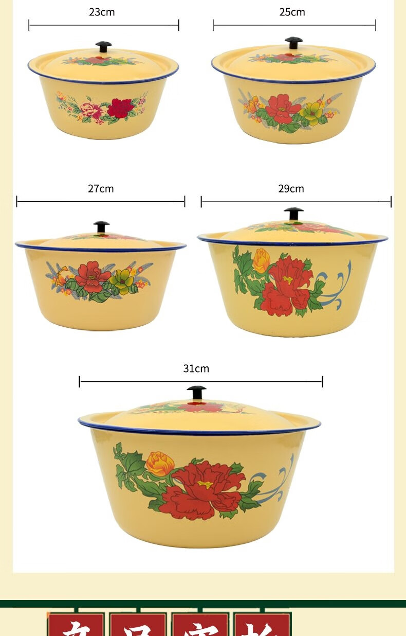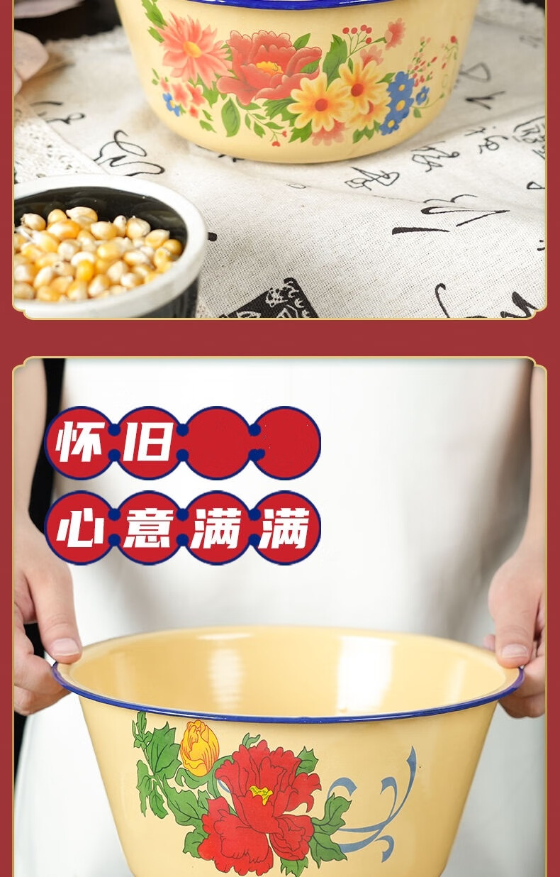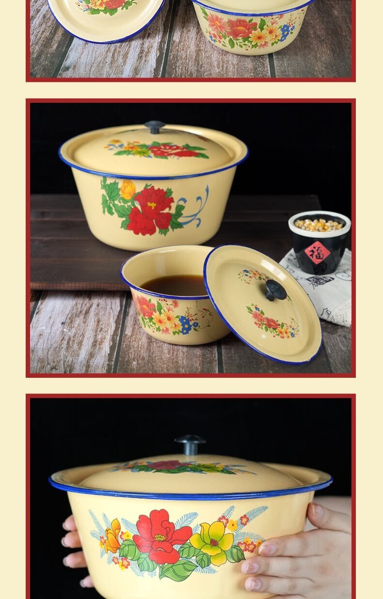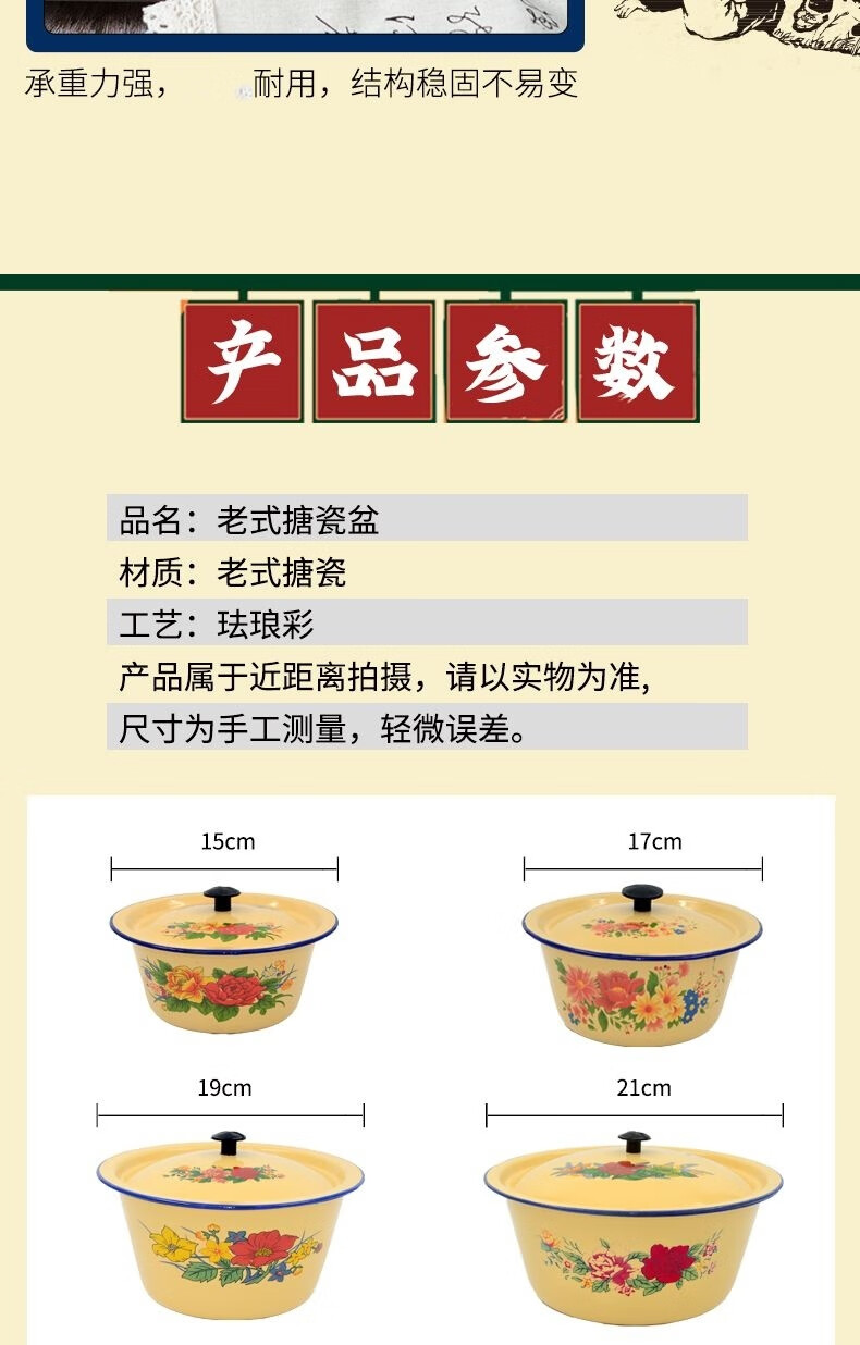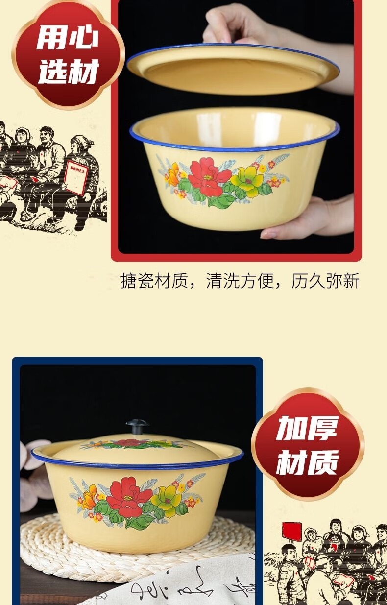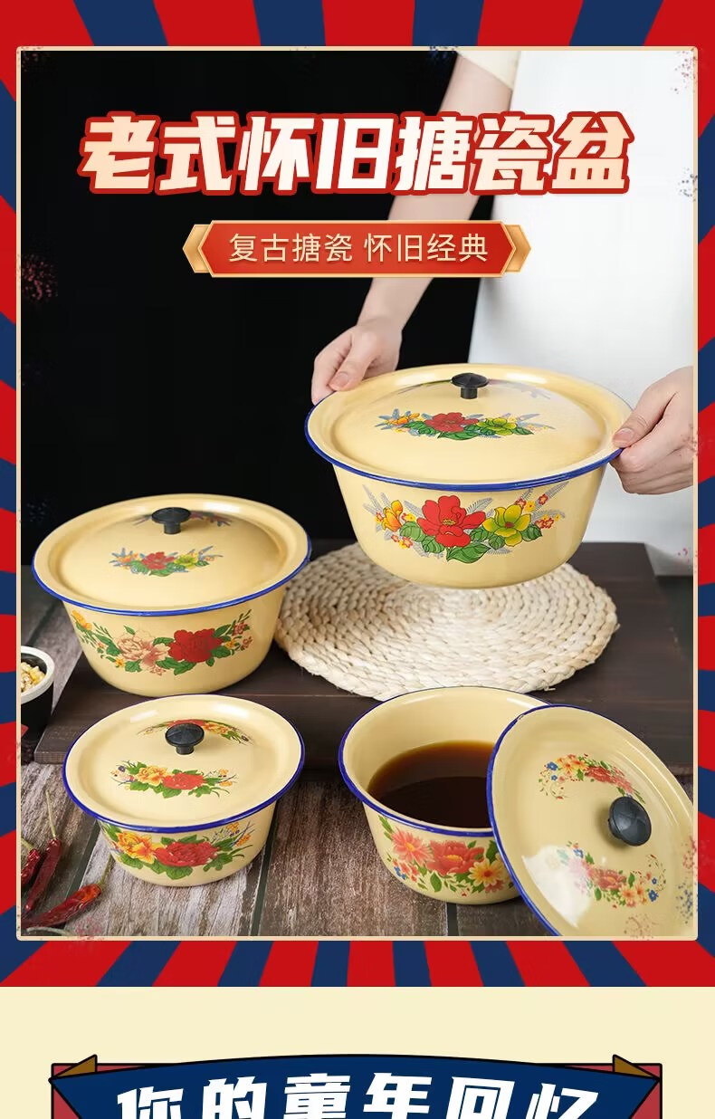 Yue Yi lard can household enamel basin old-fashioned retro nostalgic dumpling filling bowl and basin with lid meat oil can storage tank 17 cm 1.05 liter thickened version