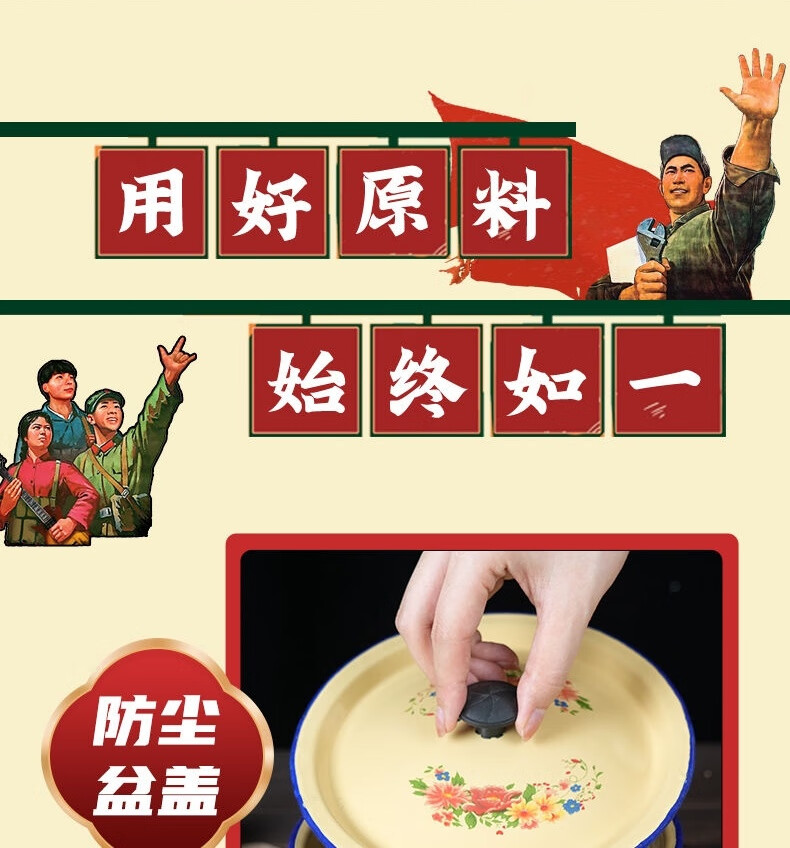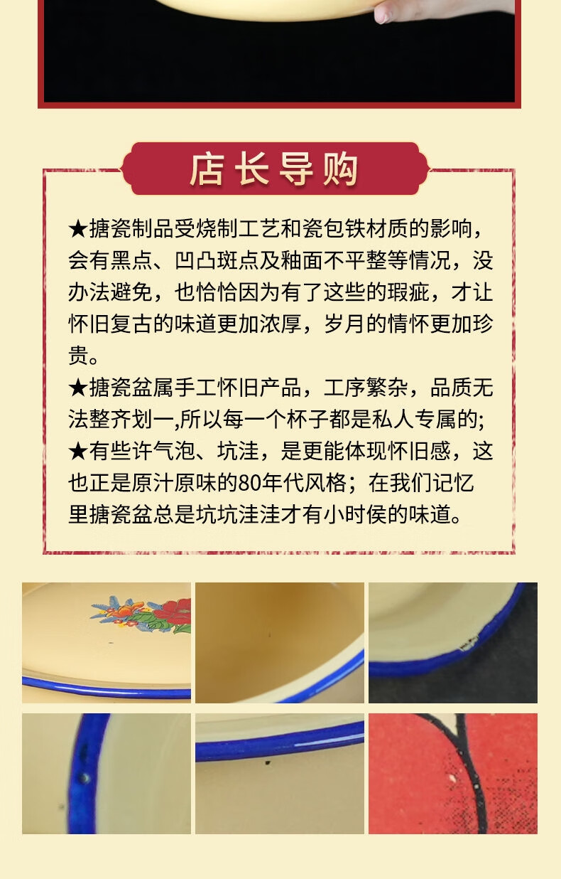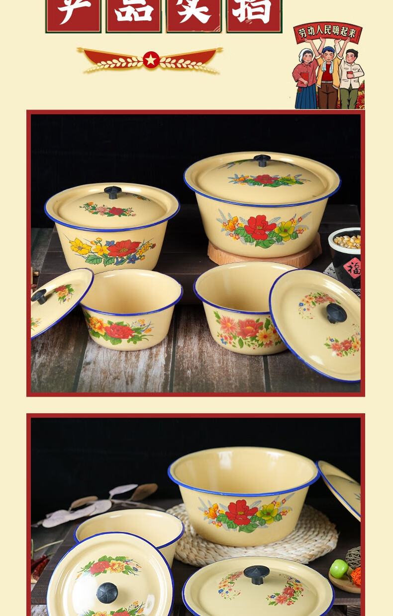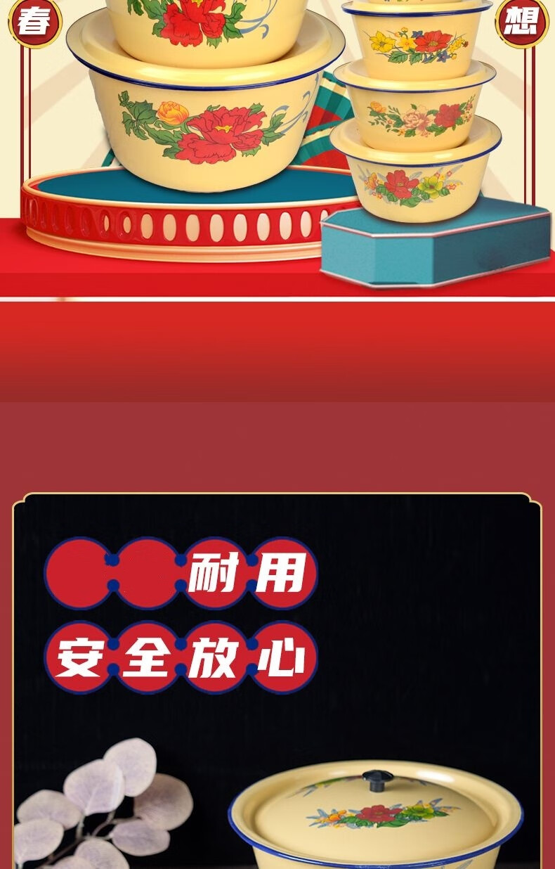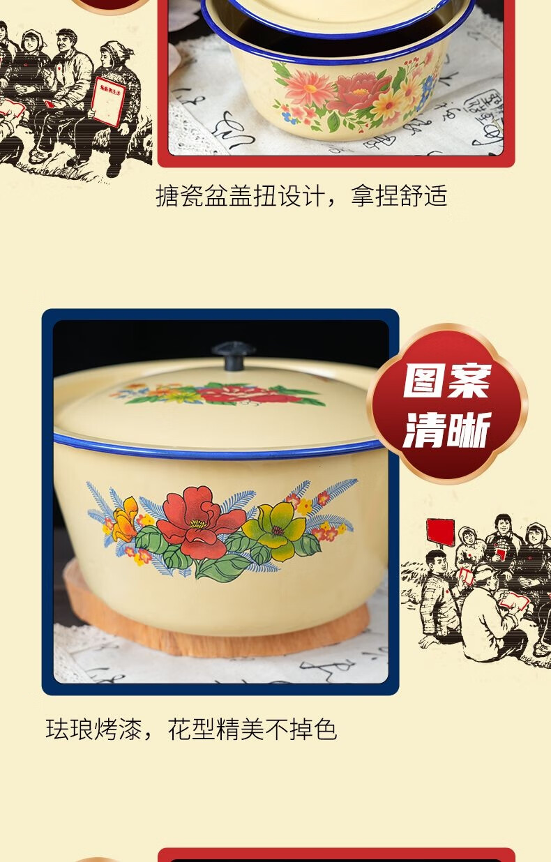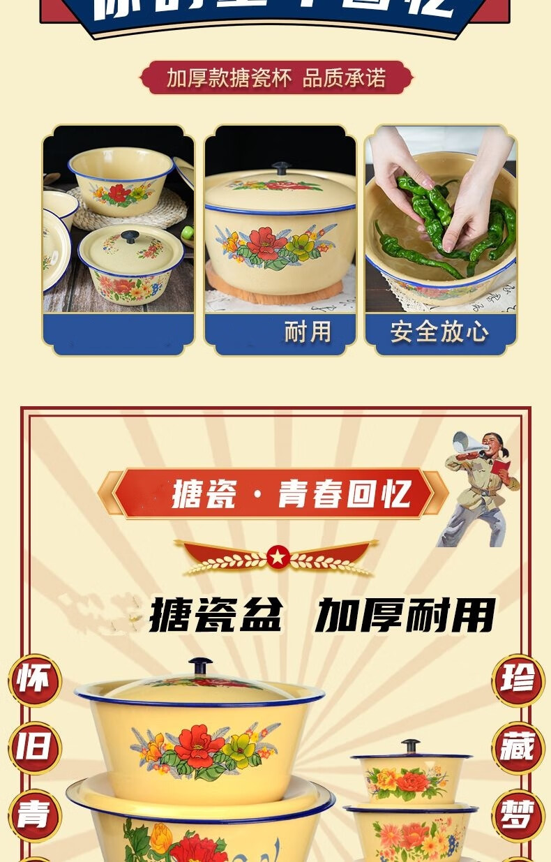 Yue Yi lard can household enamel basin old-fashioned retro nostalgic dumpling filling bowl and basin with lid meat oil can storage tank 17 cm 1.05 liter thickened version