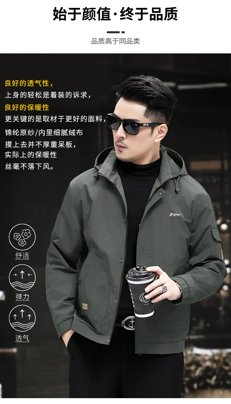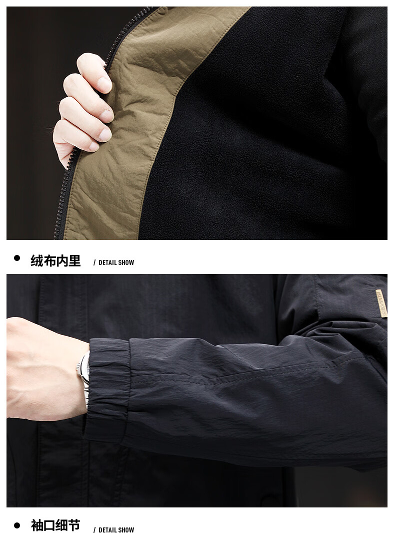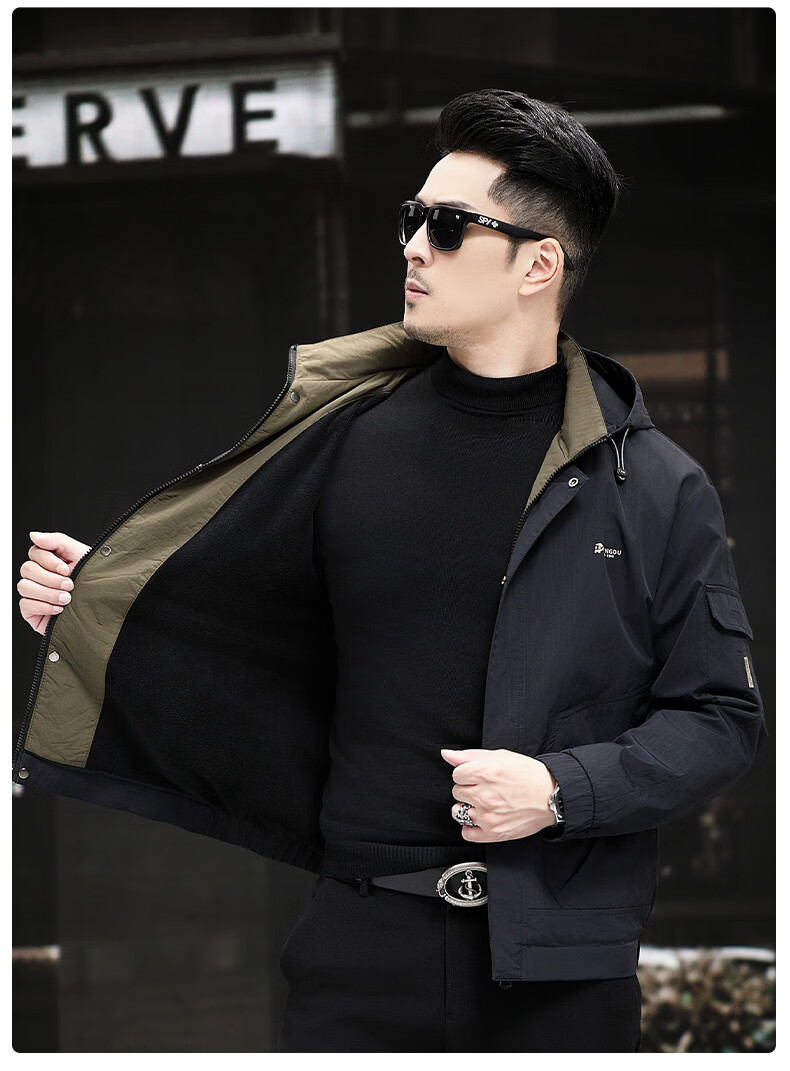 Pierre Cardin high-end casual fleece jacket for men 2025 spring and autumn new windproof soft shell jacket plus fleece middle-aged dad men's jacket black high-end fabric fleece lining 175/L 120-137Jin Jin equals 0.5 kg