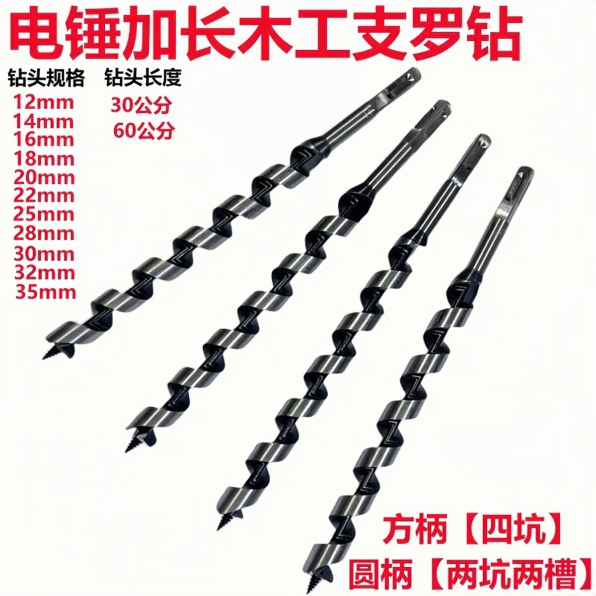 Martillo eléctrico, broca especial extendida para carpintería, mango cuadrado, cuatro hoyos, plantilla de taladro extendida para carpintería, taladro de soporte para carpintería, taladro helicoidal, mango cuadrado, martillo eléctrico, cuatro hoyos, mango cuadrado, apertura de 12 mm, 300 mm de largo, eliminación de virutas afiladas