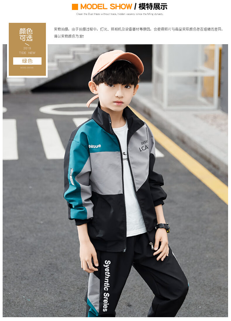 Disney Children's Clothing Boys' Spring and Autumn Sports Suit 2024 New Boys' Medium and Large Children's Two-piece Set Children's Korean Style Fashionable Green (It is recommended to buy half a size larger 150cm