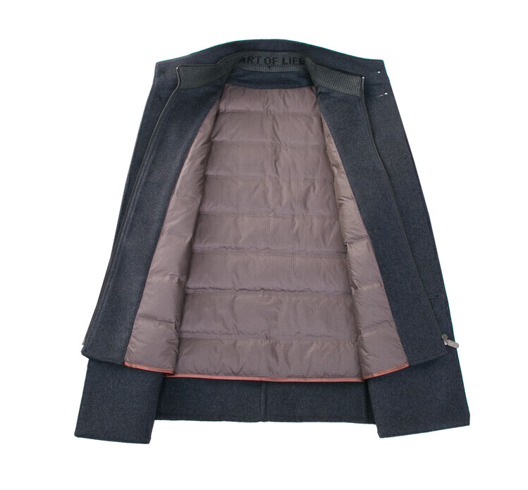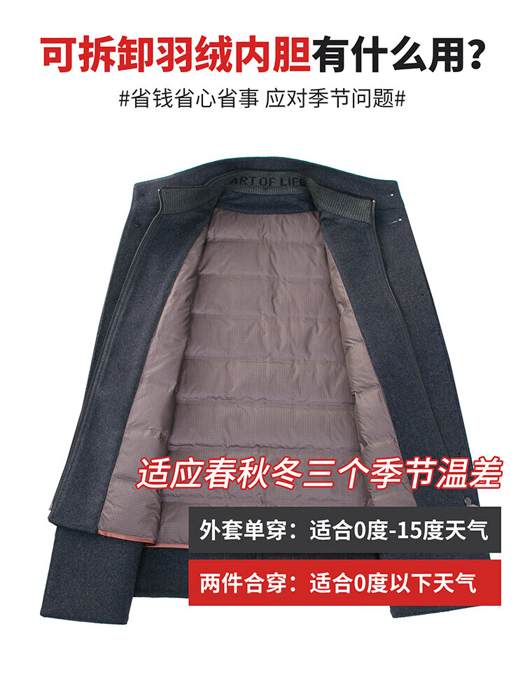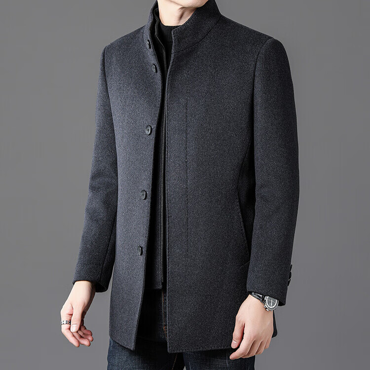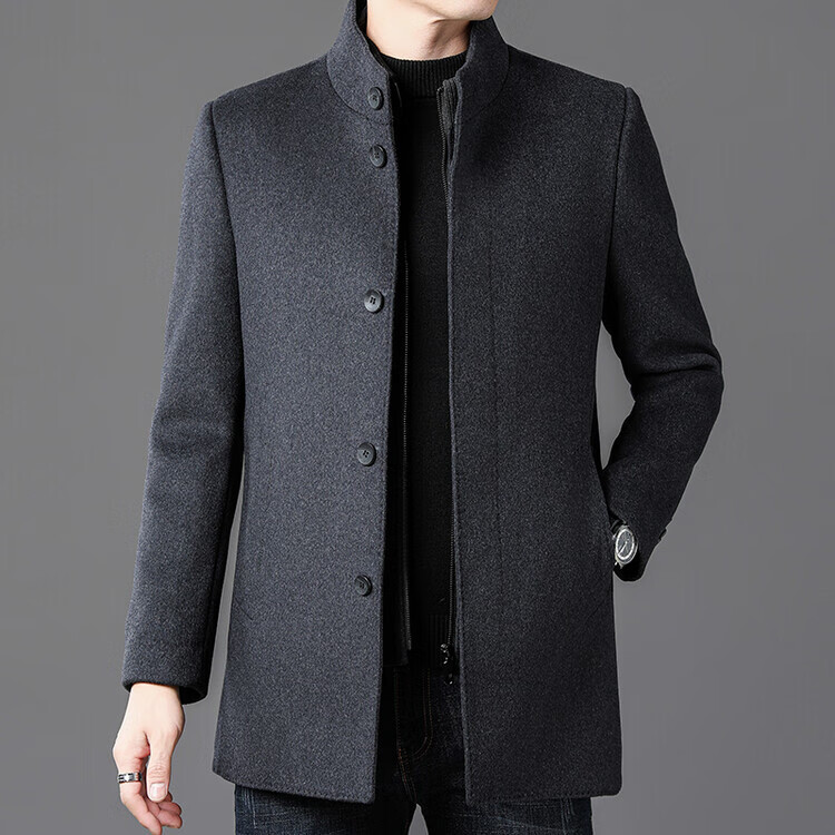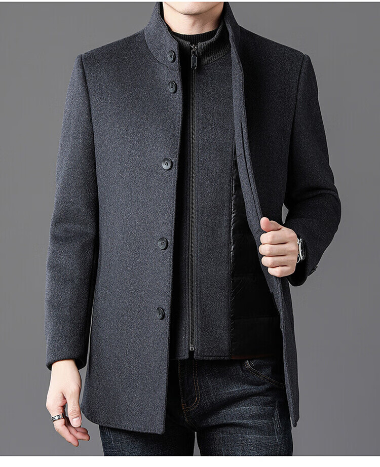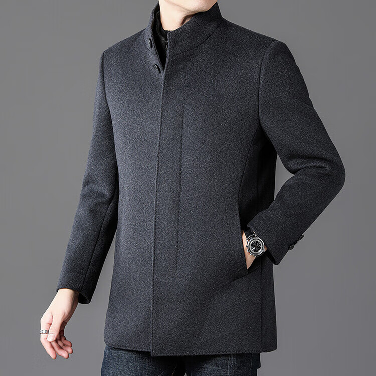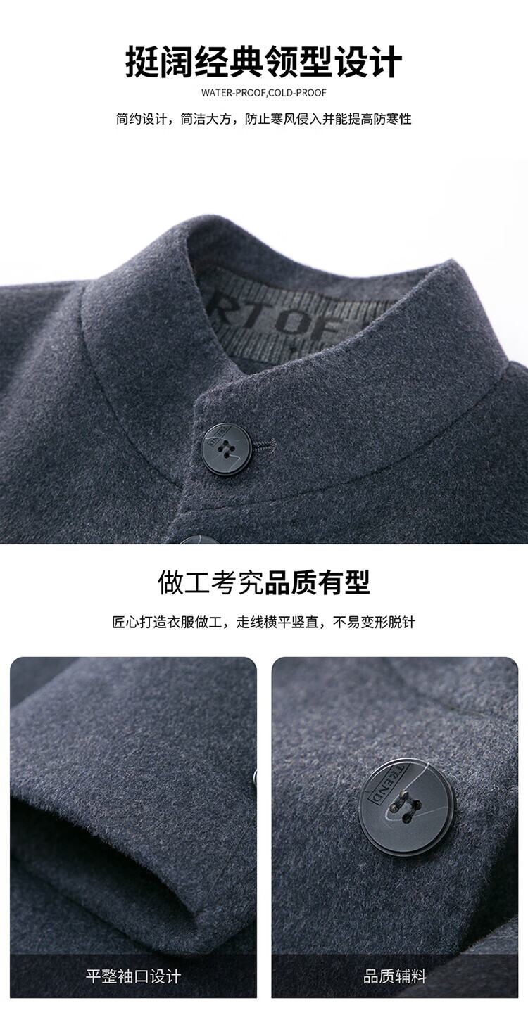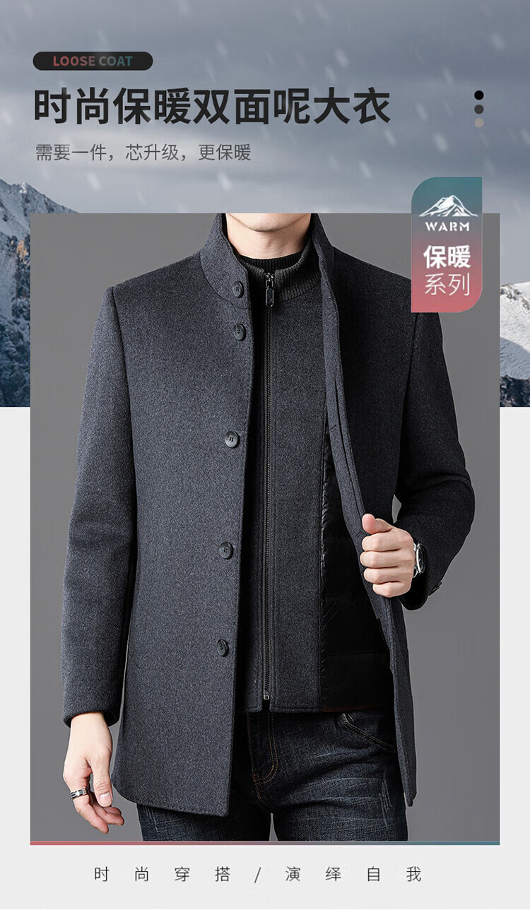 ROMON autumn and winter double-sided woolen coat with removable liner for middle-aged and elderly men, thickened stand-up collar wool mid-length coat for men, gray thickened L (recommended 125-135 Jin Jin equals 0.5 kg)