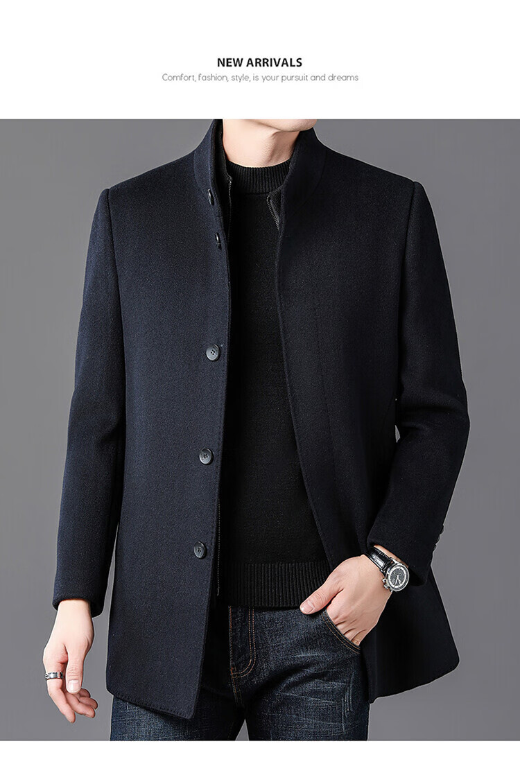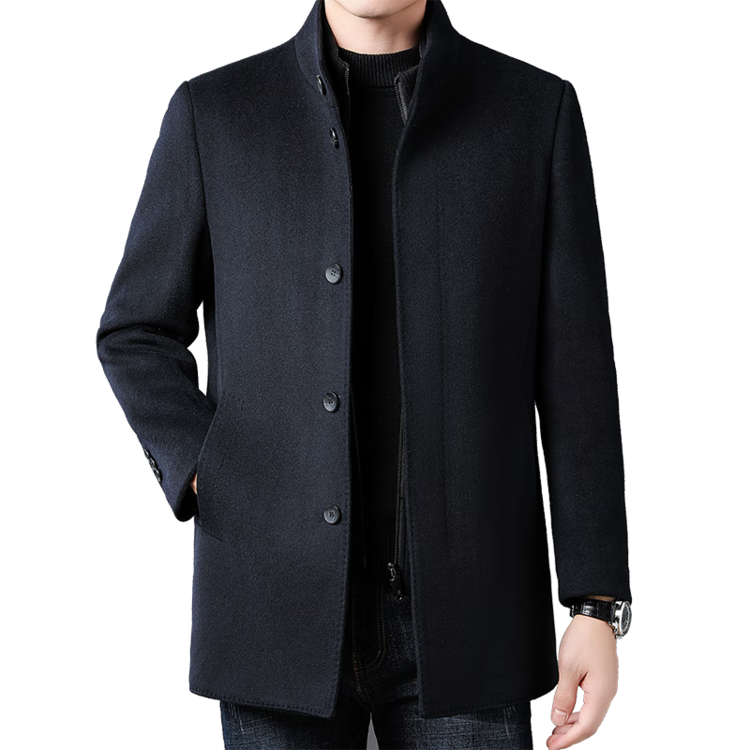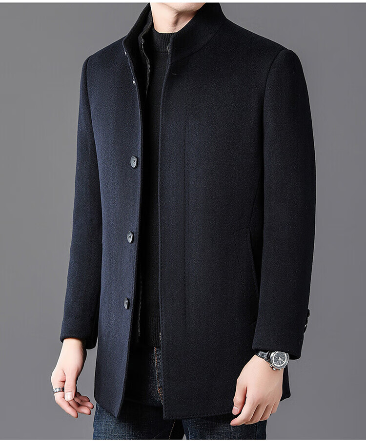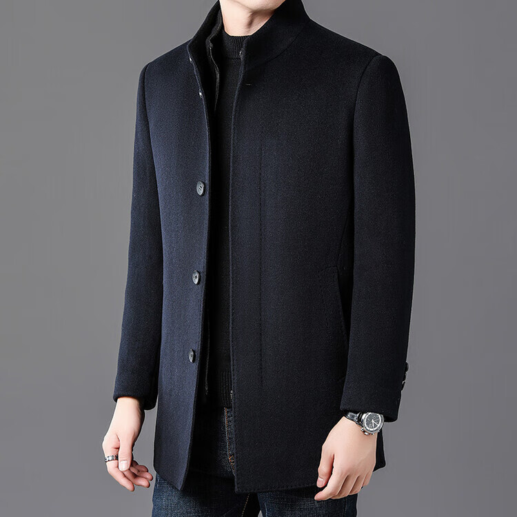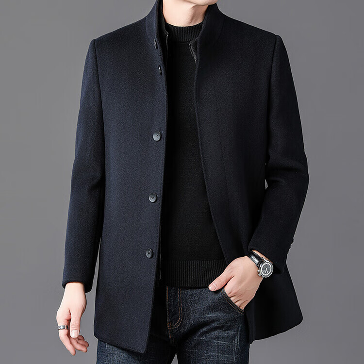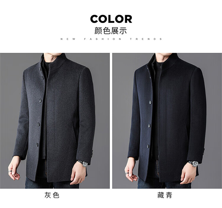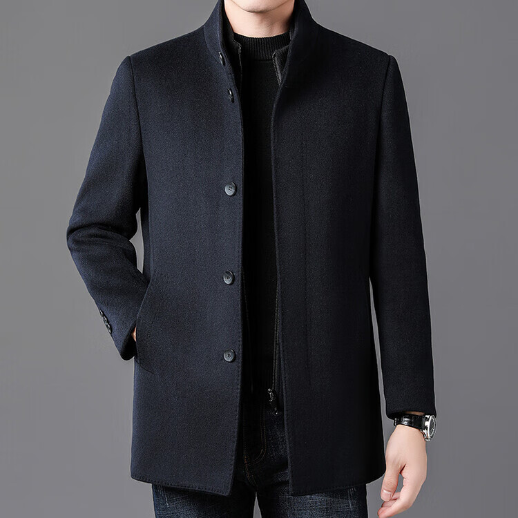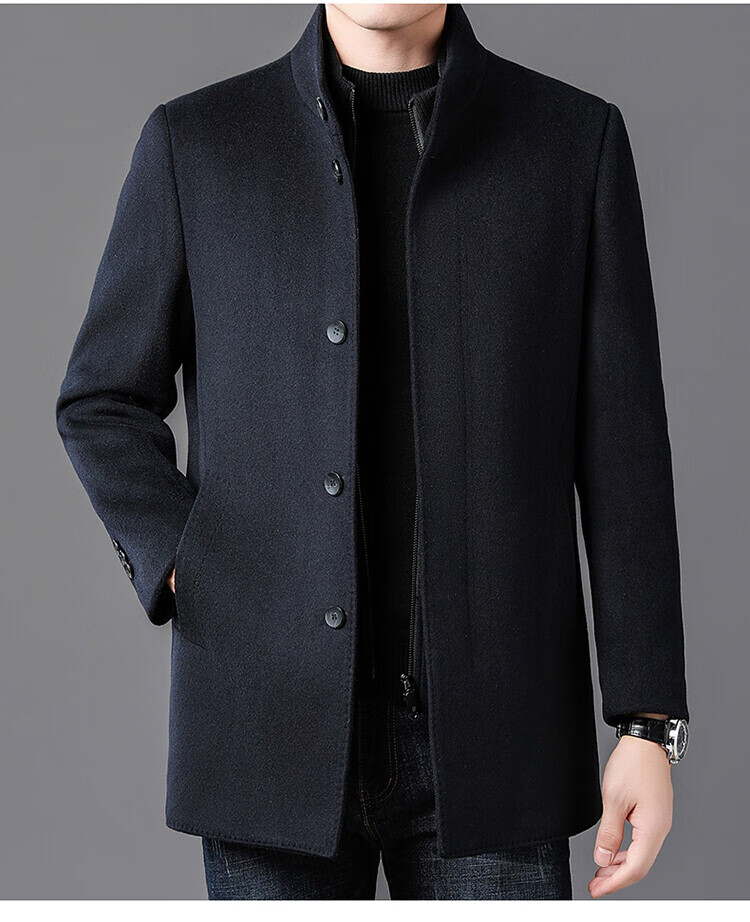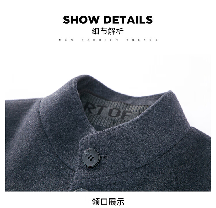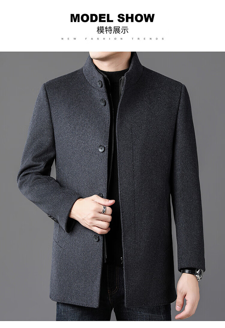 ROMON autumn and winter double-sided woolen coat with removable liner for middle-aged and elderly men, thickened stand-up collar wool mid-length coat for men, gray thickened L (recommended 125-135 Jin Jin equals 0.5 kg)