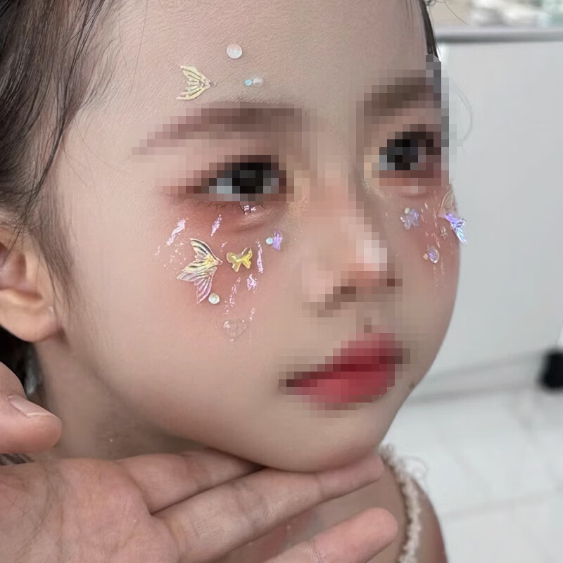 Xuanluo Zhenpin Aurora Butterfly Stickers Children's Stage Makeup Diamond Stickers Tear Diamond Stickers Diamond Fairy Makeup Stickers Makeup Eye Makeup Eye Corner Butterfly Aurora Butterfly 1 piece pack about 46-48 pieces