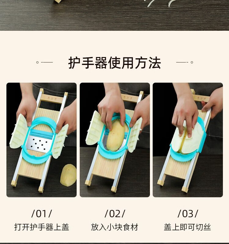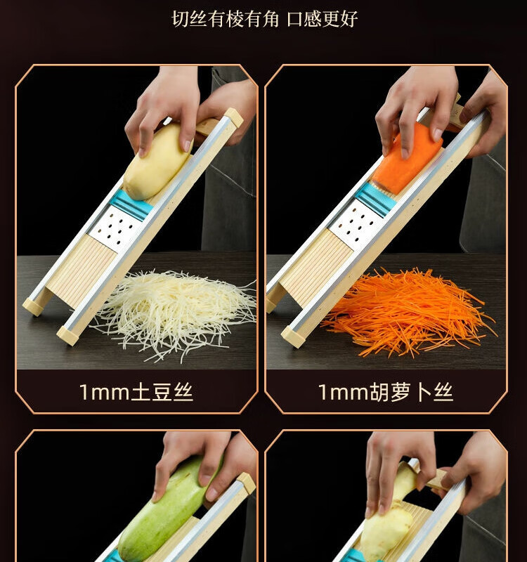 Longjiang 1mm-3mm ultra-fine wire cutter, kitchen grater, commercial grater for cutting long ginger shreds, patented 1mm ultra-fine + special hand protector