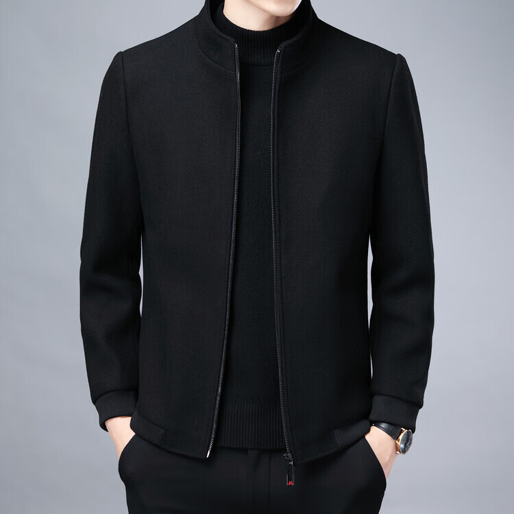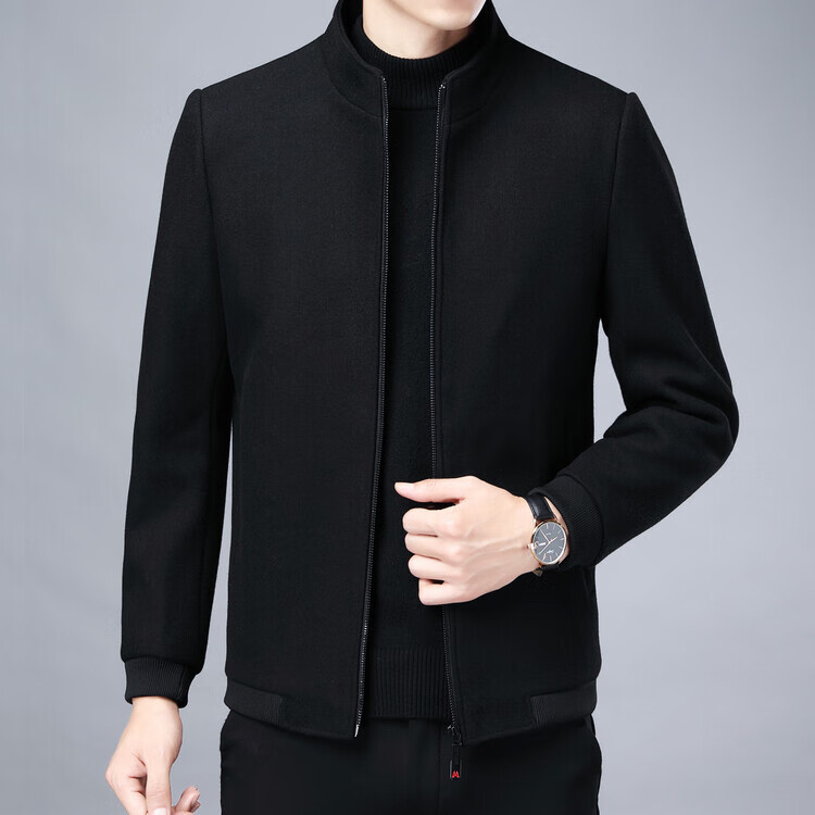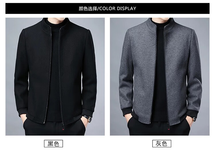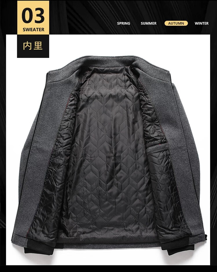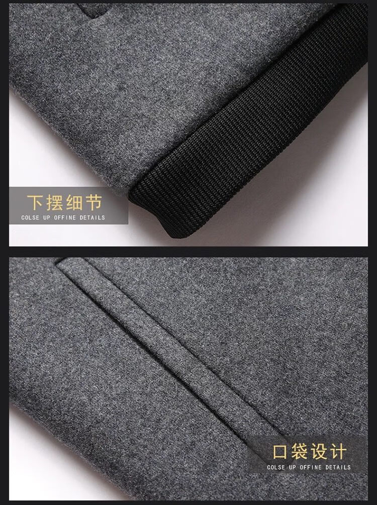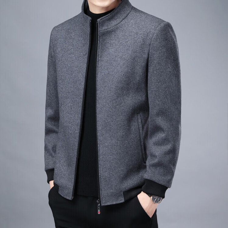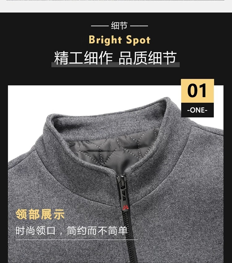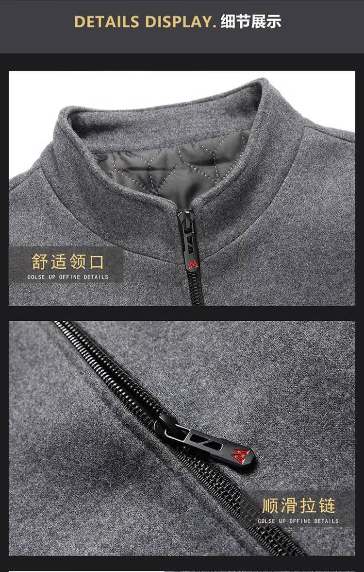 ROMON Men's Woolen Jacket Men's Autumn and Winter Business Casual Middle-aged Men's Stand-up Collar Cotton Woolen Executive Jacket Men Gray Thick L (Recommended 115-135Jin Jin equals 0.5 kg)