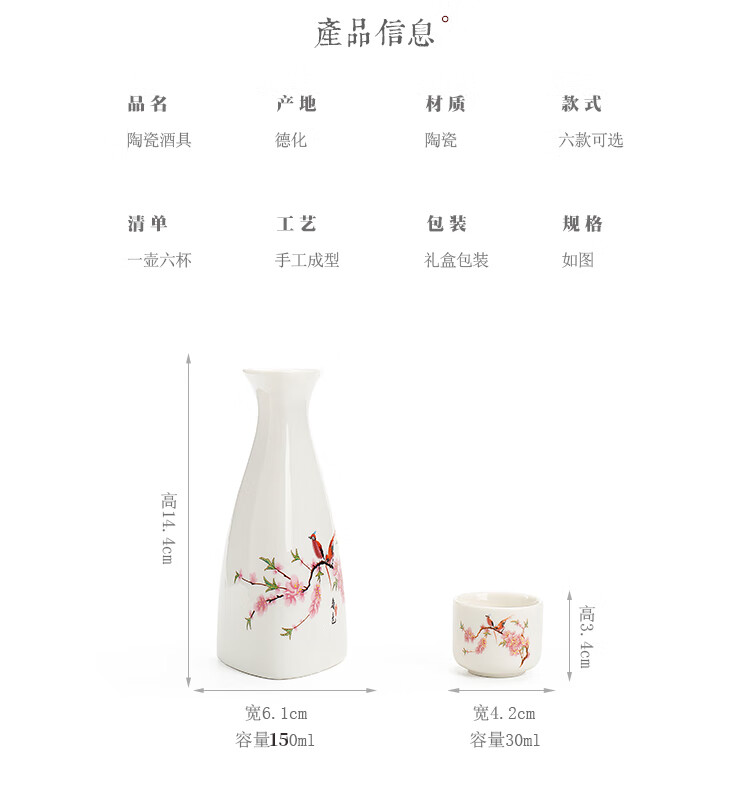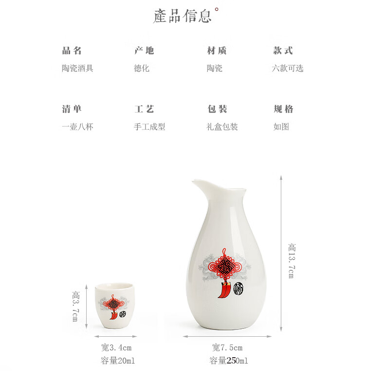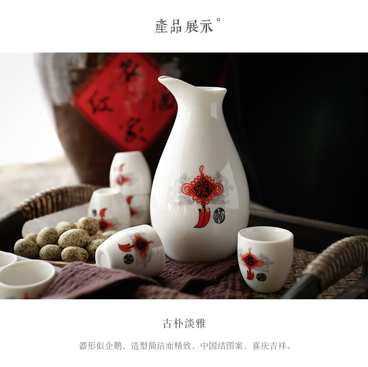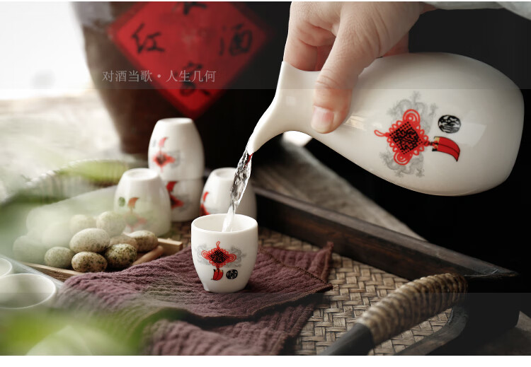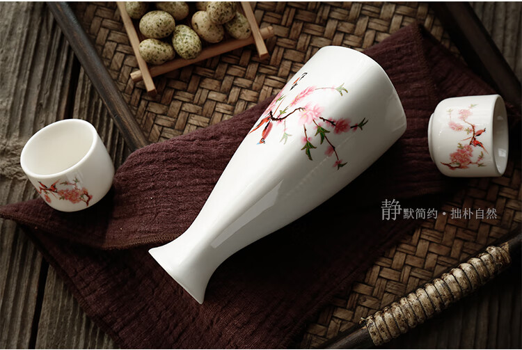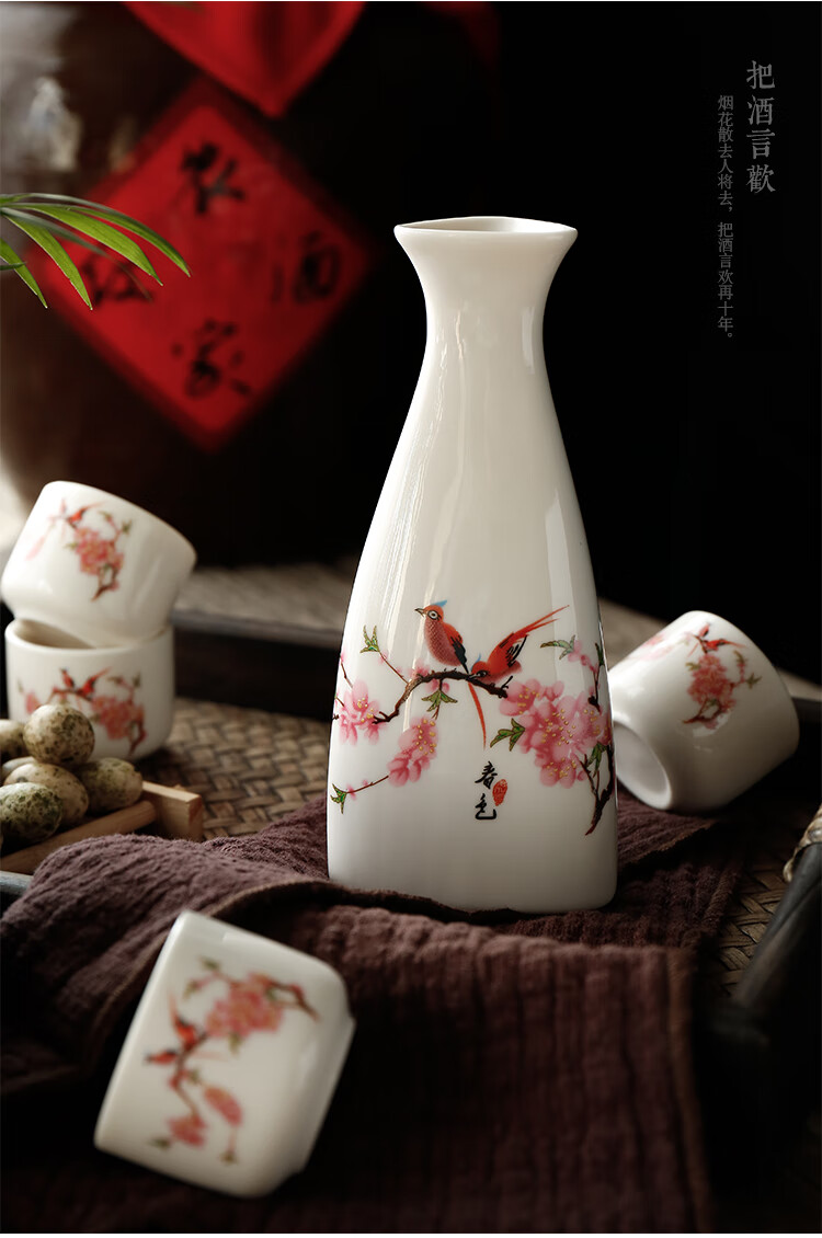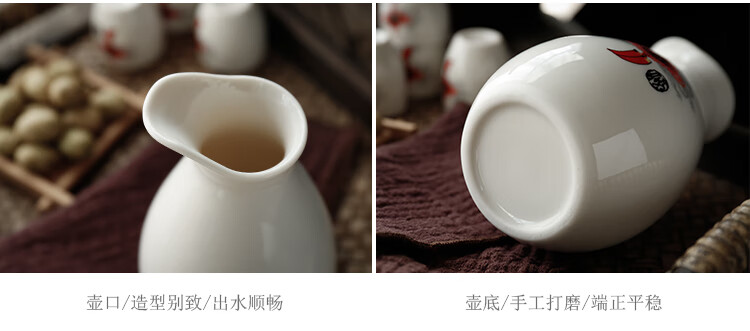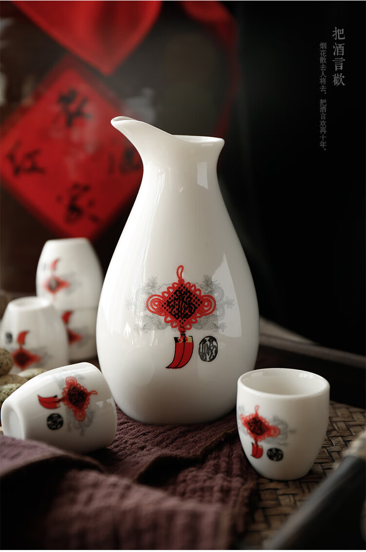 Molosun hot wine warming jug antique wine divider white wine household ceramic retro style hot wine set Chinese style household old-fashioned wine bottle 100ml Dragon and Phoenix Chengxiang