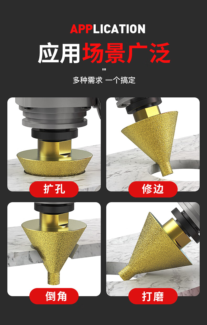 Huhao diamond chamferer marble hole opener floor tile punch drill bit angle grinder dry grinding head expander regular large size 50MM