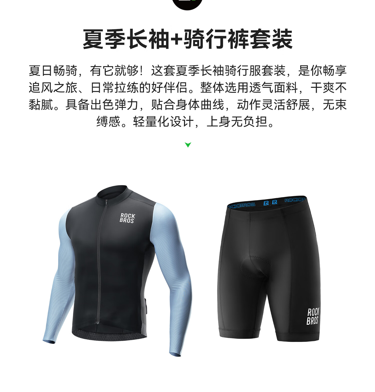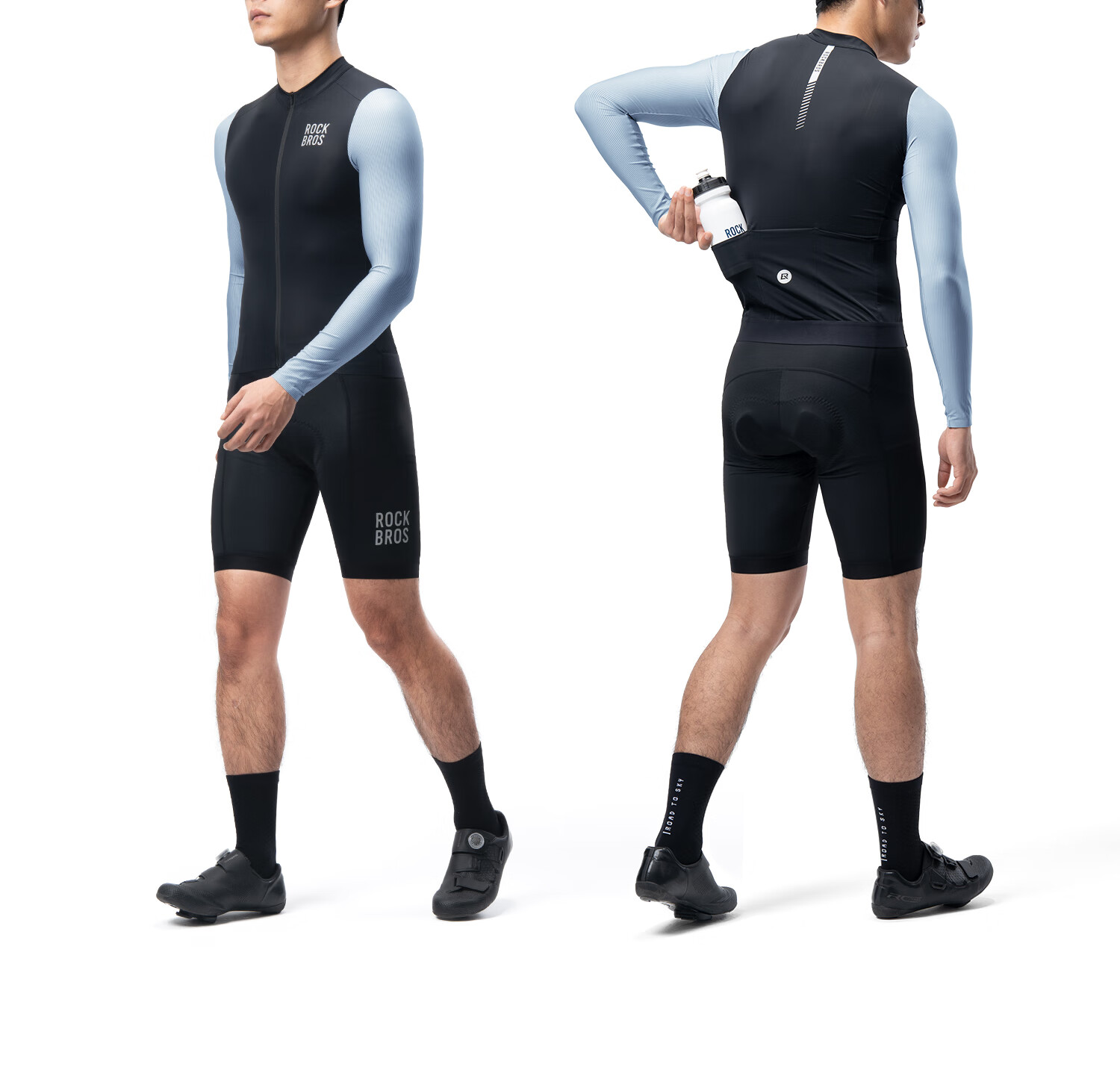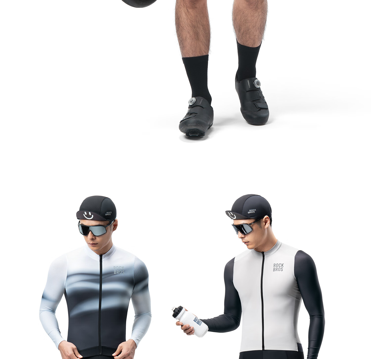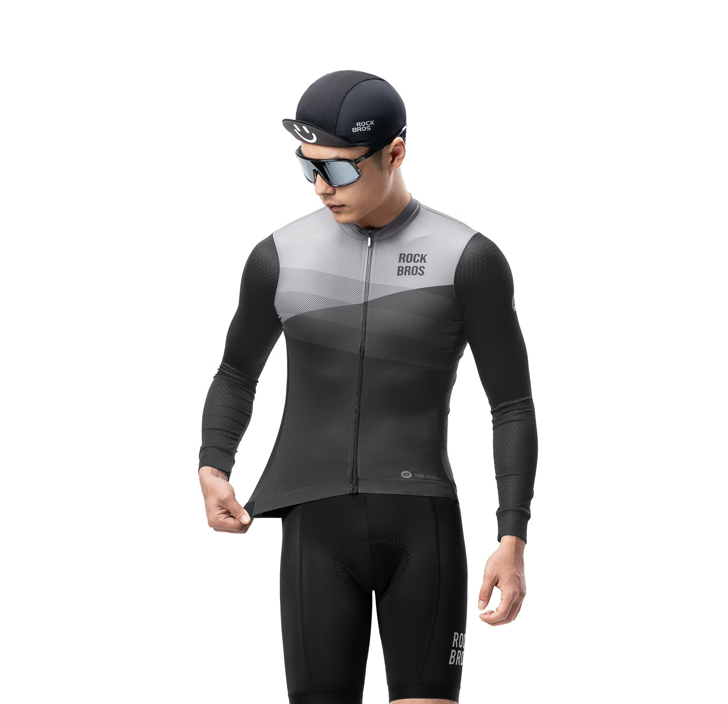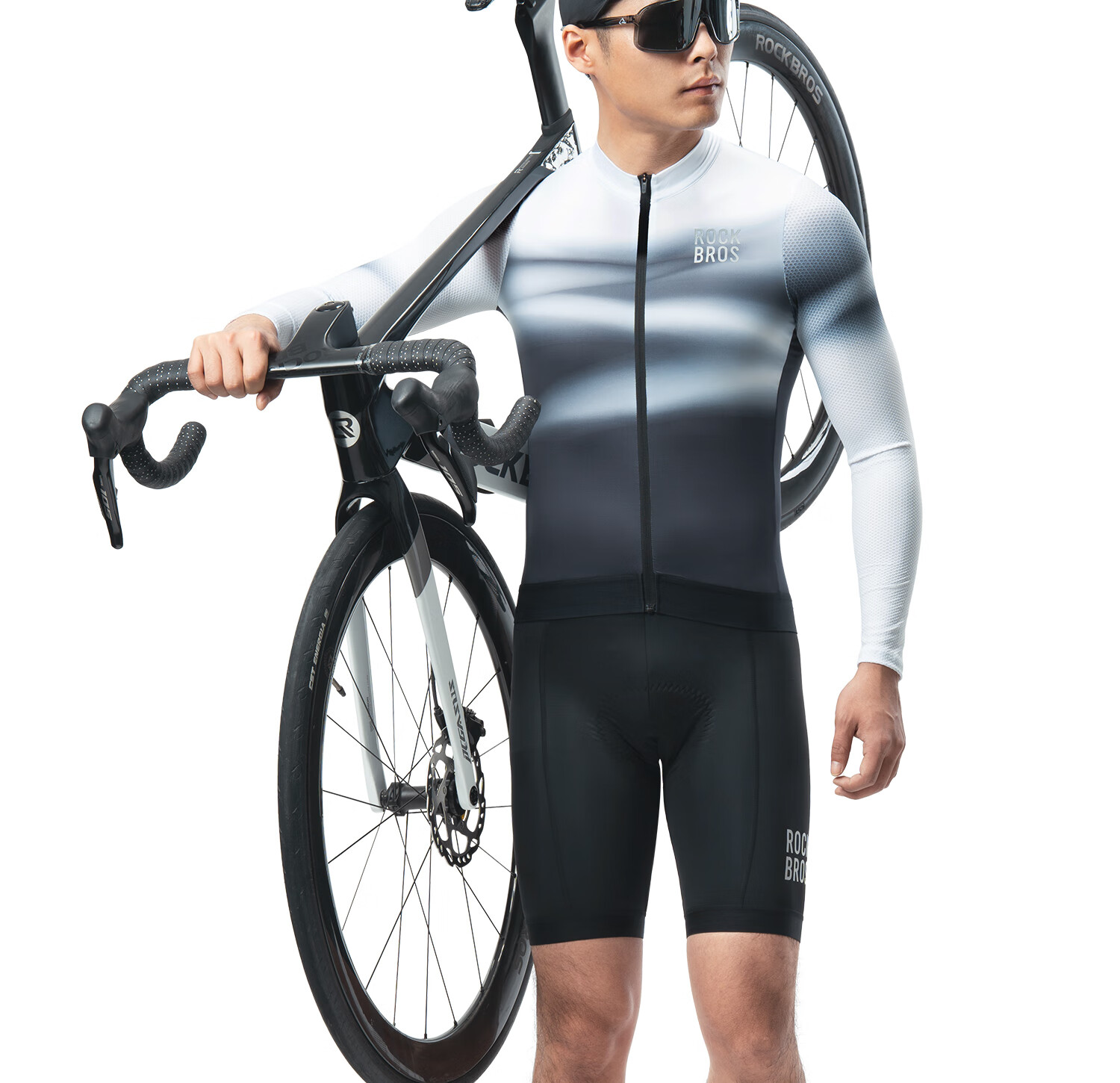Rock Brothers Cycling Jersey Long Sleeve Top Spring and Summer Men's Cycling Sports Mountain Road Cycling Clothing Breathable and Quick-Drying Black and White XL