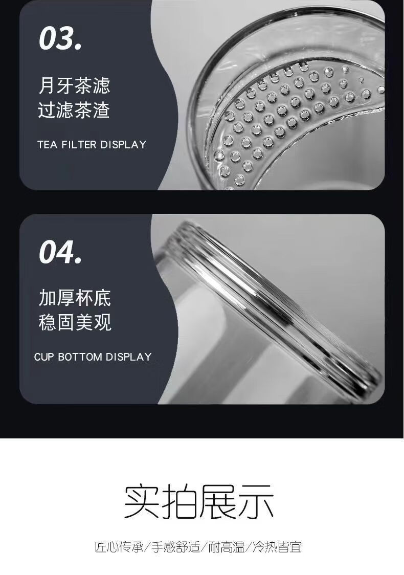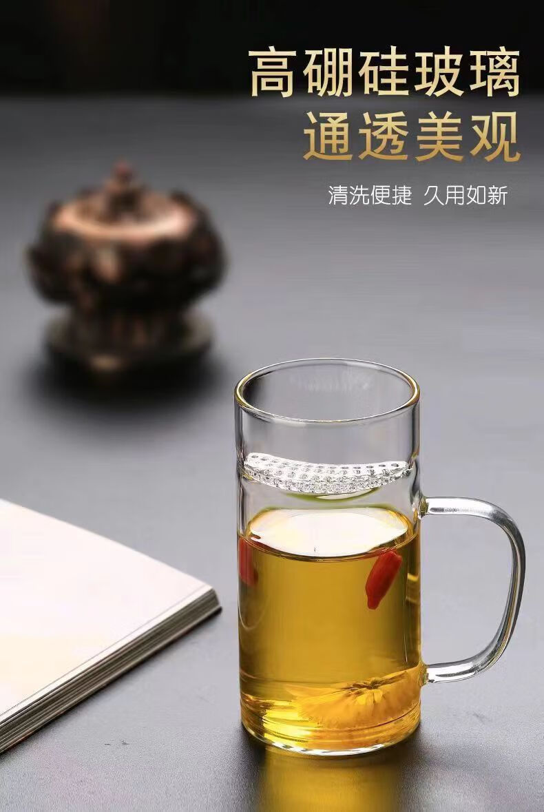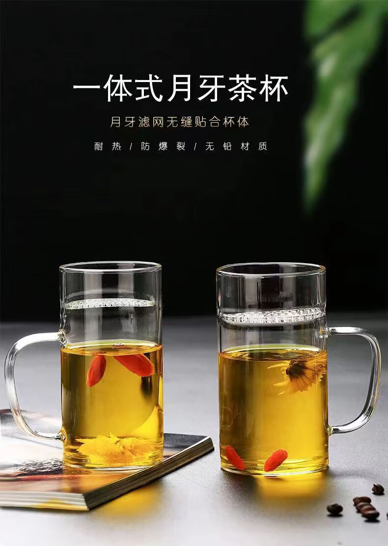 Crescent cup filter tea cup heat-resistant glass tea water separation cup green tea cup tea set 300ml