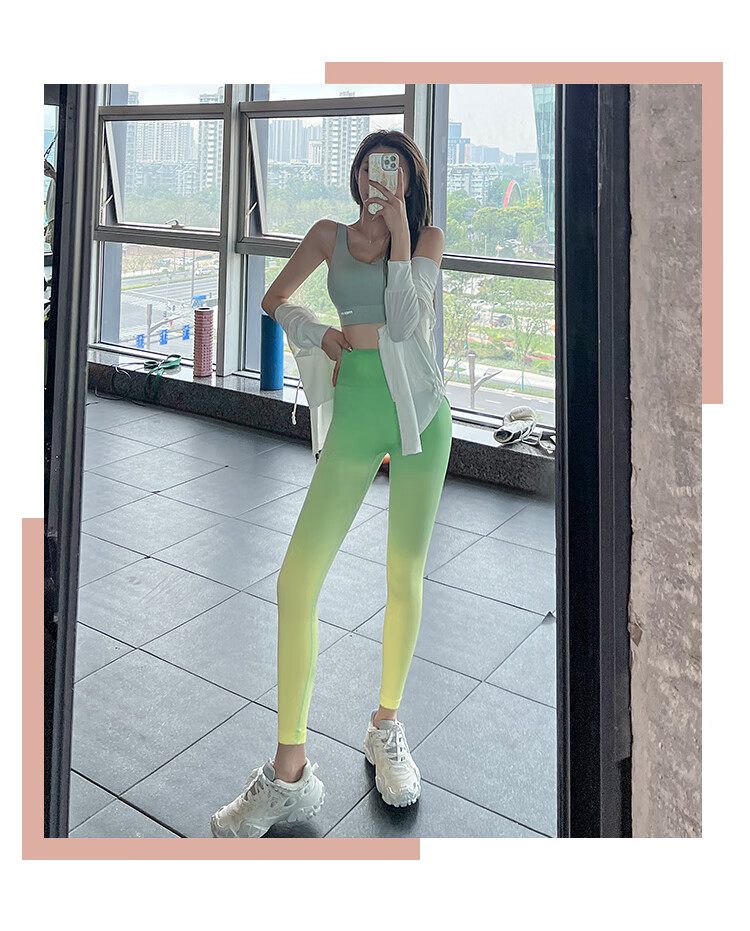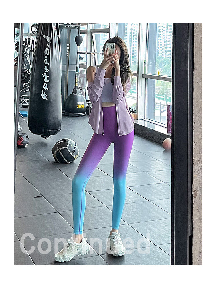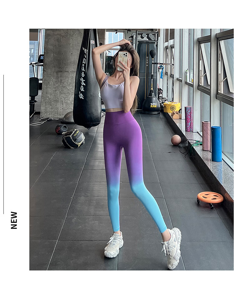 LULU CENTURY Gradient Pilates Training Fitness Pants Women's High Waist Peach Butt Lift Running Sports Quick-Drying Breathable Yoga Pants Dark Brown One Size S