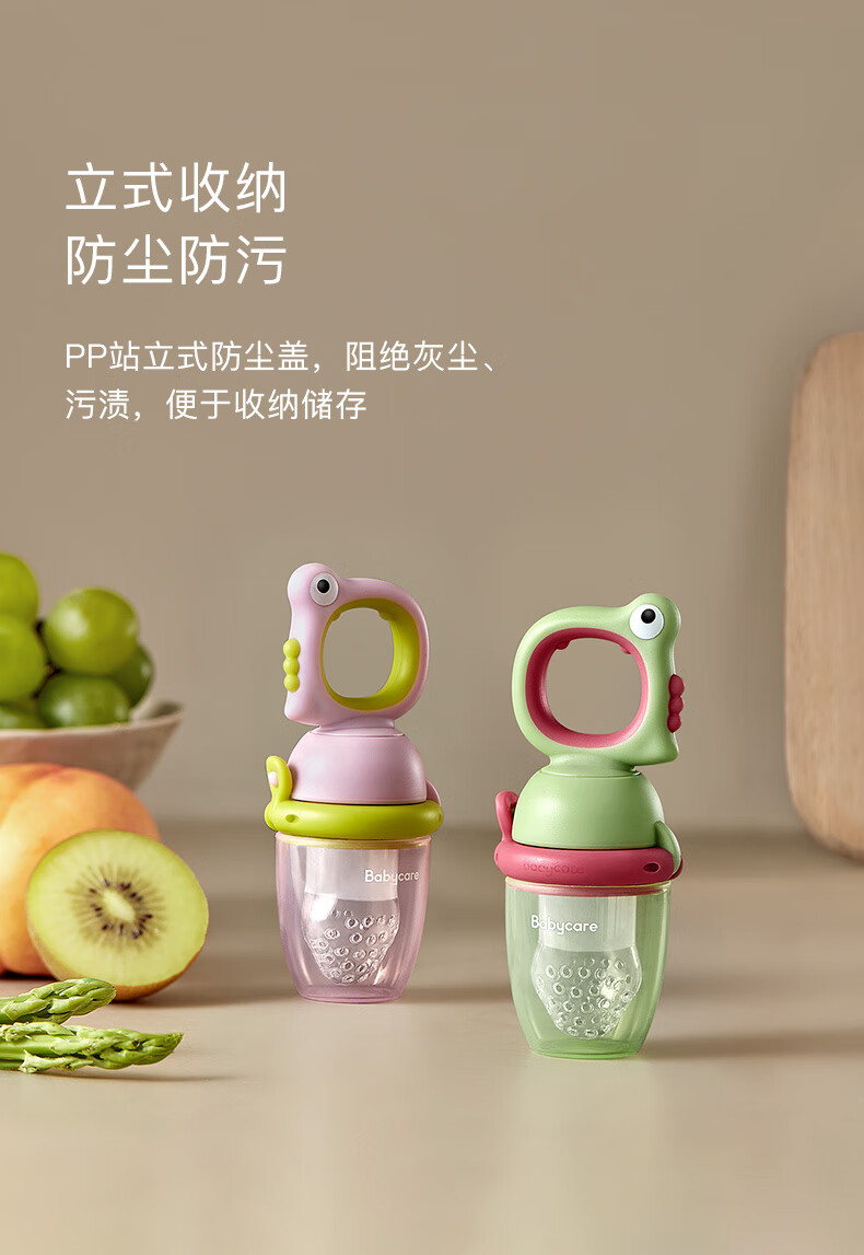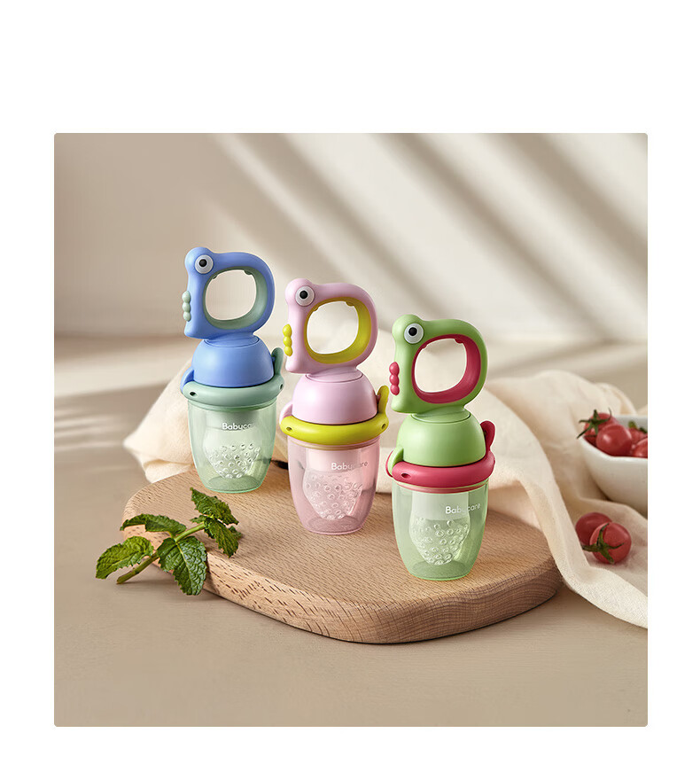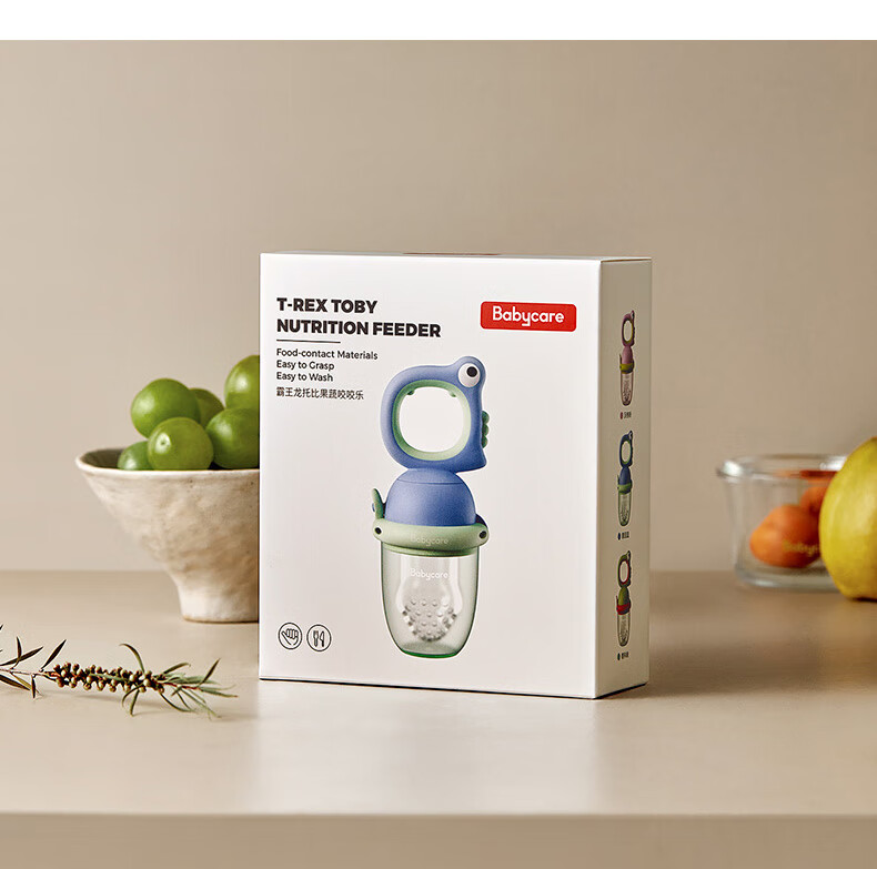 Bc babycare baby food fruit and vegetable bite bag silicone toy teething baby eating fruit food supplement dinosaur style 1 pack moyin blue