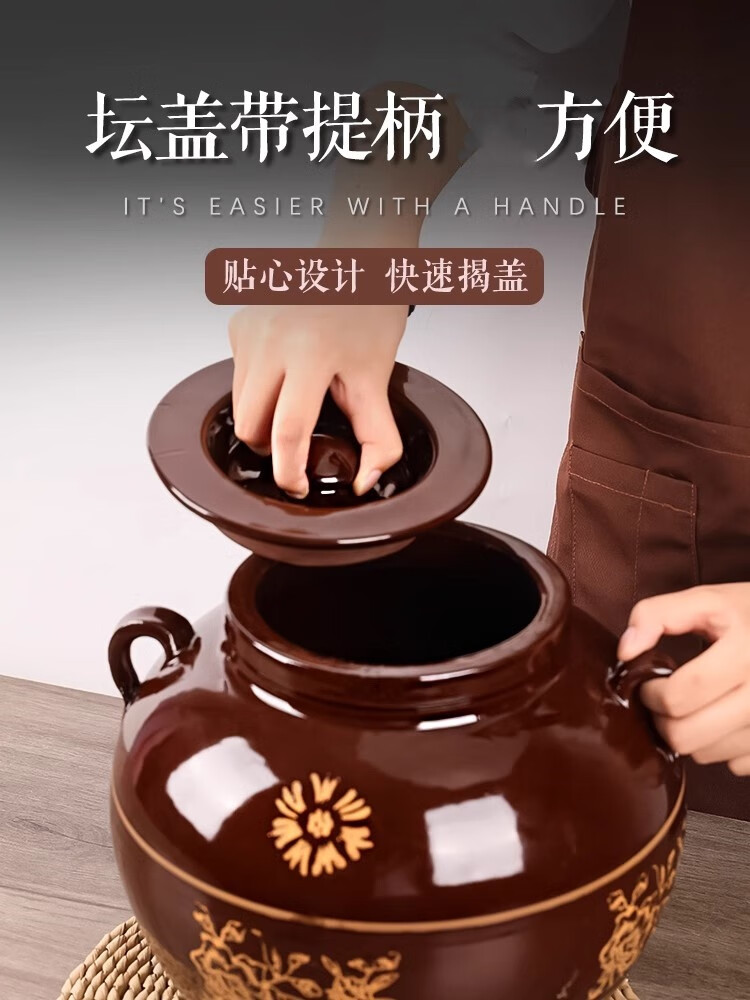 Yue Yi lard jar household oil jar ceramic jar with lid kitchen high temperature resistant earthenware old-fashioned earthenware jar chili oil jar oil cylinder 4Jin Jin is equal to 0.5 kg water oil tank