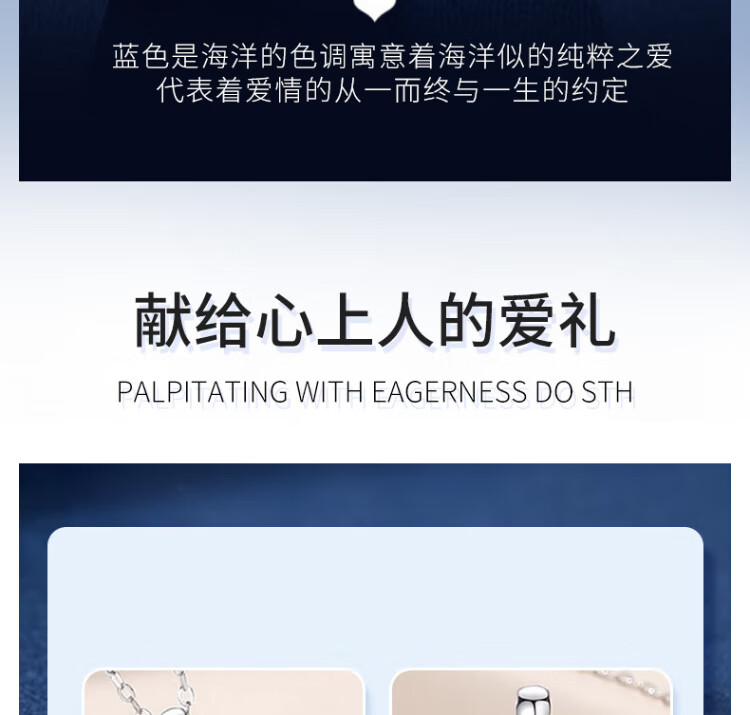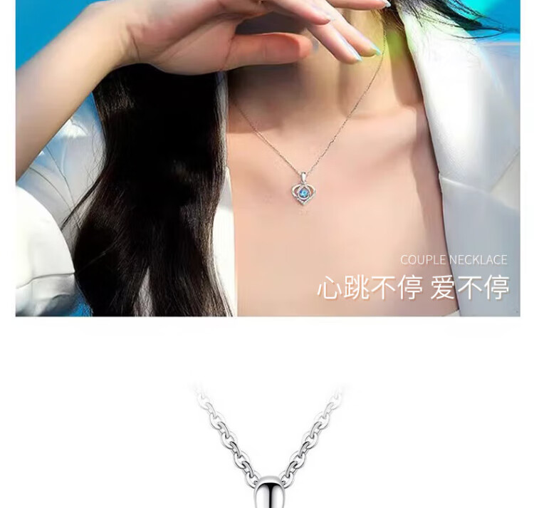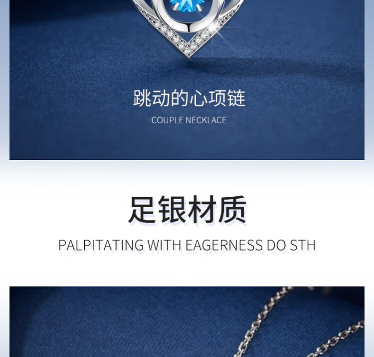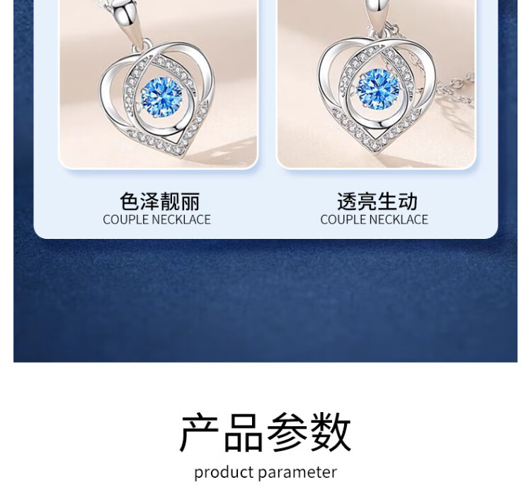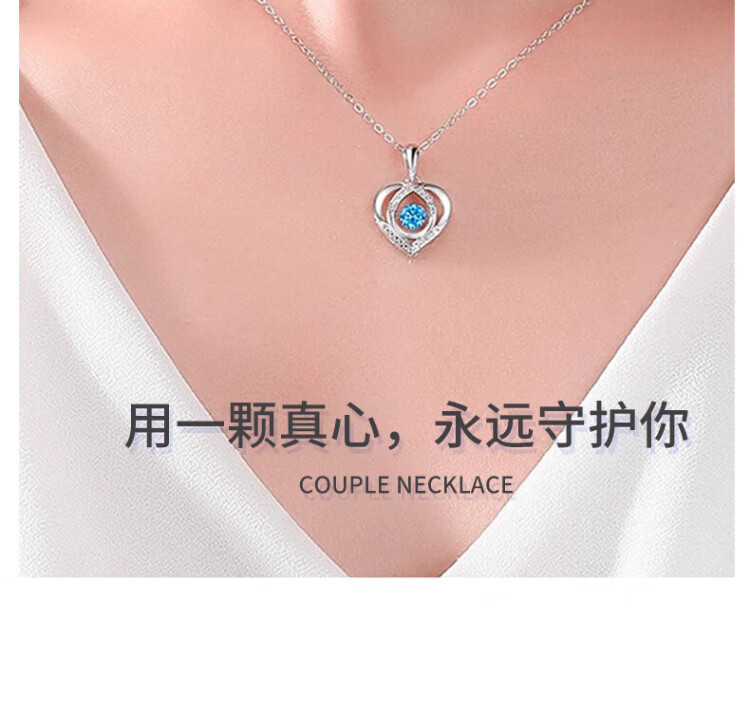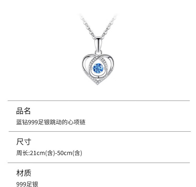 Miao Yijia sterling silver 999 pure silver necklace for women 2025 new birthday gift women's pendant silver jewelry high-end jewelry accessories blue diamond 999 pure silver beating heart necklace with certificate 1 rose box exquisite gift box