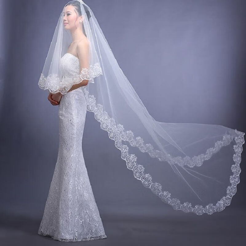 Zi Jiafu Proposal Veil Bridal Main Veil Large Lace Photography Main Wedding Dress Internet Celebrity Super Fairy Long Tail Wedding White Lace White 2.5-3 meters