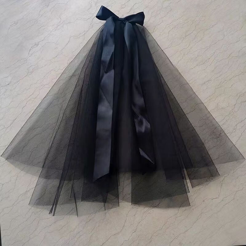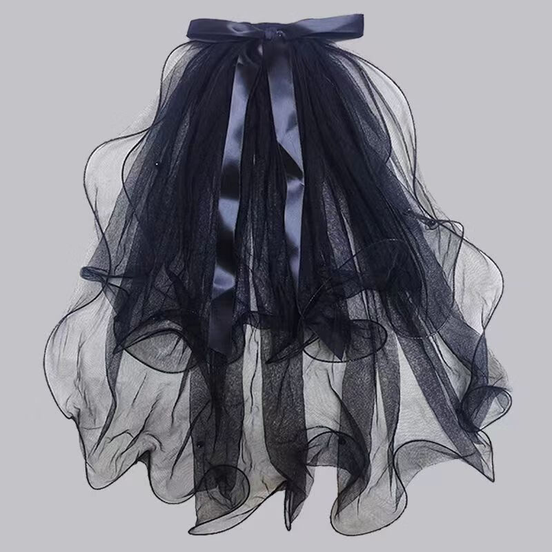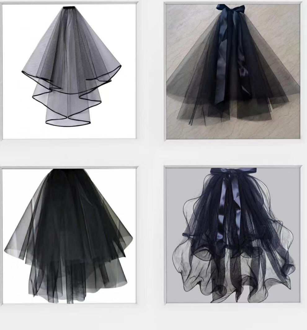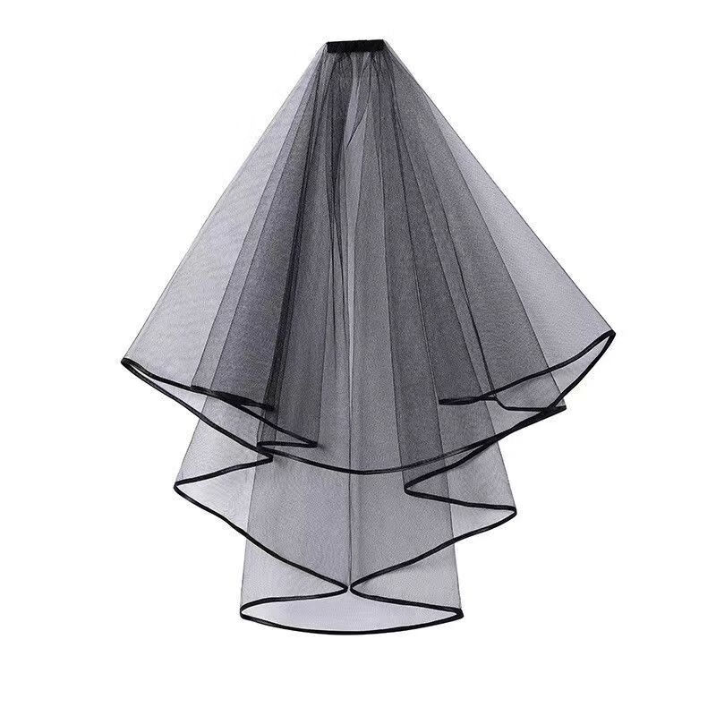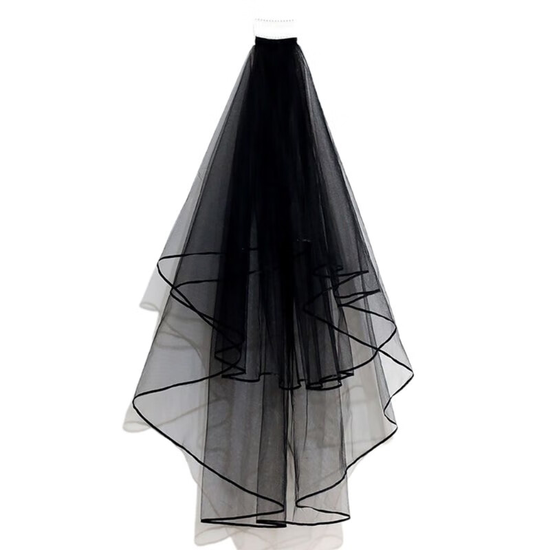 Zi Jiafu Proposal Veil Bridal Main Veil Black Veil Halloween Photo Short Retro Dark Korean Hairdress Photo Cos Black Hemming Style with Hair Comb About 77cm