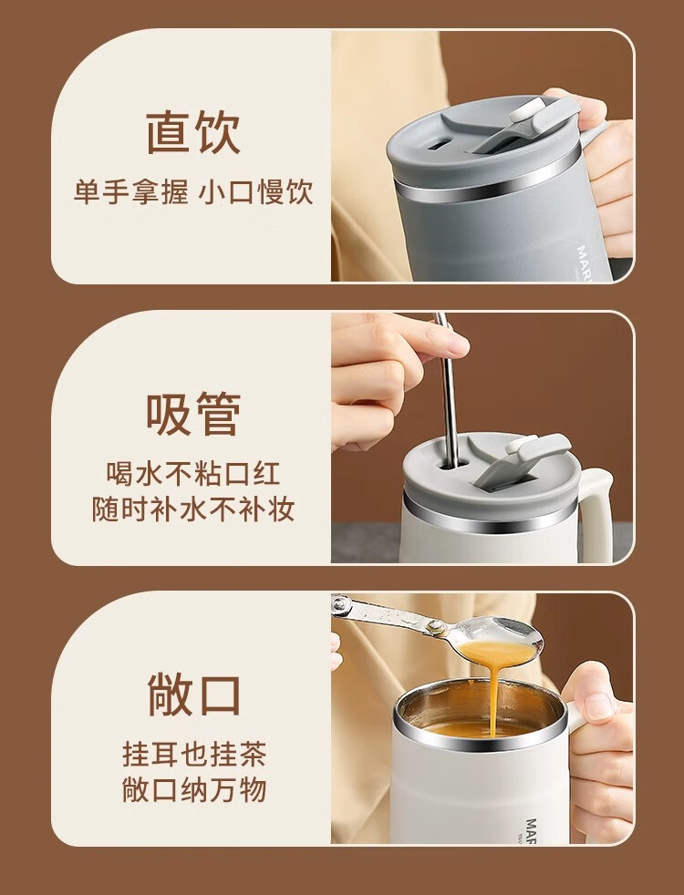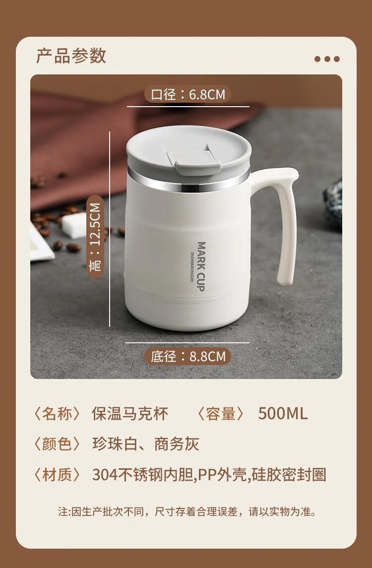 Xuanye 2025 thermos cup stainless steel mug with spoon office women's coffee cup home men's drinking cup with lid mug with spoon 500ml