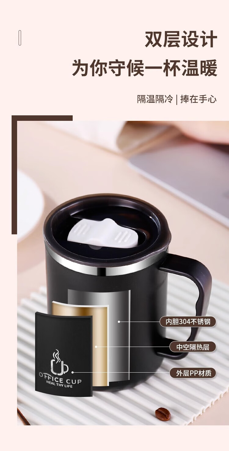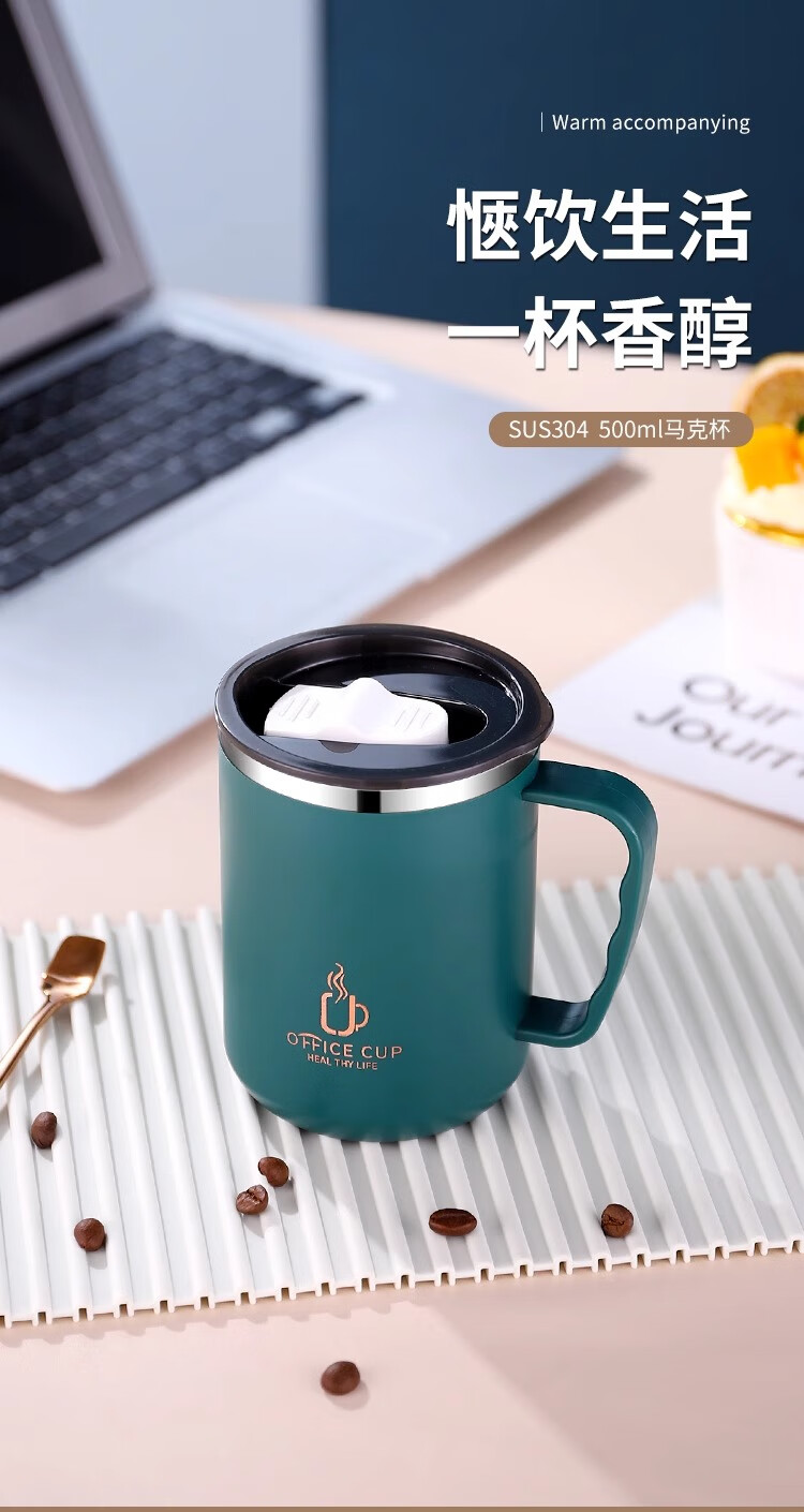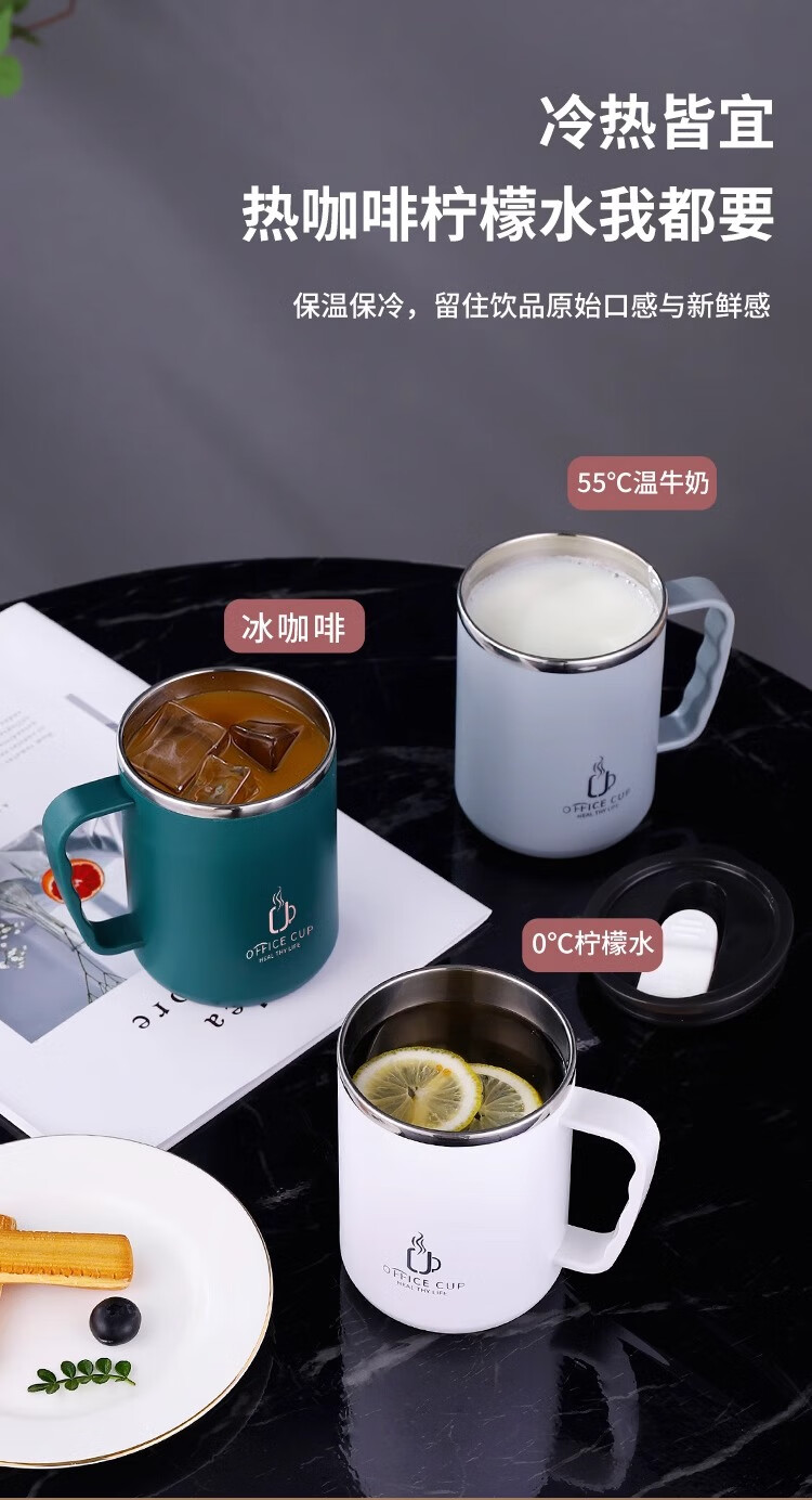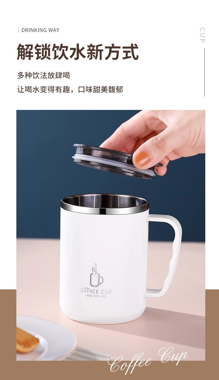 Xuanye stainless steel office cup mug with lid for boys high-looking tea cup thermal coffee cup water cup light gray 1 piece 500ml