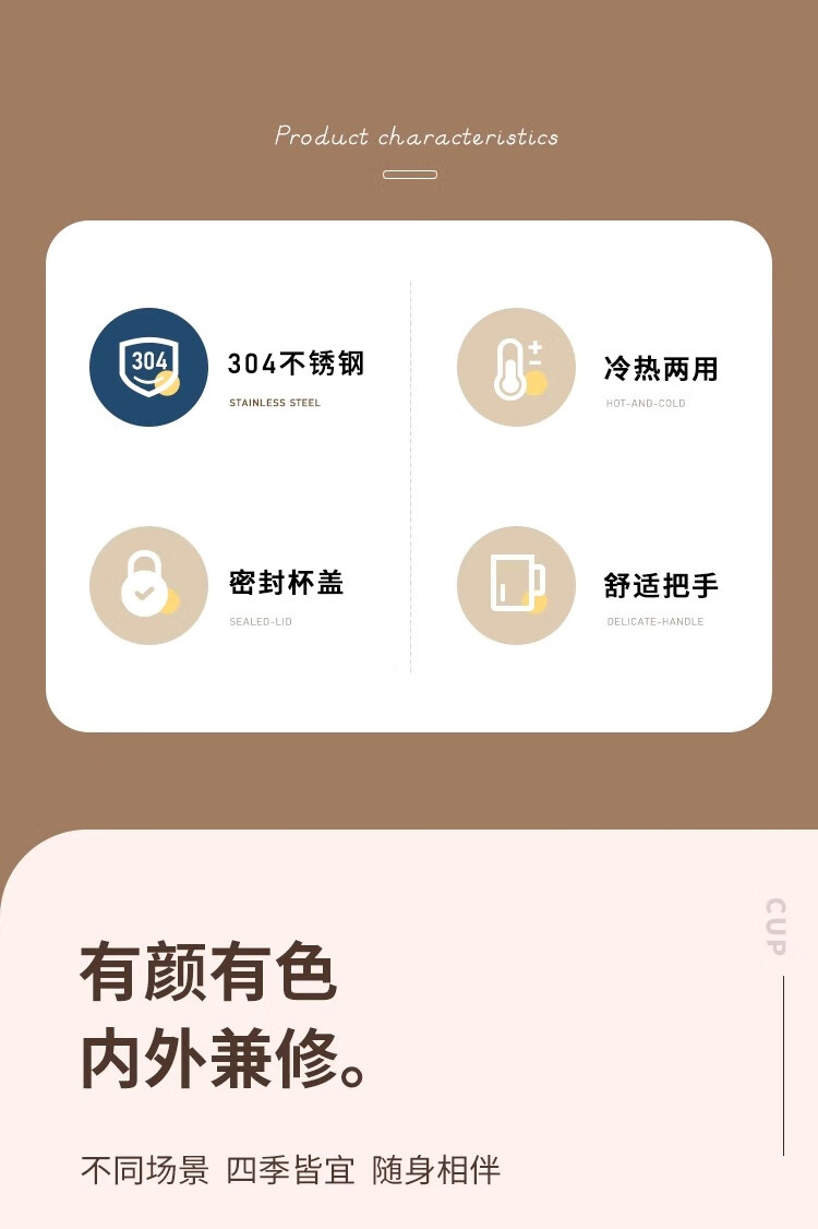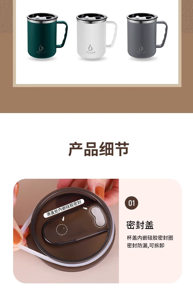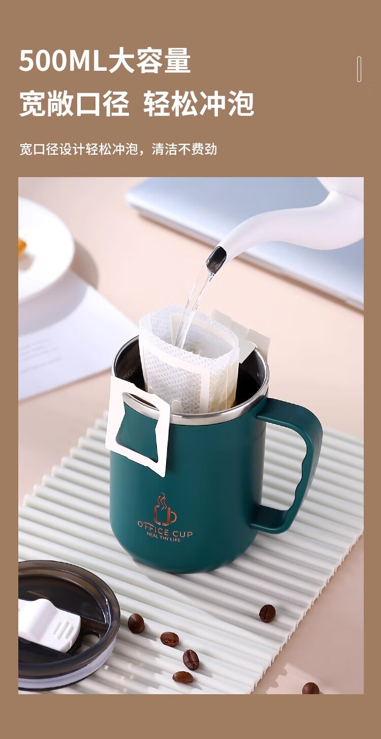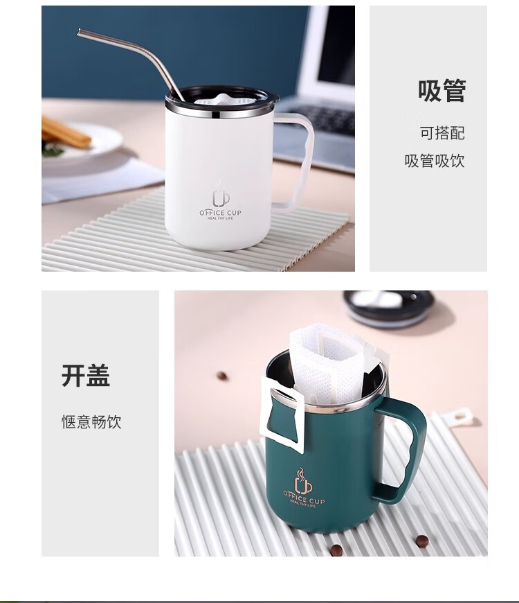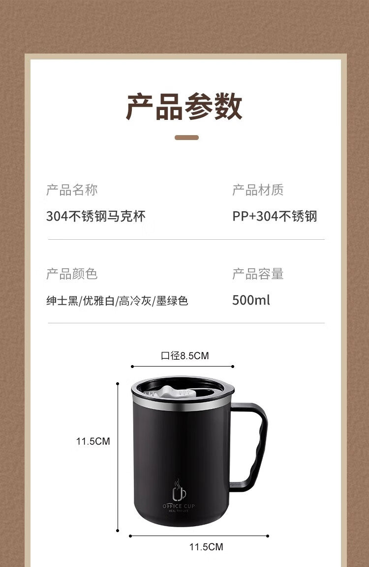 Xuanye stainless steel office cup mug with lid for boys high-looking tea cup thermal coffee cup water cup light gray 1 piece 500ml