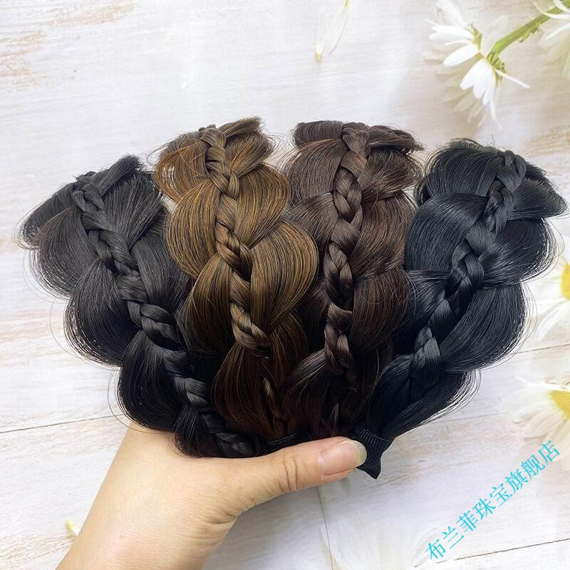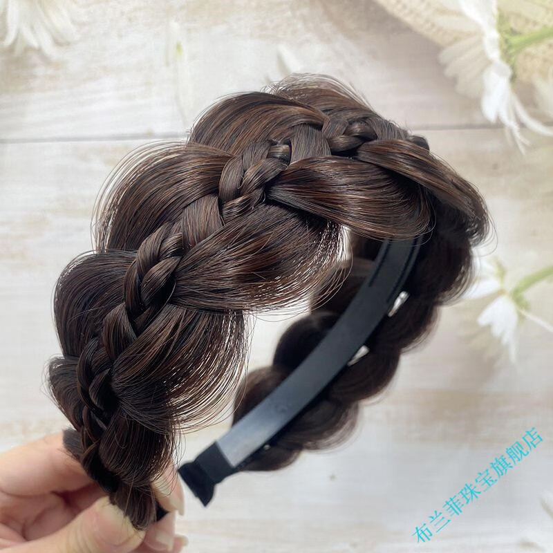 Xinheming Covers White Hair Hairband Wide Hairband Reveals Hair Multiple Broadsides Twist Fish Stock Braid Wig Women's Hair Cover Hairpin Dark Brown