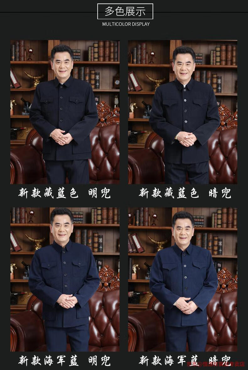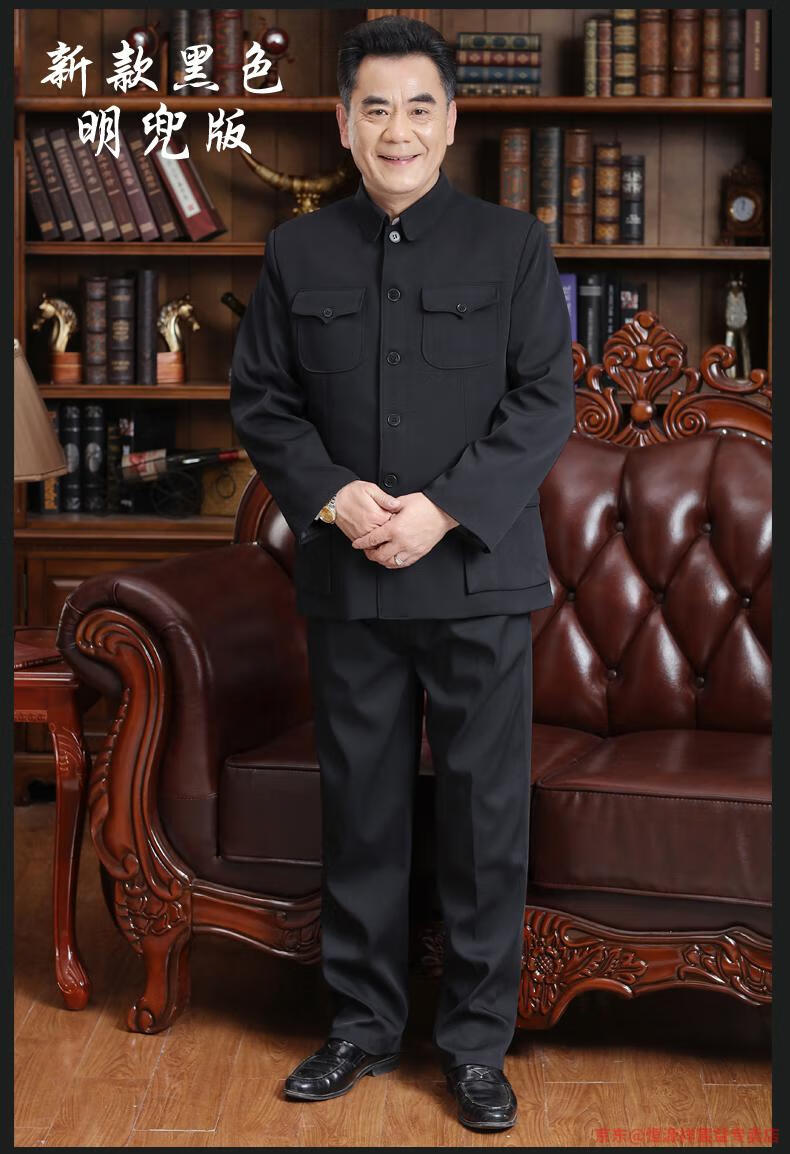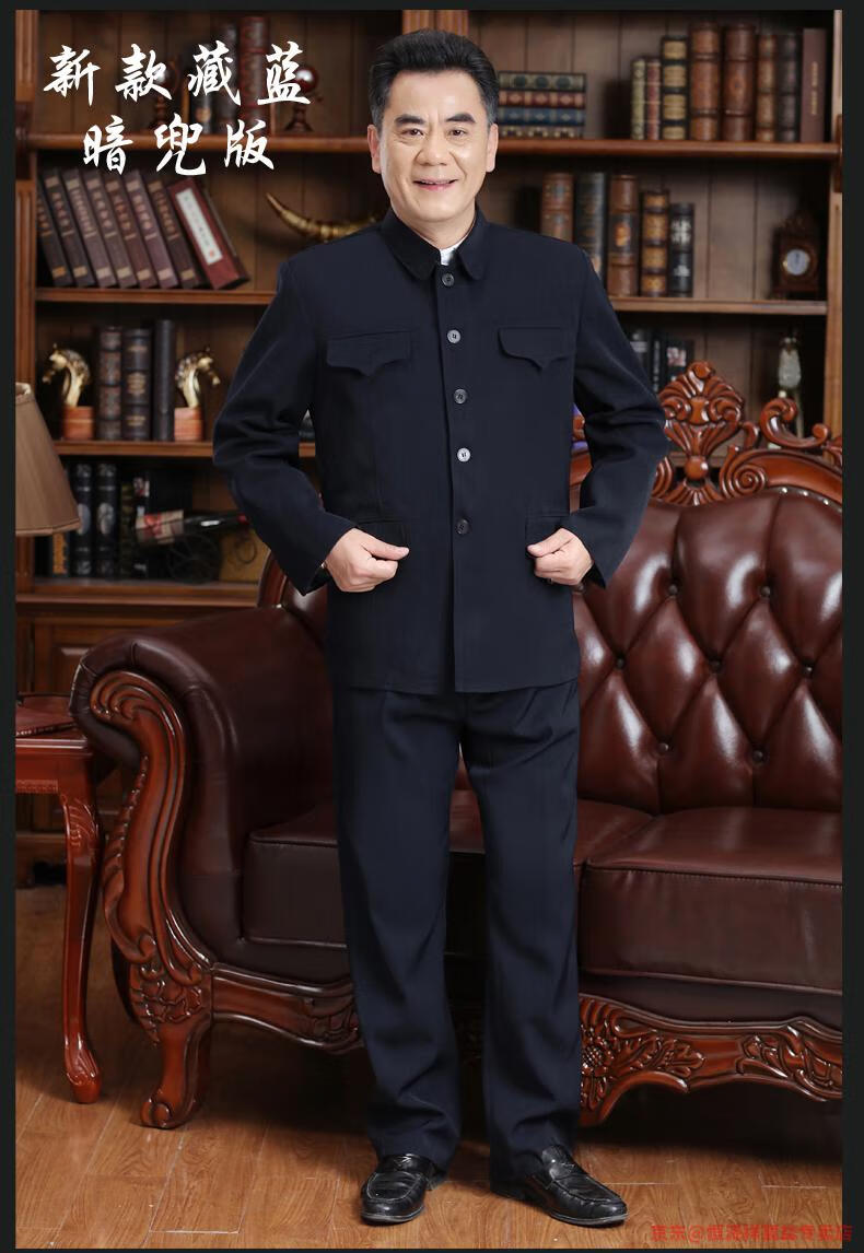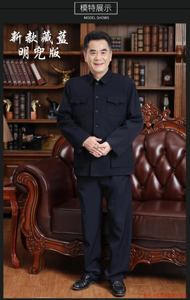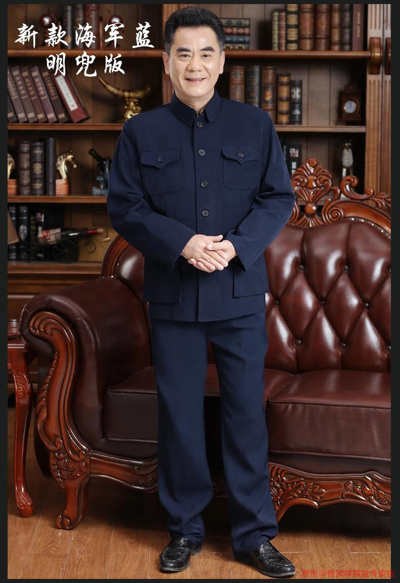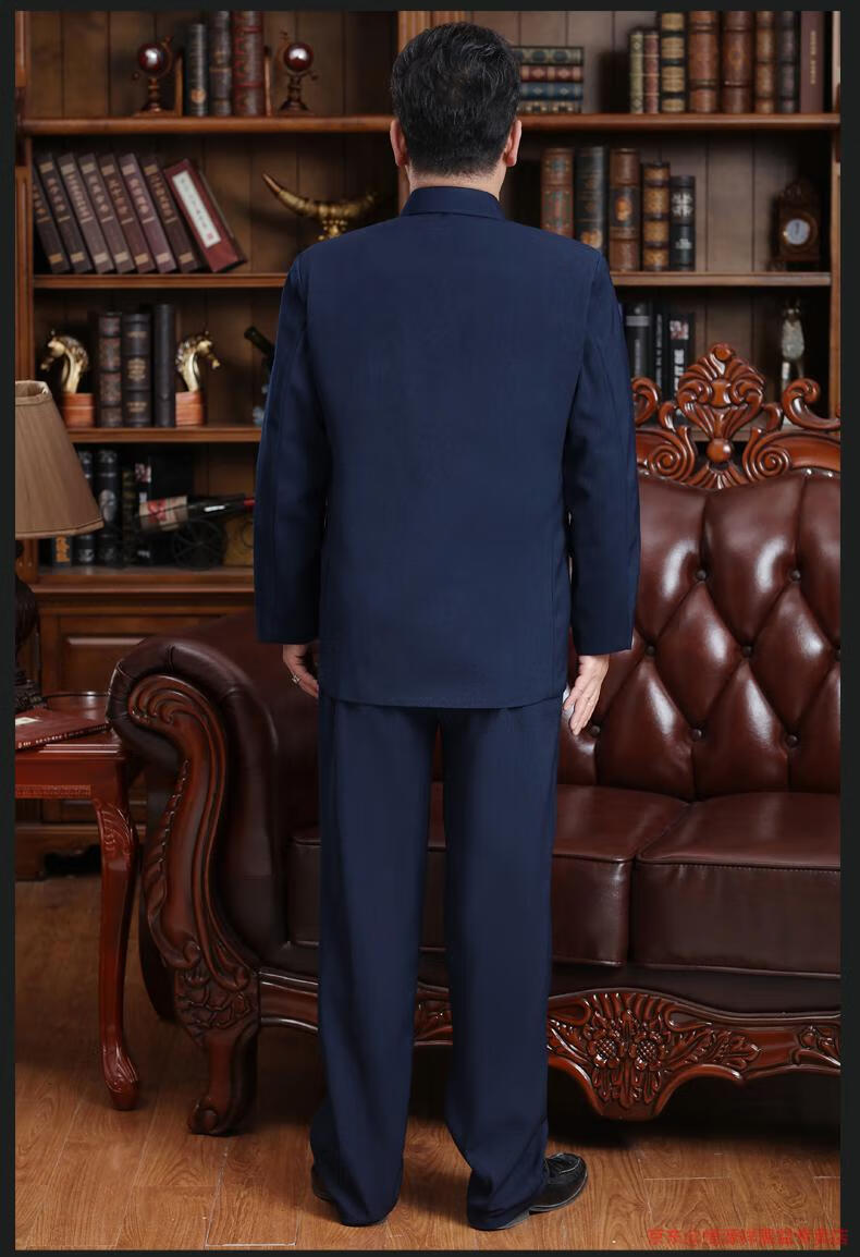 Hengyuanxiang Chinese tunic suit for men, middle-aged and elderly suit tops, spring, summer and autumn, Tang suit for the elderly, dad and grandpa suit, senior citizen tunic suit, regular navy blue Ming pocket top, regular pair, 4XL 190 yards 170-190 Jin Jin is equal to 0.5 kg