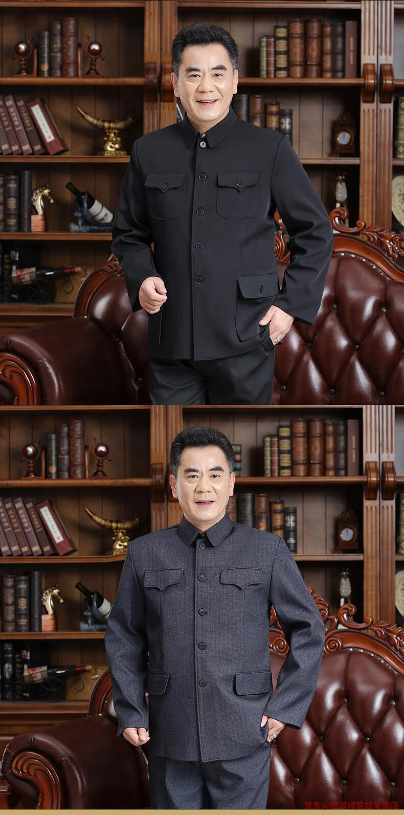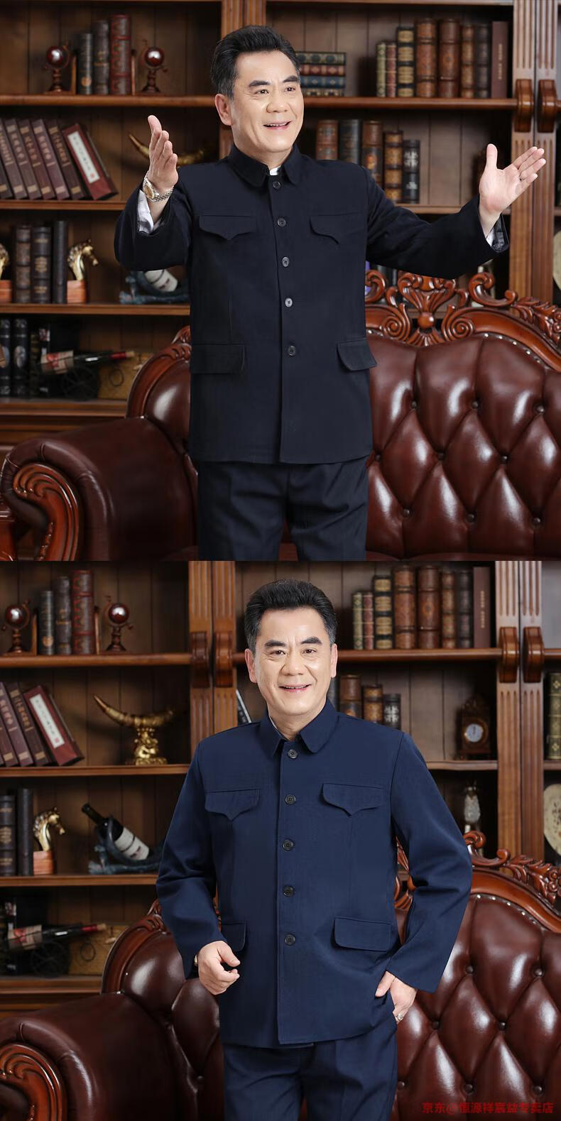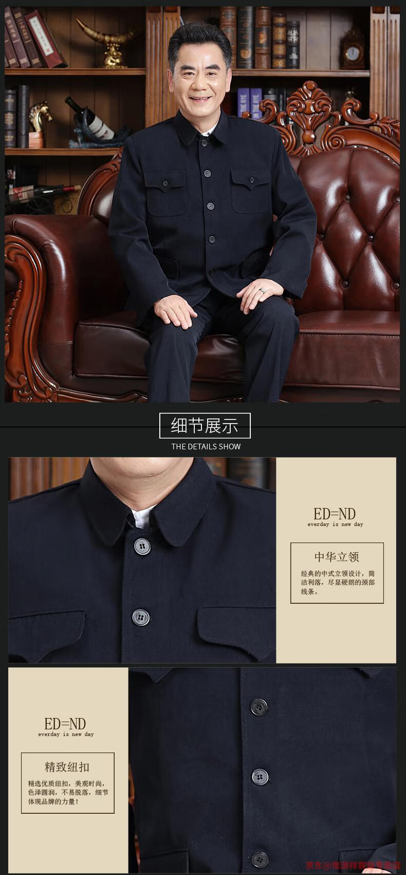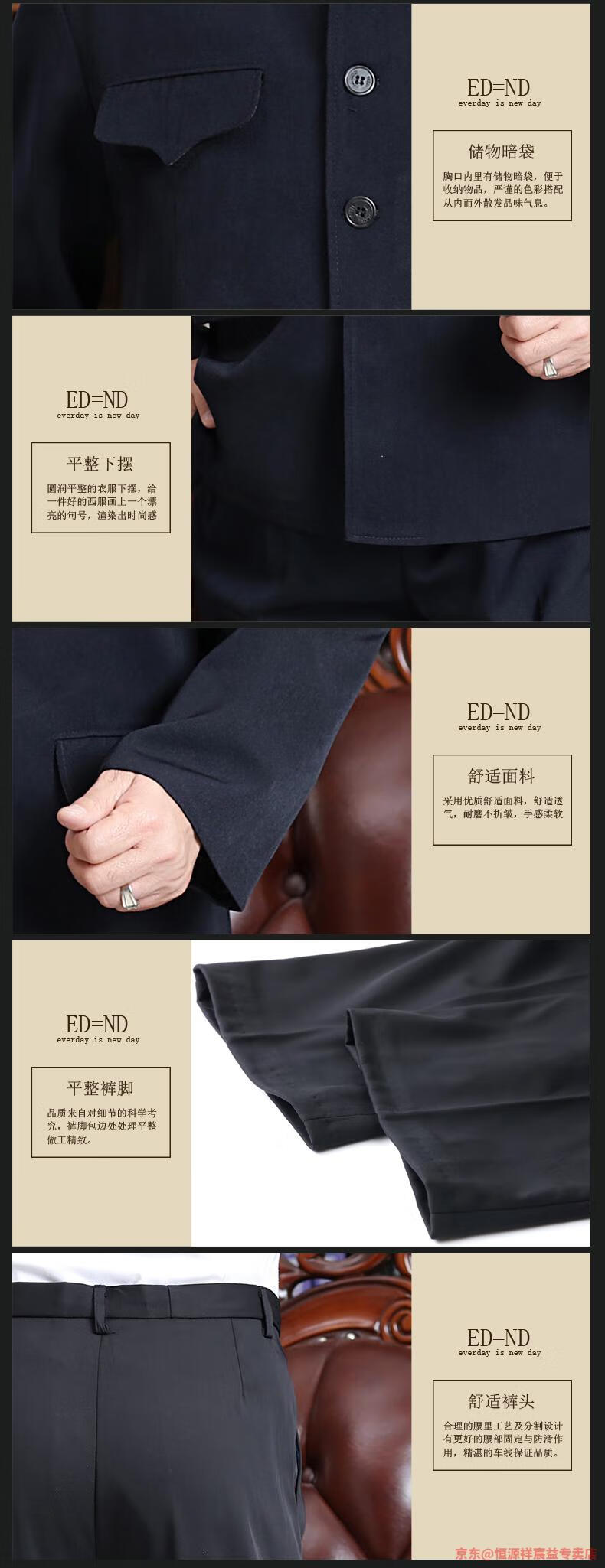 Hengyuanxiang Chinese tunic suit for men, middle-aged and elderly suit tops, spring, summer and autumn, Tang suit for the elderly, dad and grandpa suit, senior citizen tunic suit, regular navy blue Ming pocket top, regular pair, 4XL 190 yards 170-190 Jin Jin is equal to 0.5 kg