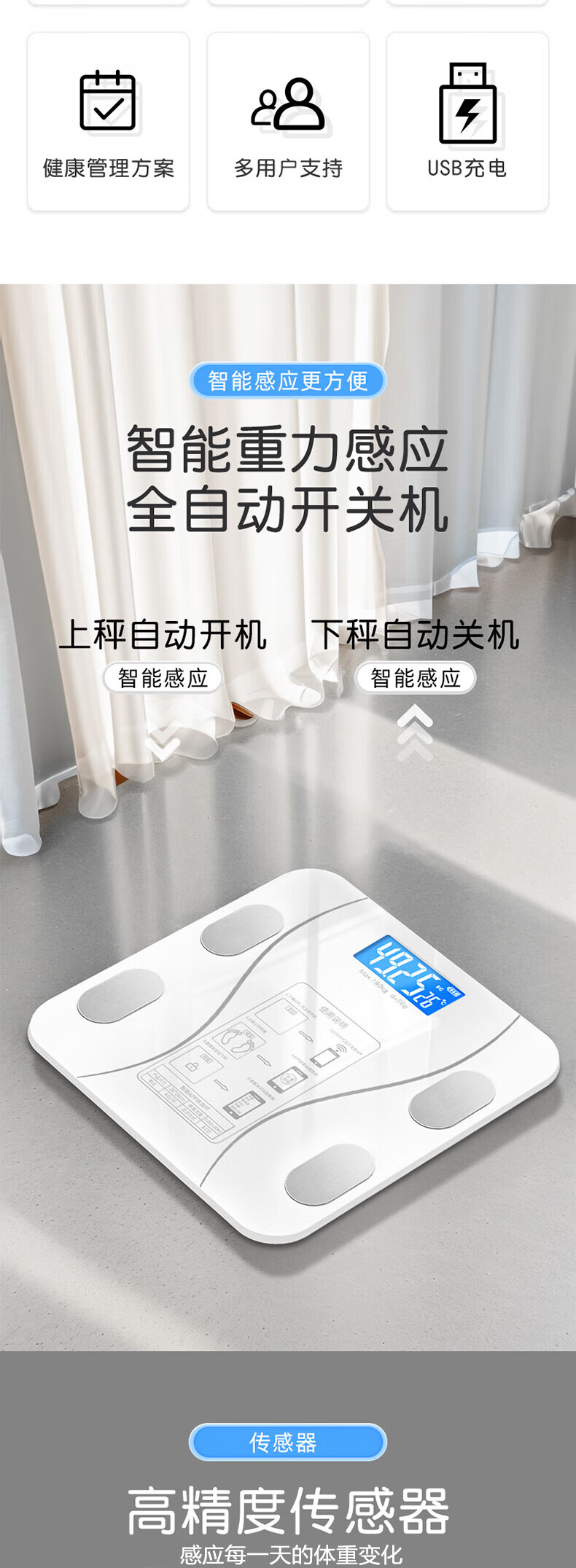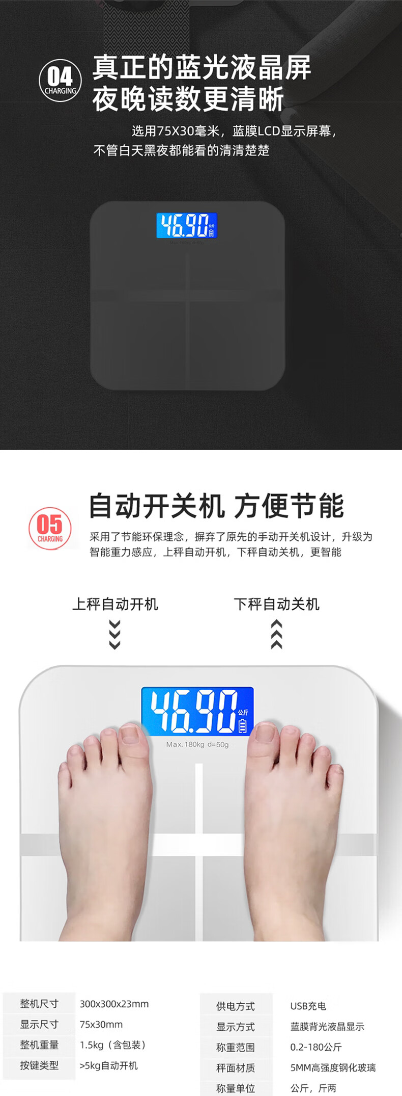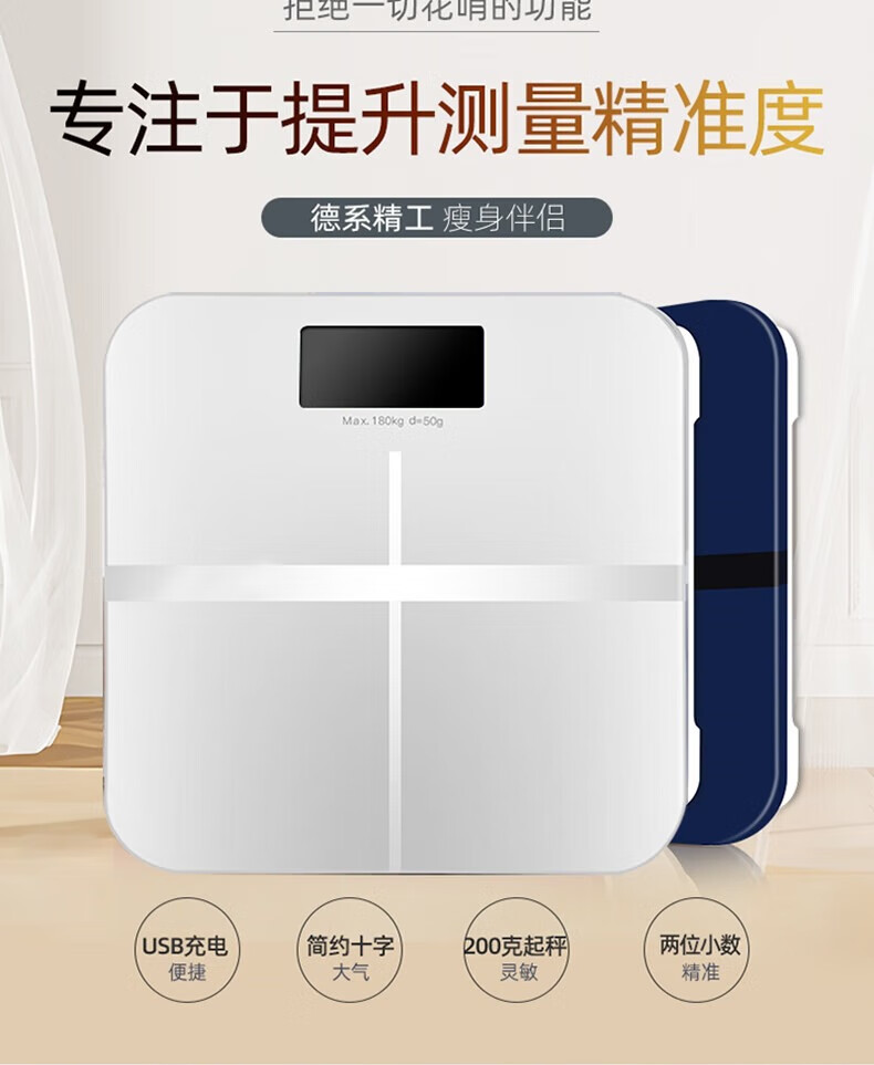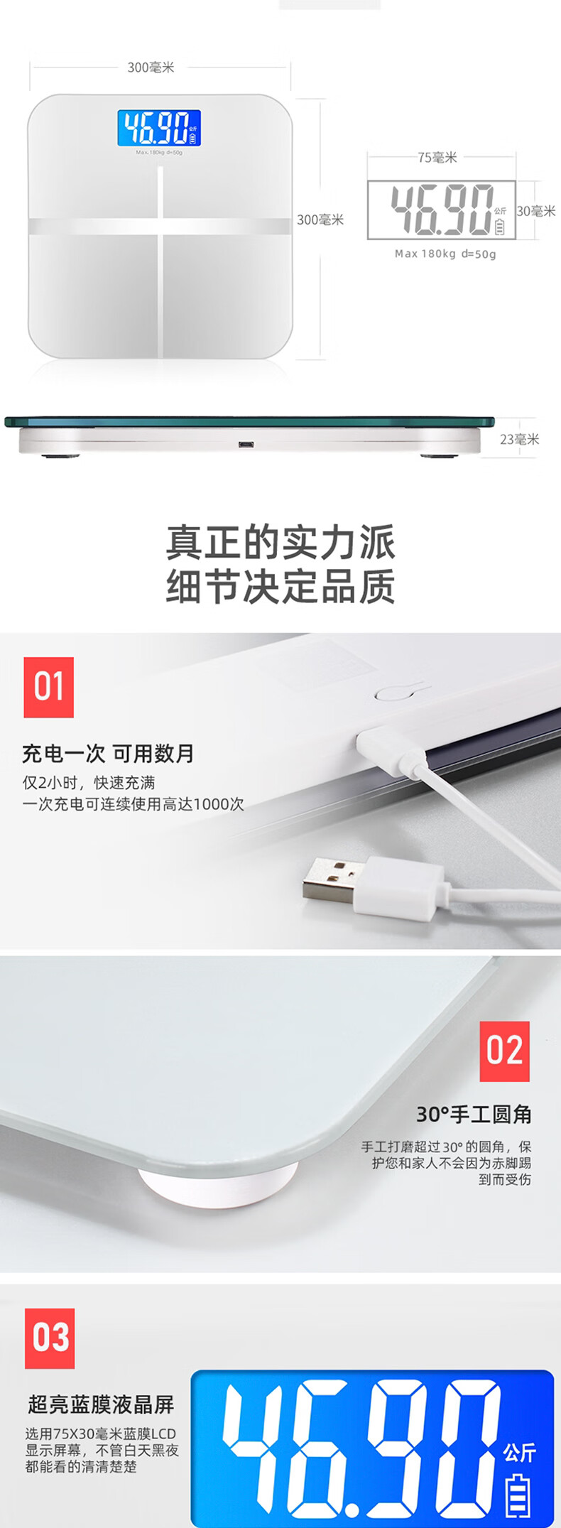 Bai Qixin body fat scale electronic scale weight scale all-in-one scale weighing home health scale weight loss Mother's Day gift weight scale body fat scale for boys and girls USB rechargeable weight scale weight scale silver gray