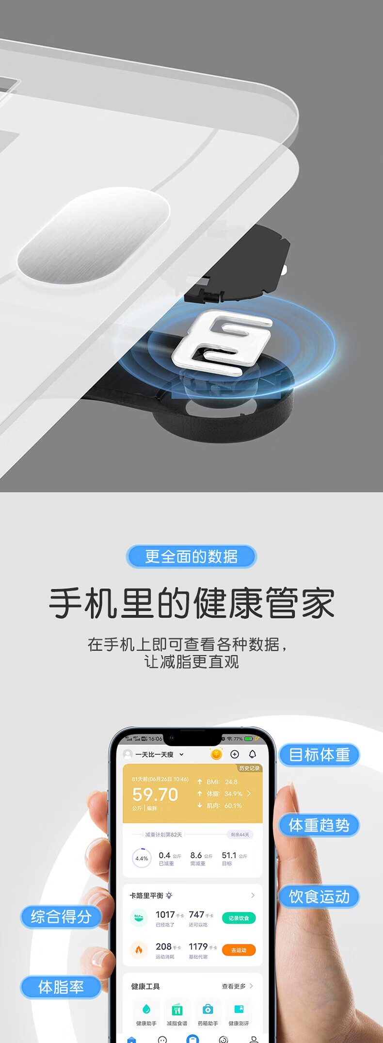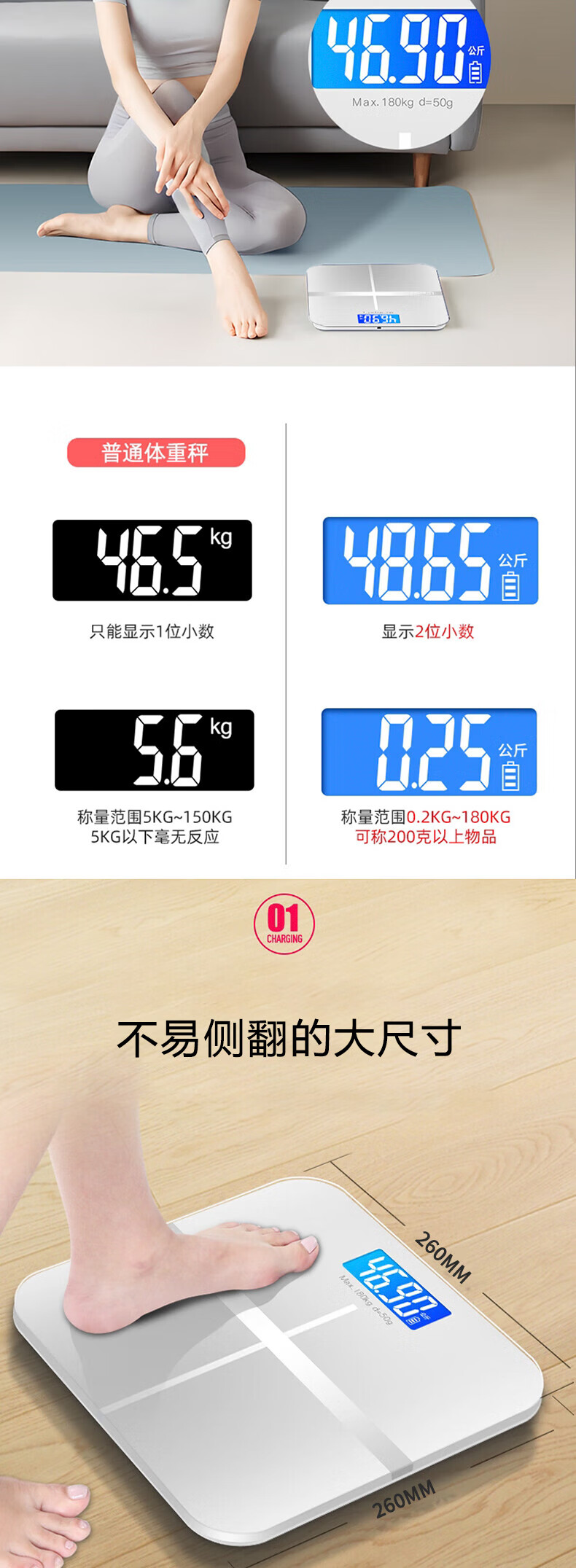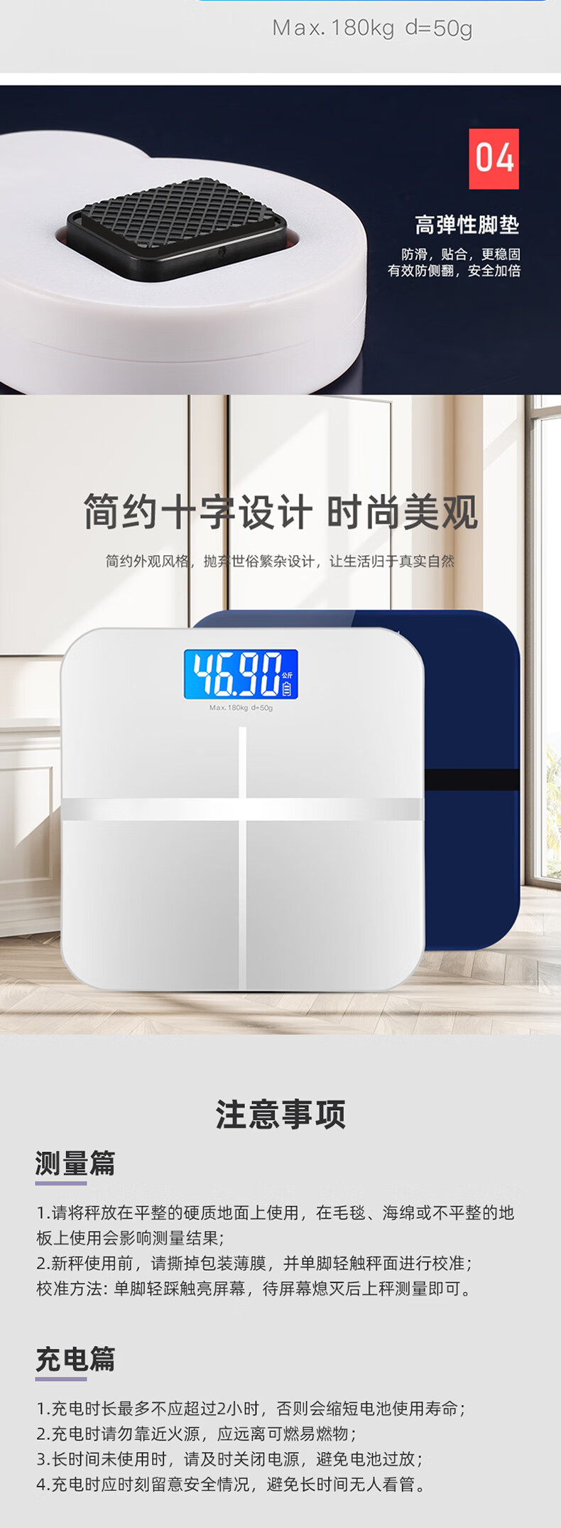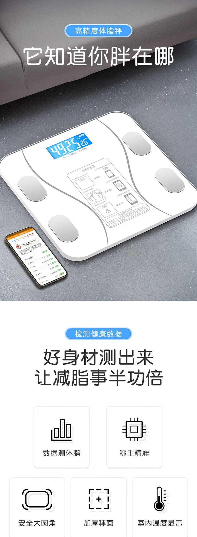 Bai Qixin body fat scale electronic scale weight scale all-in-one scale weighing home health scale weight loss Mother's Day gift weight scale body fat scale for boys and girls USB rechargeable weight scale weight scale silver gray
