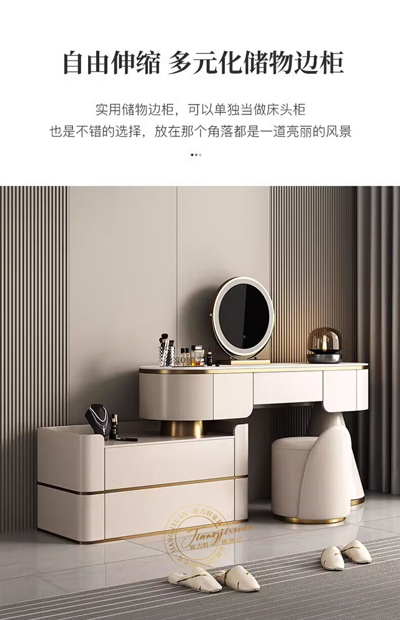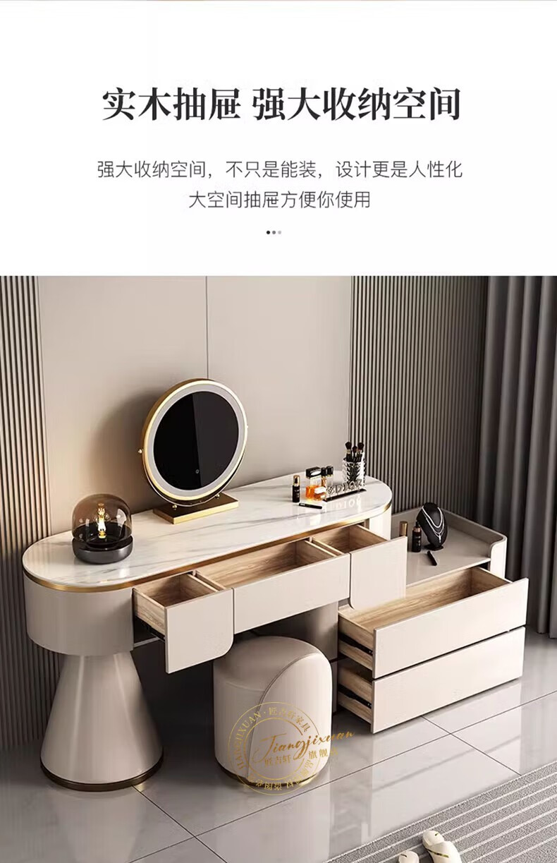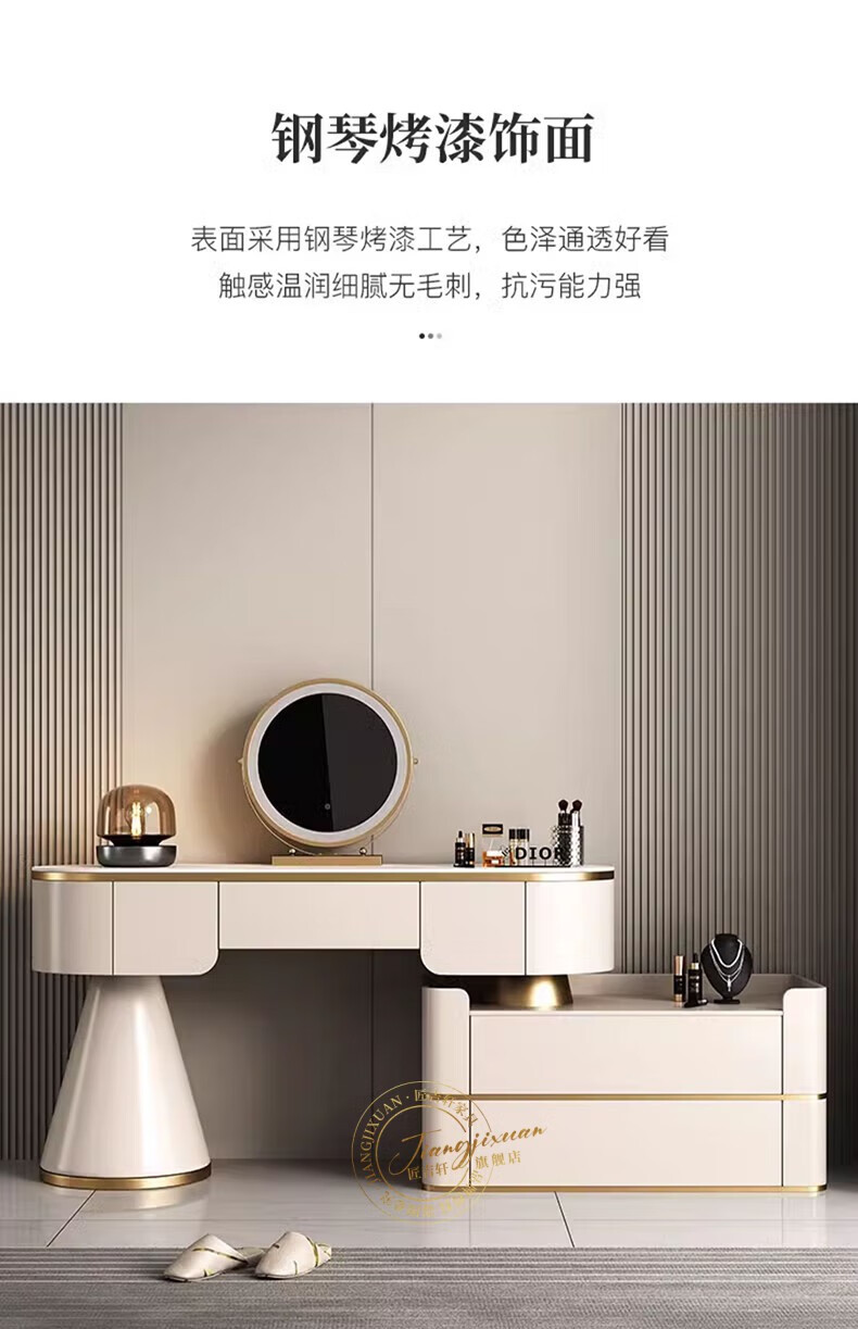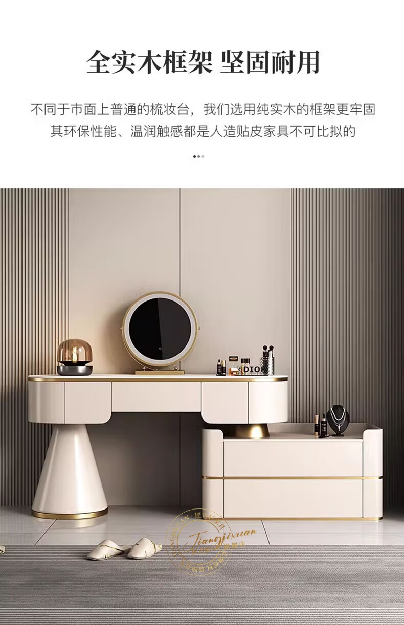JIANGJIXUAN solid wood master bedroom dressing table storage cabinet integrated modern simple internet celebrity designer slate light luxury Italian style dressing table 1.2 meters dressing table + 80 cupboard (comes with dressing stool)