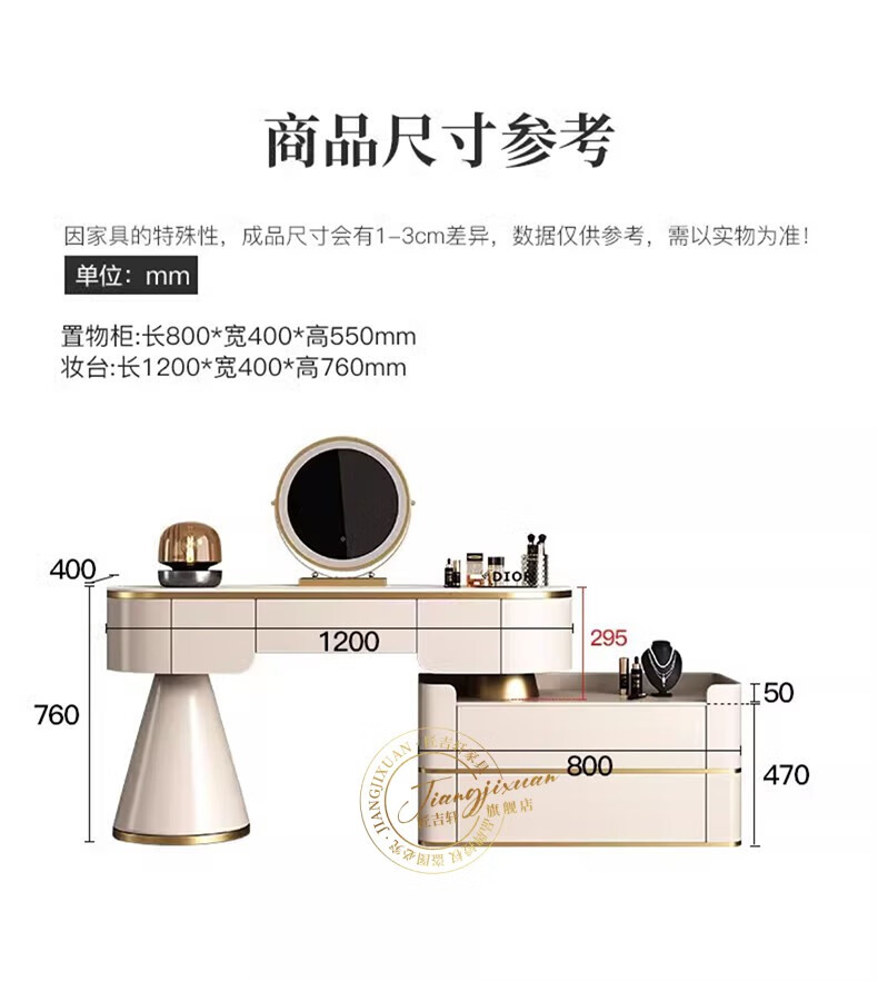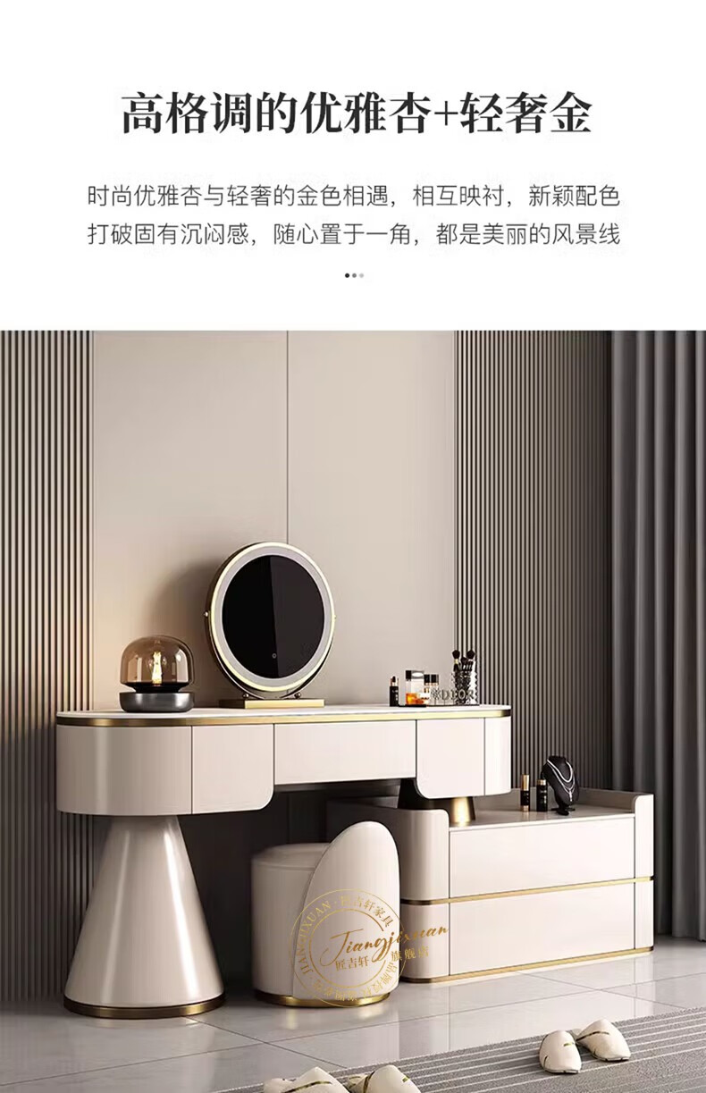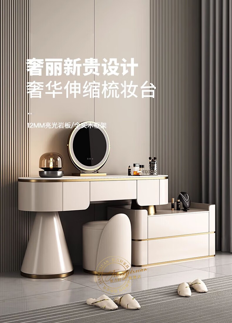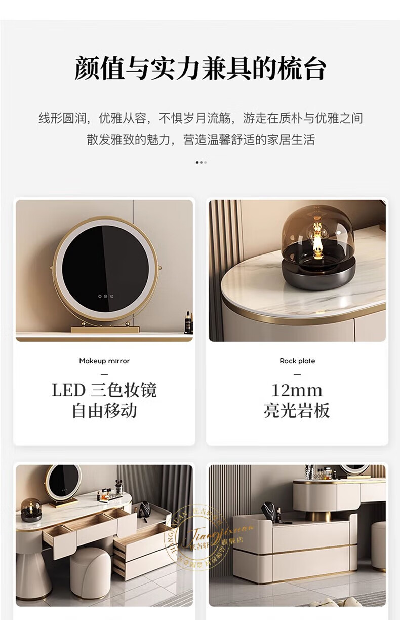 JIANGJIXUAN solid wood master bedroom dressing table storage cabinet integrated modern simple internet celebrity designer slate light luxury Italian style dressing table 1.2 meters dressing table + 80 cupboard (comes with dressing stool)