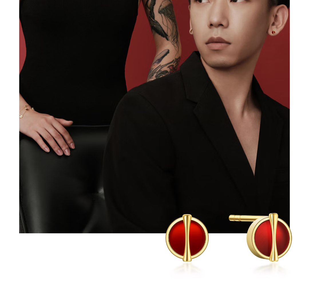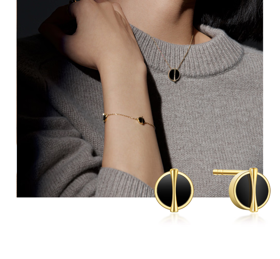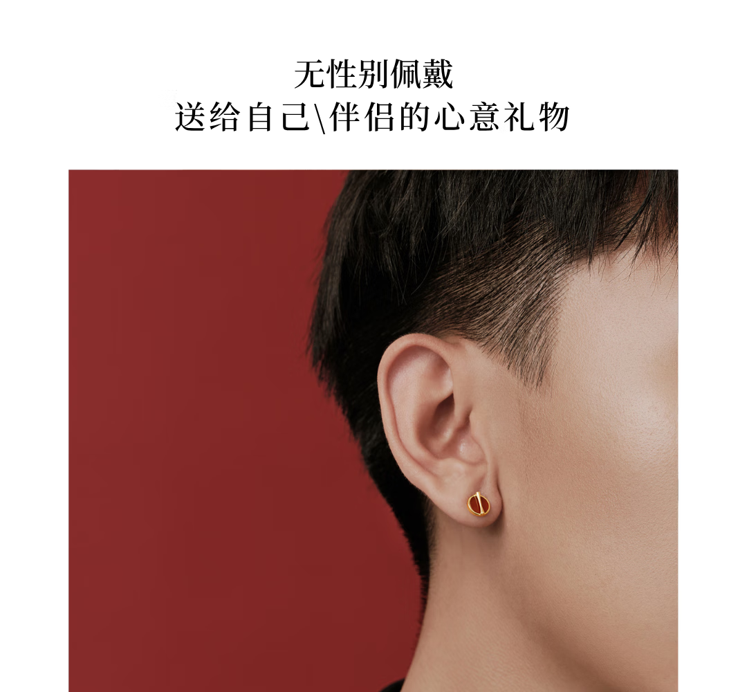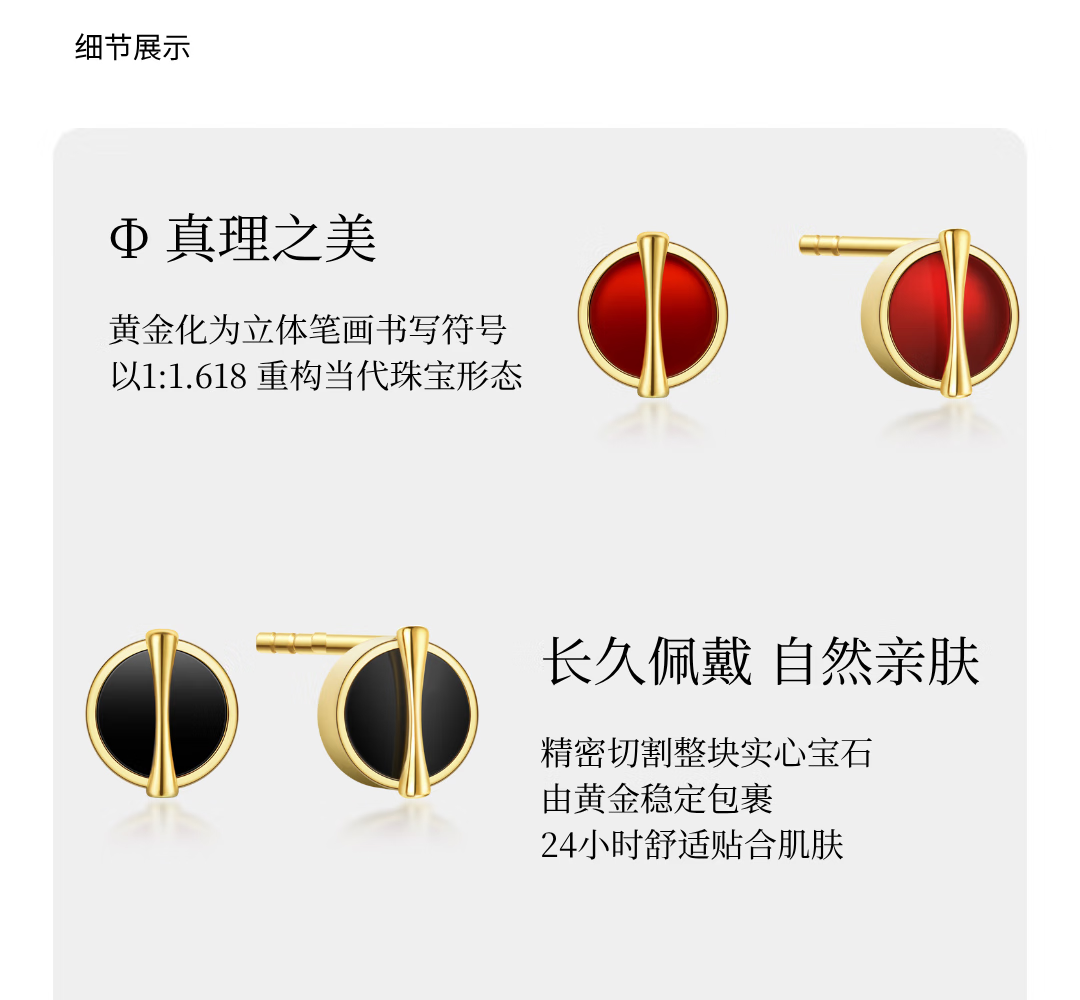 YIN series gold ratio earrings, round black onyx carnelian earrings, mini exquisite ear piercing design, a pair of carnelian earrings (including 18K gold ear plugs)